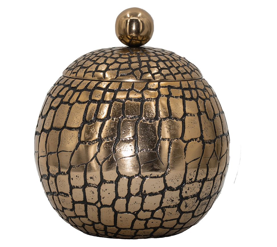 Keep your treasures safe inside this crocodile-textured pot that adds a bit of shimmer to your decor. Both stylish and functional, this decorative piece easily cheers up an empty table or mantel. From Barbara King.