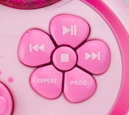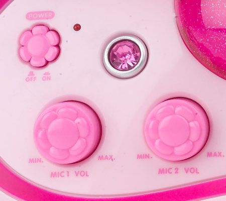 Music to your ears. Pop-stars-in-training can sing along to their favorite tunes with this fun Barbie Flower"oake" CD player. Kids simply insert a CD and follow along using one or both of the attached microphones; or, they can press the gemstone button to hear Barbie sing a song.