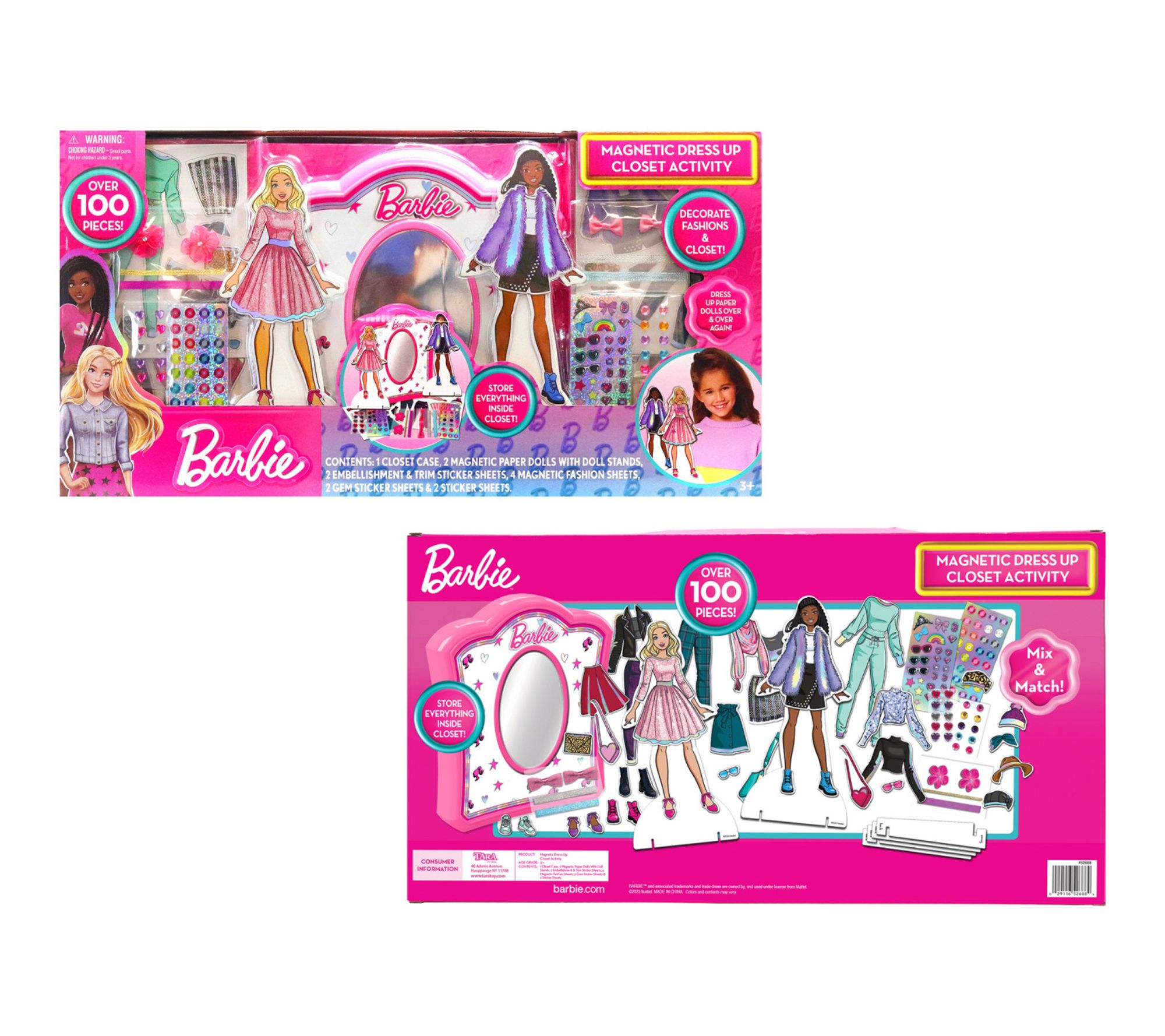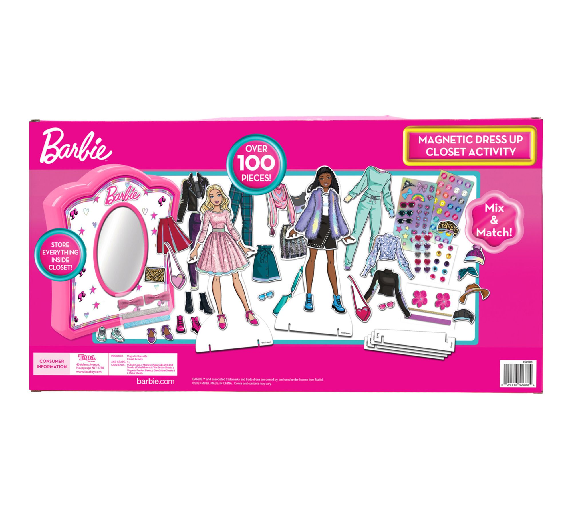 Transform playtime into a creative fashion adventure with this Barbie Magnetic Dress Up Closet Activity Playset. Kids can mix, match, and layer magnetic outfits on two included Barbie dolls, exploring new styles and stories with each outfit change. Everything packs away neatly in the closet case -- ideal for tidy storage or fun on the go. From Barbie.