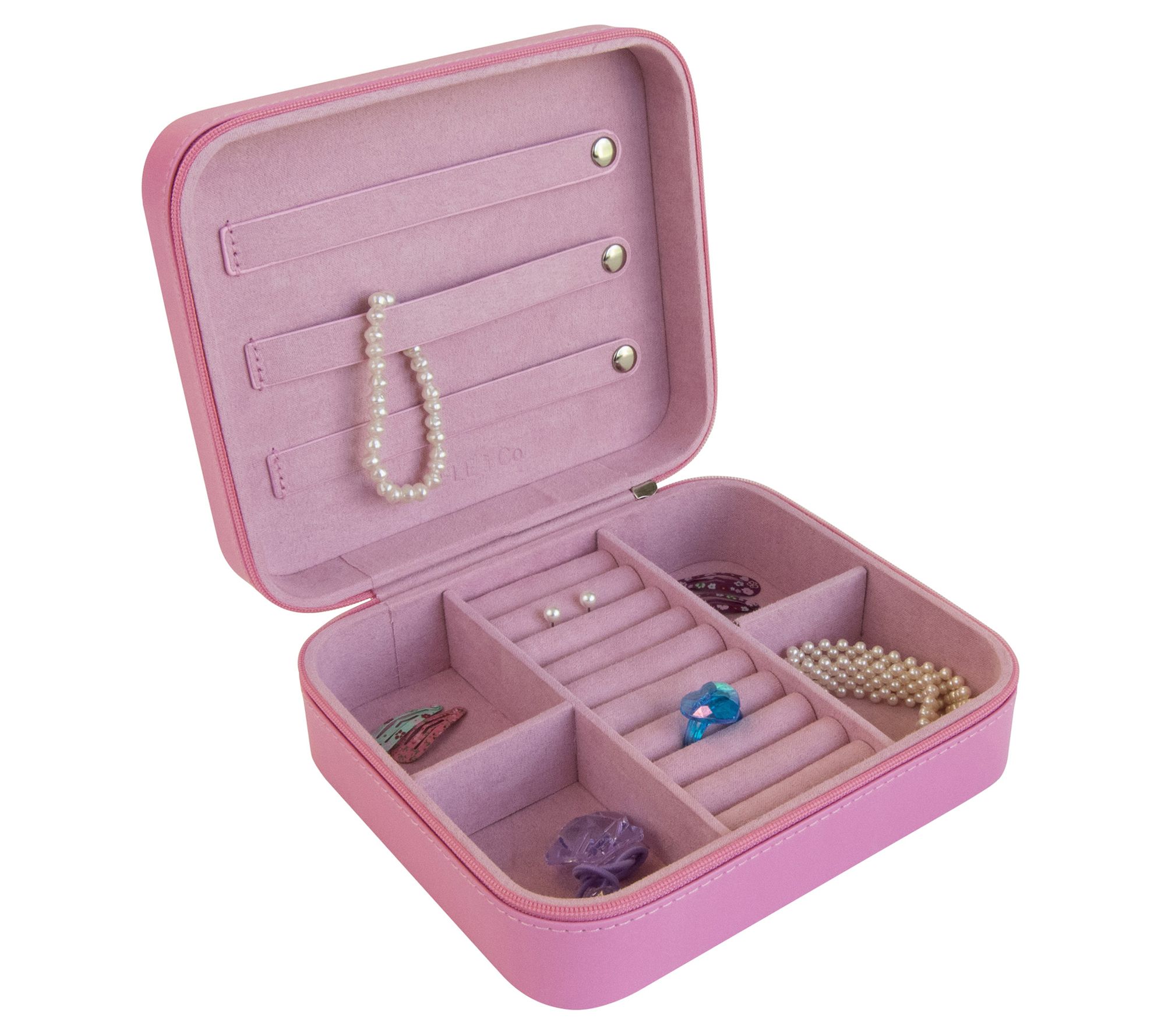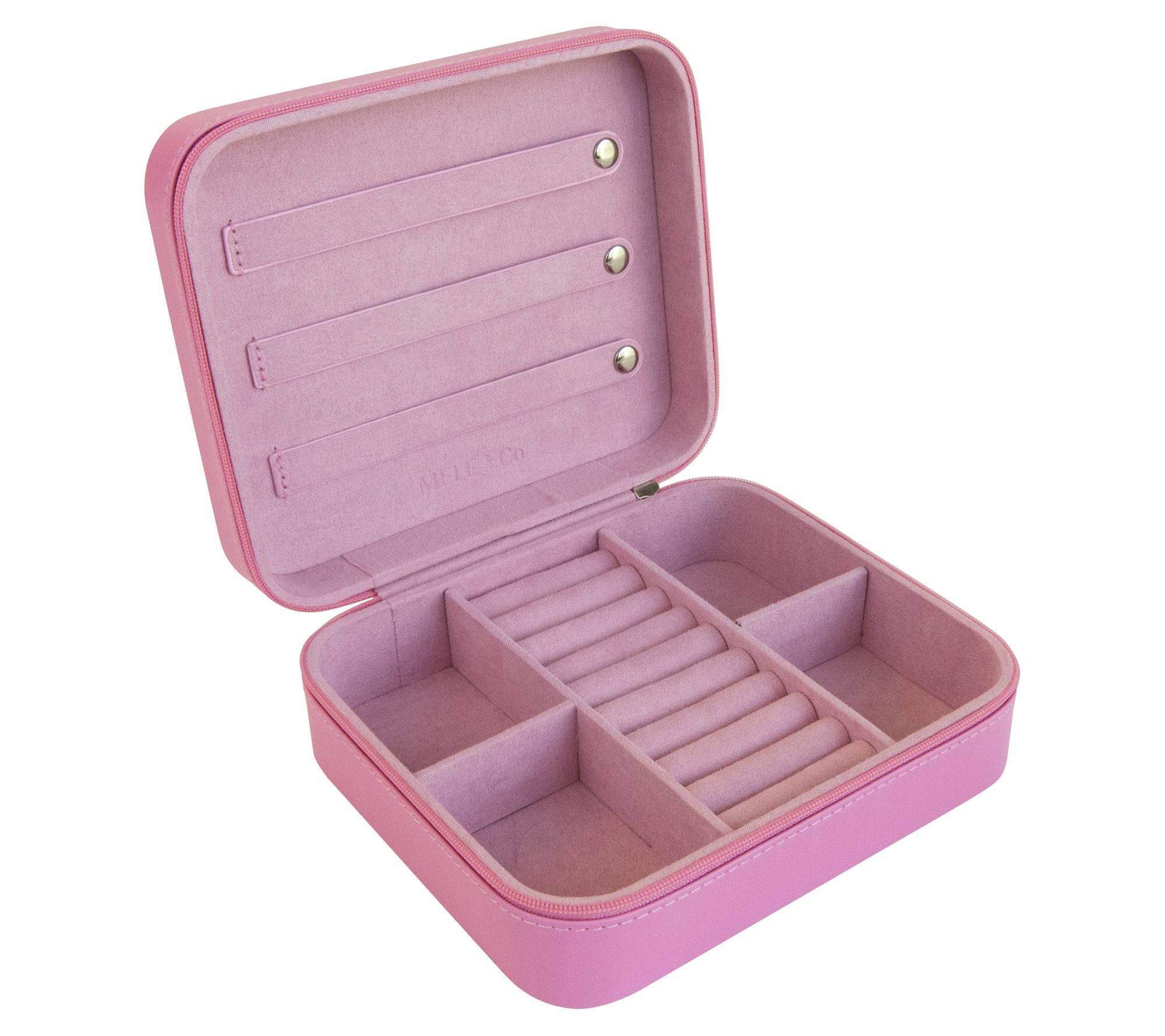 • Interior lid with three jewelry straps