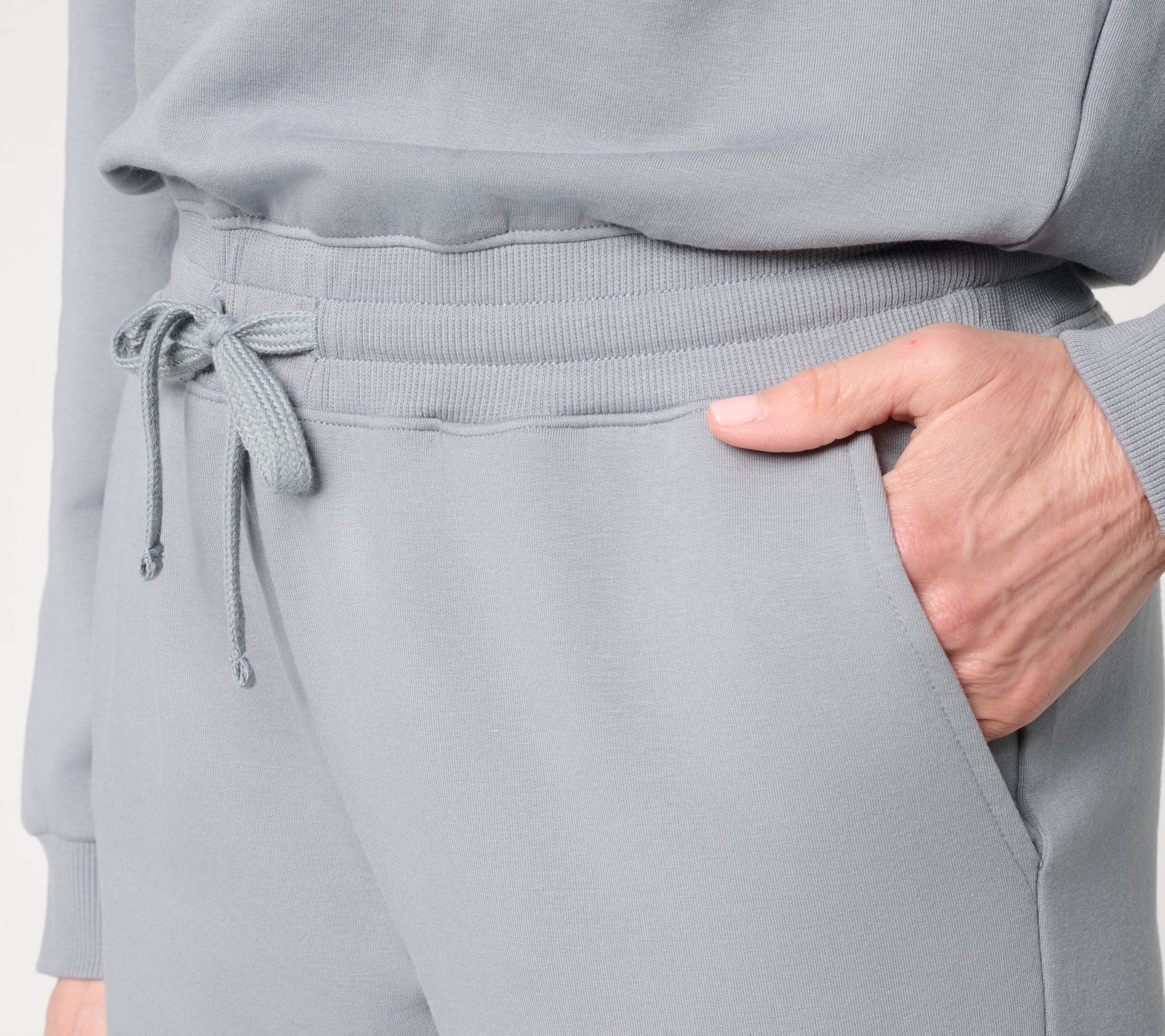• Features: crew neckline, long sleeves, keyhole back opening with button closure, elastic waistband with drawstring