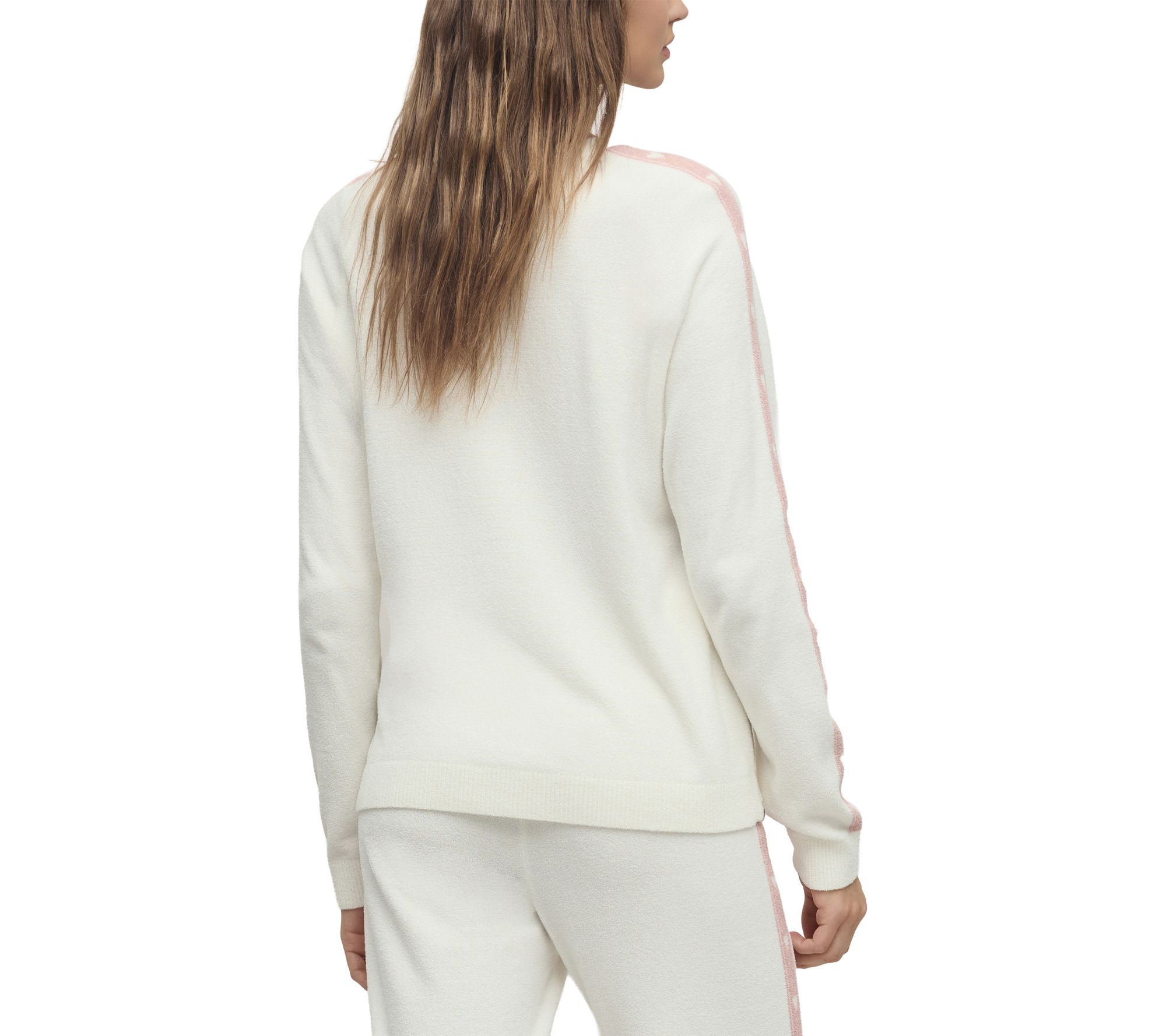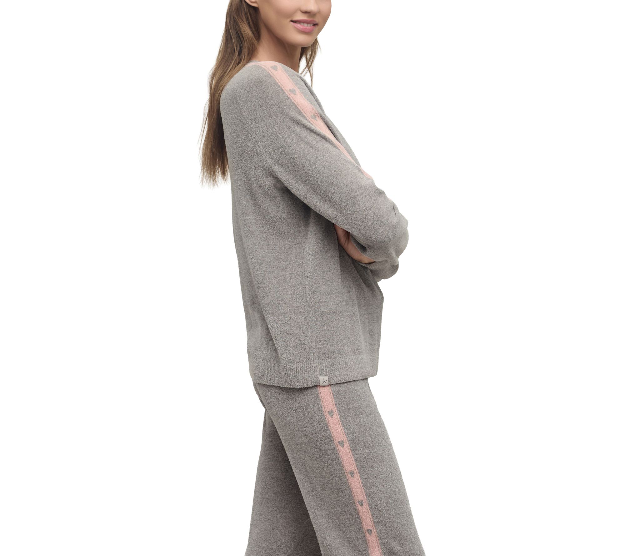 Curl up on a lazy weekend or add a playful twist to your everyday style with this heart stripe pullover sweater. Super-soft fabric brings cozy comfort to every moment, while charming stripes and a sweet heart motif infuse cheerful personality into your wardrobe. From Barefoot Dreams.