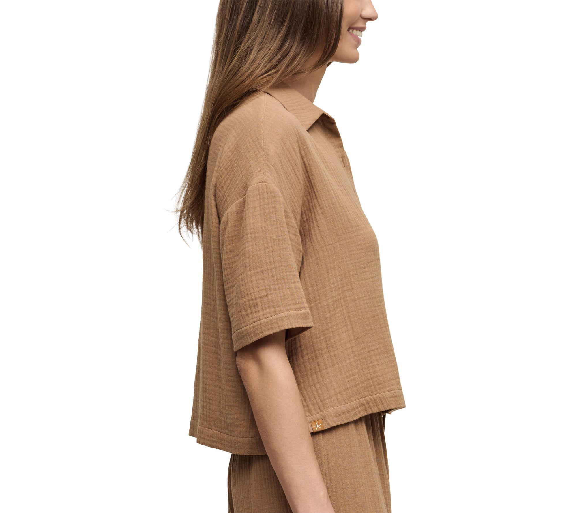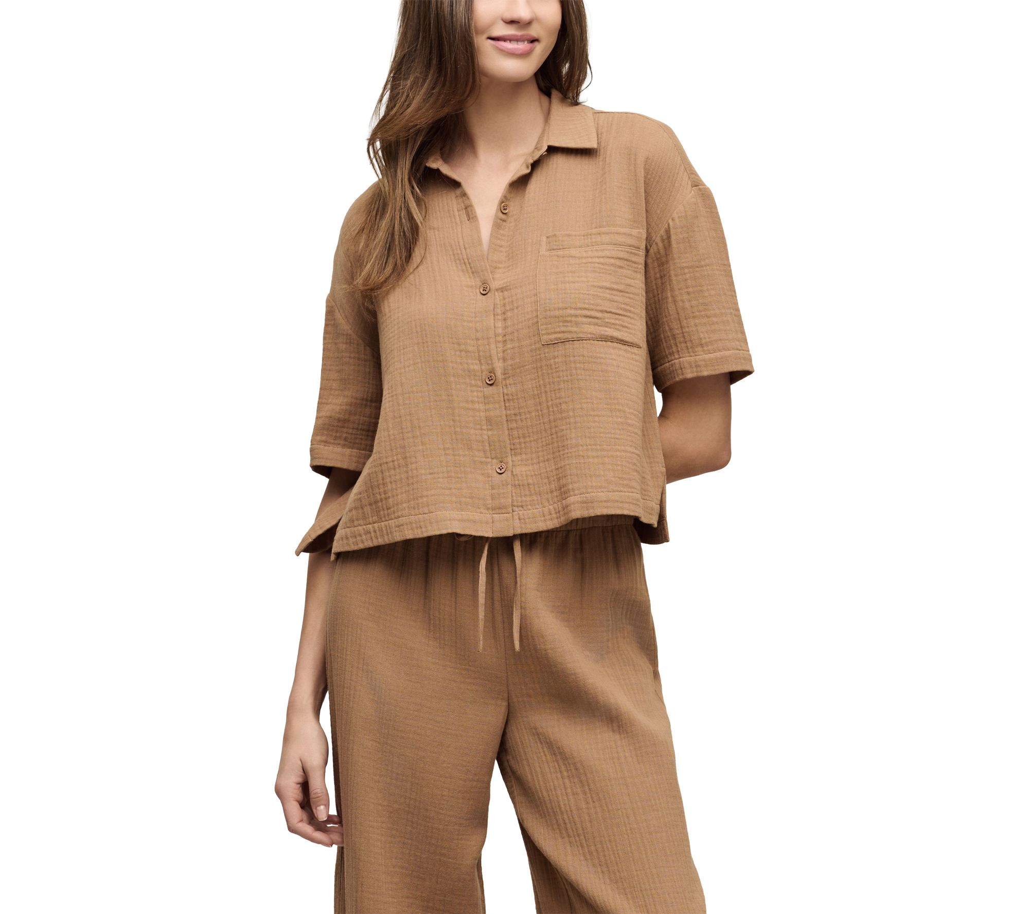 Lightweight and airy, this cotton gauze shirt pairs perfectly with anything from shorts to high-rise pants. From Barefoot Dreams.