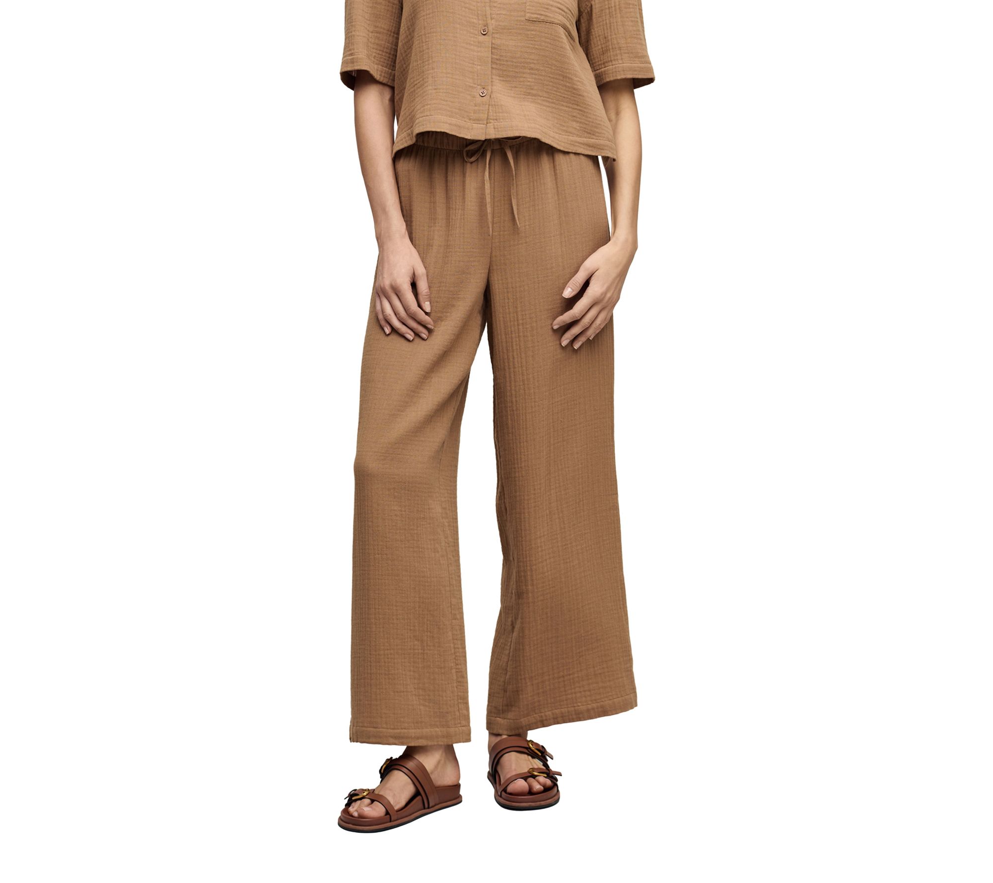 Whether you're heading out for a leisurely stroll along the boardwalk or running weekend errands, these wide-leg pants bring a breezy yet polished look to your day. Lightweight cotton gauze offers breathable comfort with an easy, relaxed feel -- pair them with your favorite sandal or sneaker for all-day style and versatility. From Barefoot Dreams.