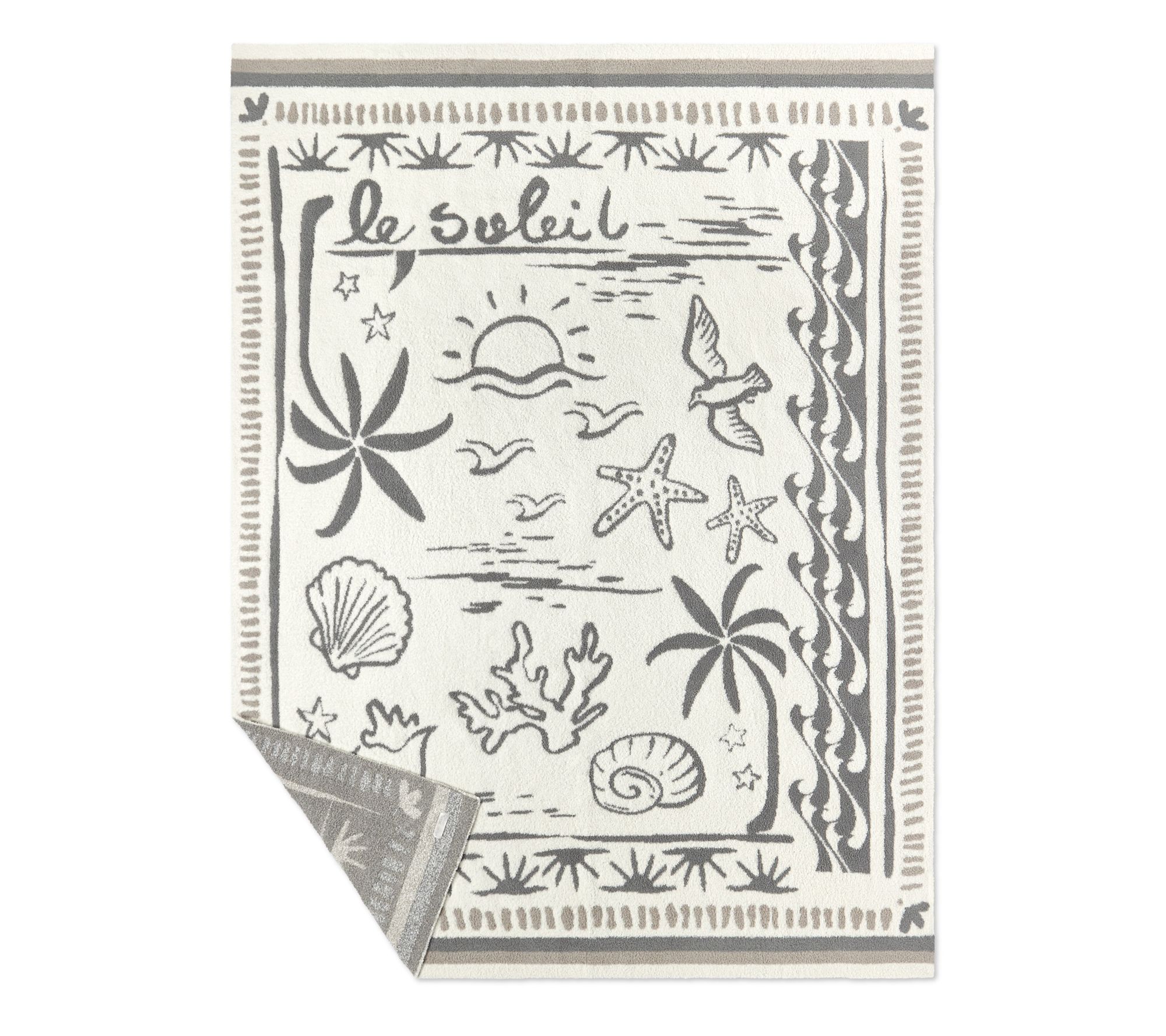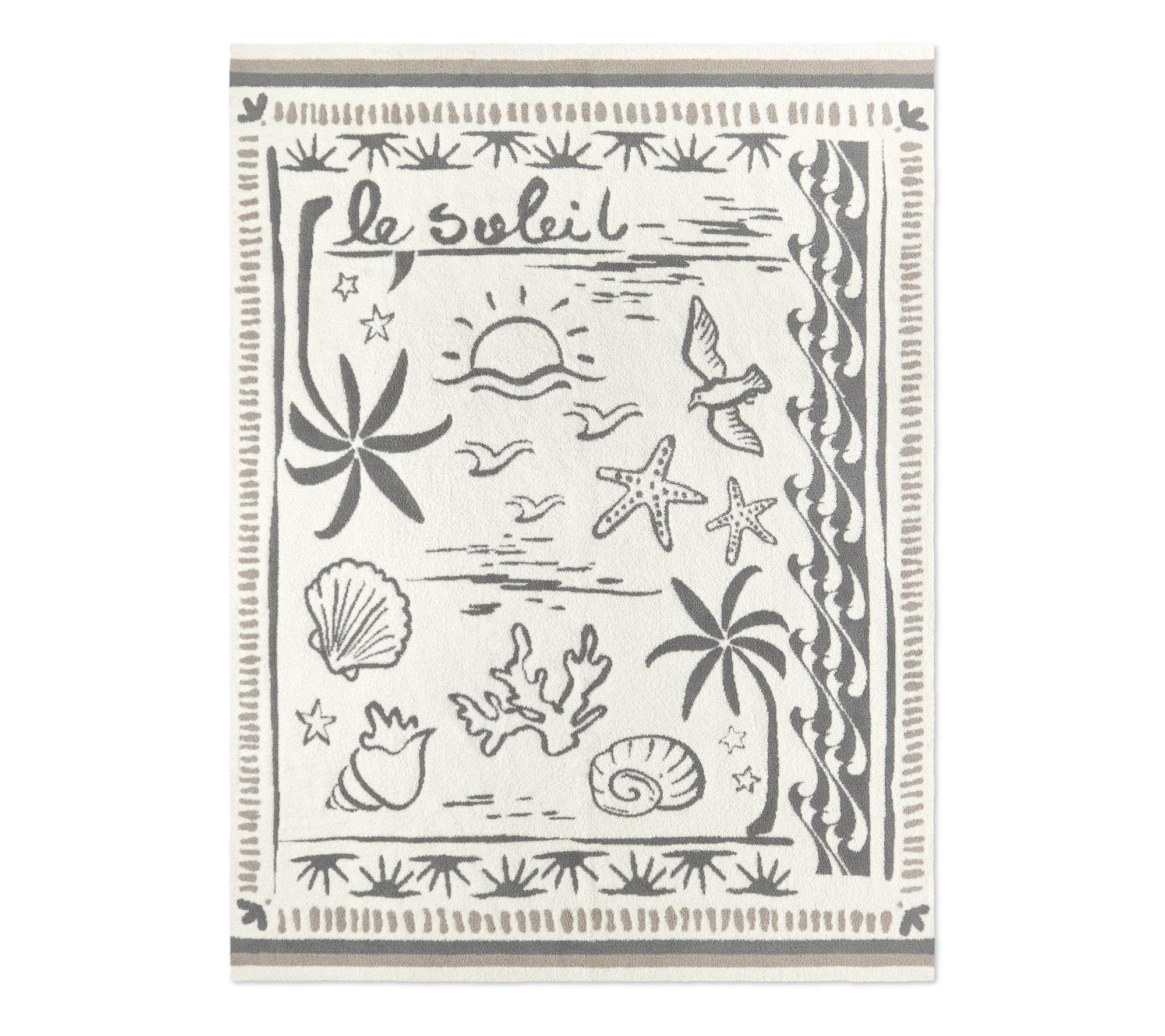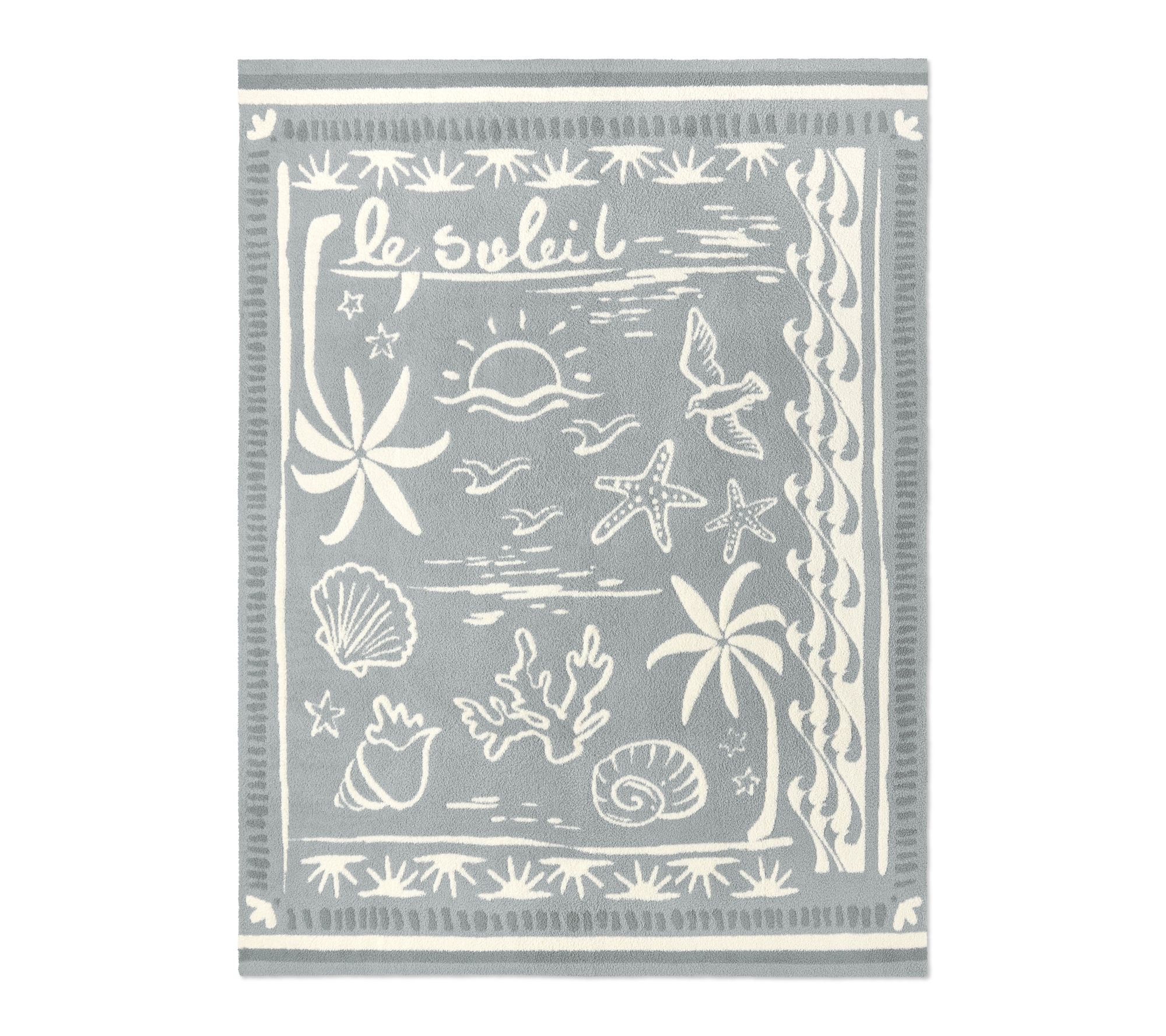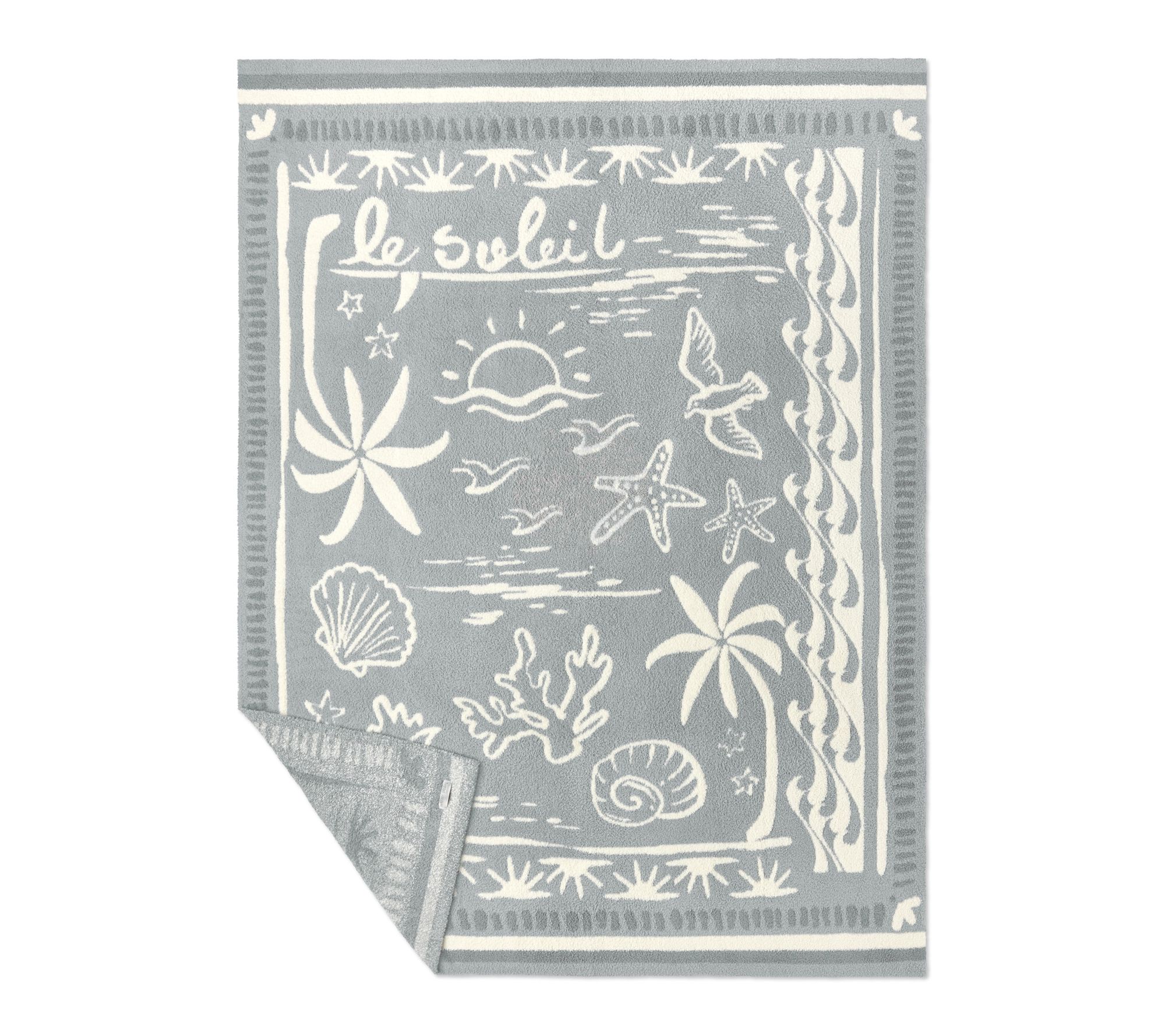 Bring a touch of laid-back coastal charm to your home with this plush throw blanket, featuring beach-inspired artwork and bold contrast stripes at the hem. The signature CozyChic yarn surrounds you in next-level softness, making it an inviting companion for relaxing on the sofa, adding a warm accent to your bed, or making a cozy retreat on cool evenings. From Barefoot Dreams.