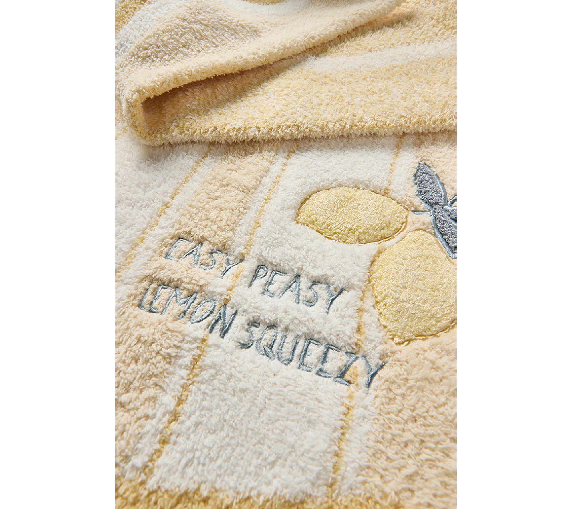 • Textured loop-embroidered lemon motif adds a fun, tactile element