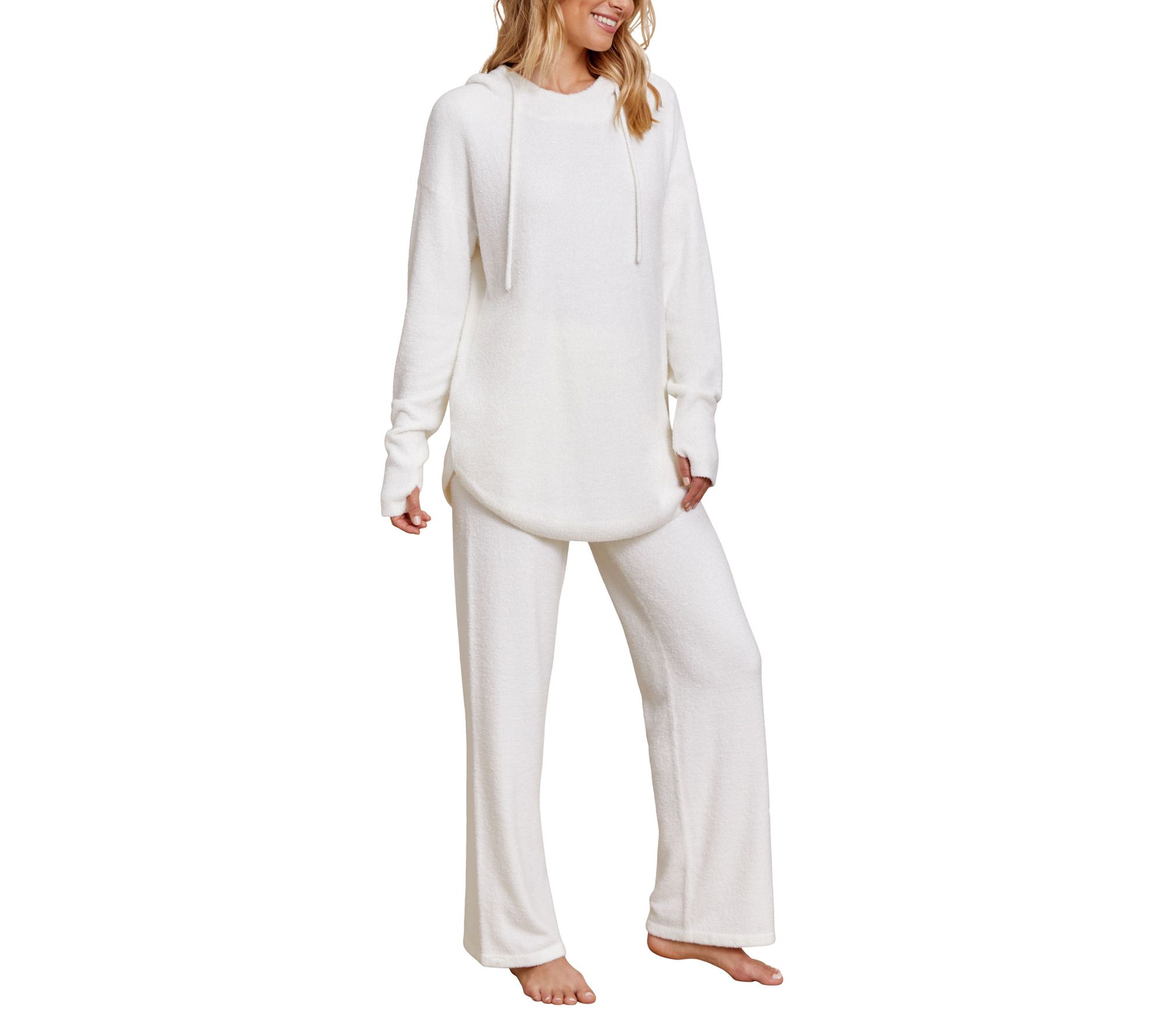 Stay cozy and stylish wearing this chic pullover featuring a warm hood and sleek shirttail hemline. From Barefoot Dreams.