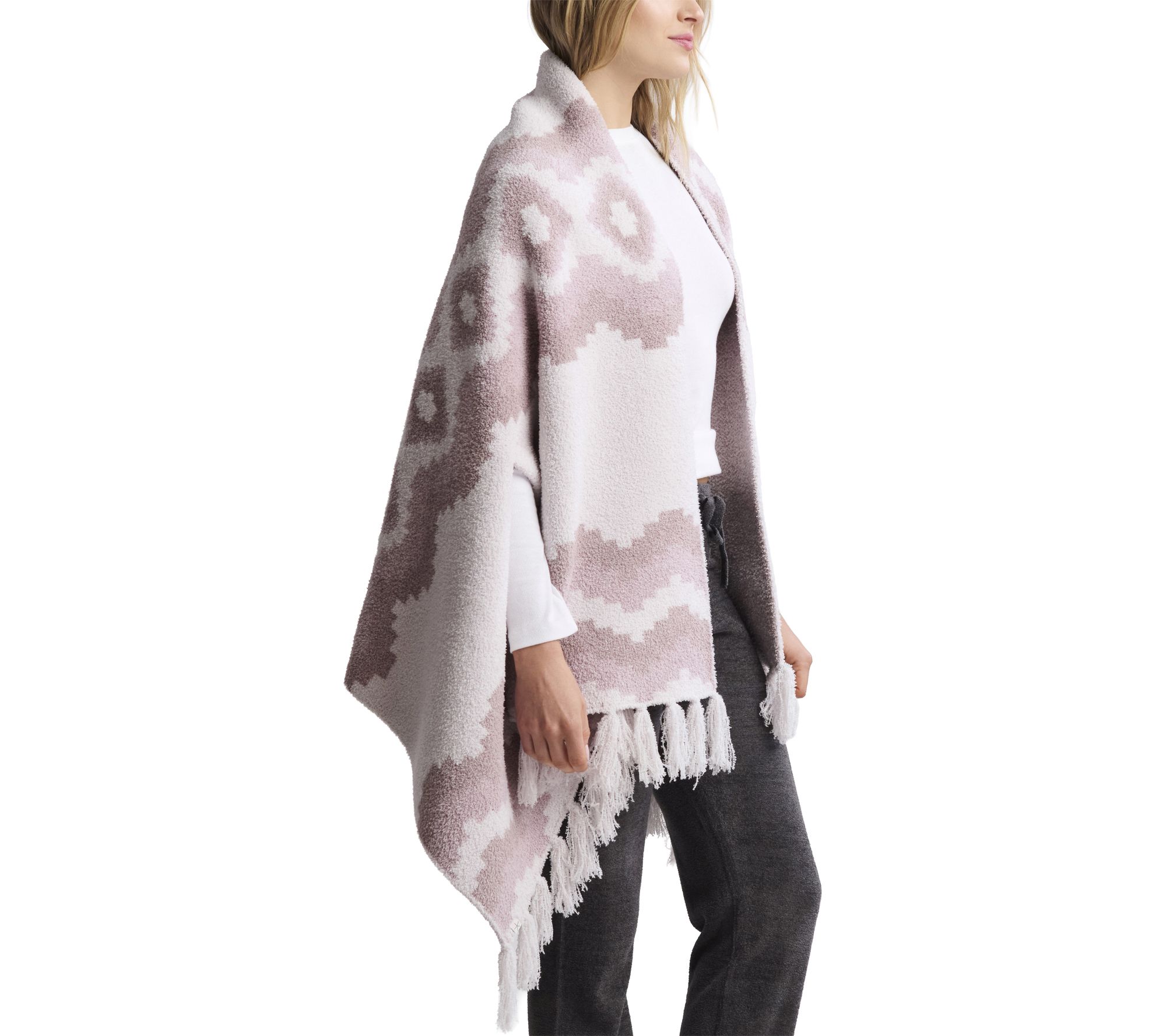 Whether you're heading out for a brisk evening stroll or unwinding with a good book at home, this CozyChic mosaic wrap adds a layer of warmth and effortless sophistication to your look. The eye-catching mosaic pattern and luxuriously soft fabrication make it a versatile accessory you'll reach for again and again. From Barefoot Dreams.