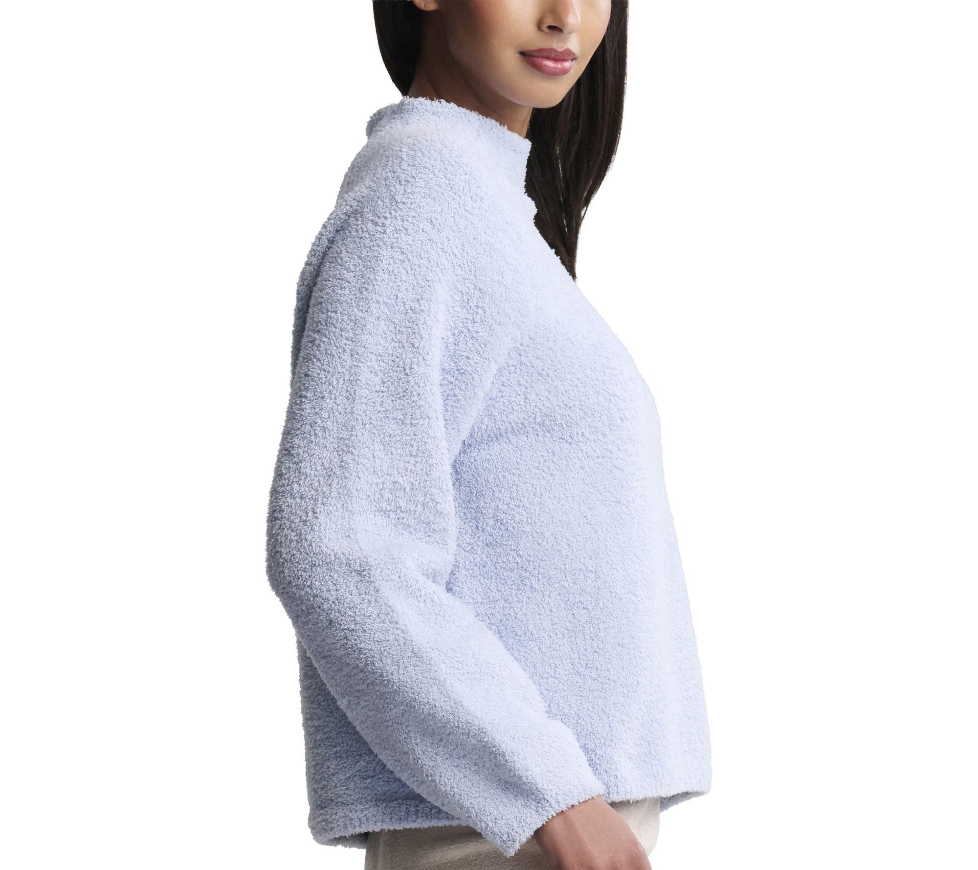Layer up for a movie night at home or slip on this sweatshirt for a coffee run—its relaxed silhouette and mock-neck design add effortless comfort and style to your routine. Soft knit fabric and ribbed finishes offer a cozy feel, while long raglan sleeves make it easy to move through chilly days. From Barefoot Dreams.
