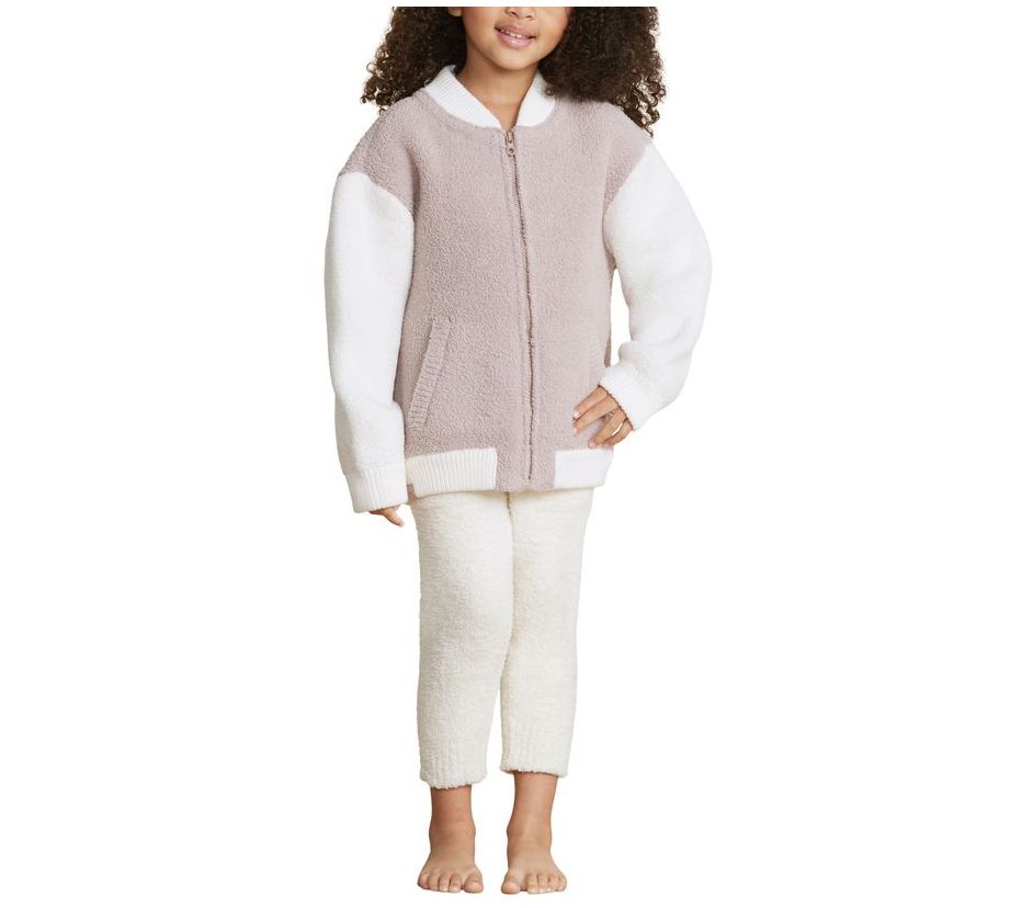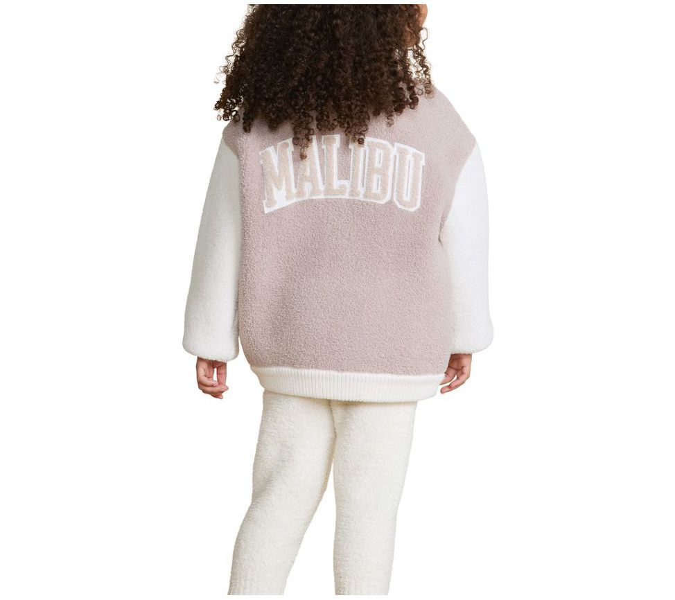 Wrap your little one in this varsity-style jacket, a cozy layer perfect for cooler spring and summer days. This relaxed-fit jacket combines comfort with playful style, featuring a color-blocked design, welt pockets, and a unique Malibu loop embroidered patch for a touch of fun. From Barefoot Dreams.