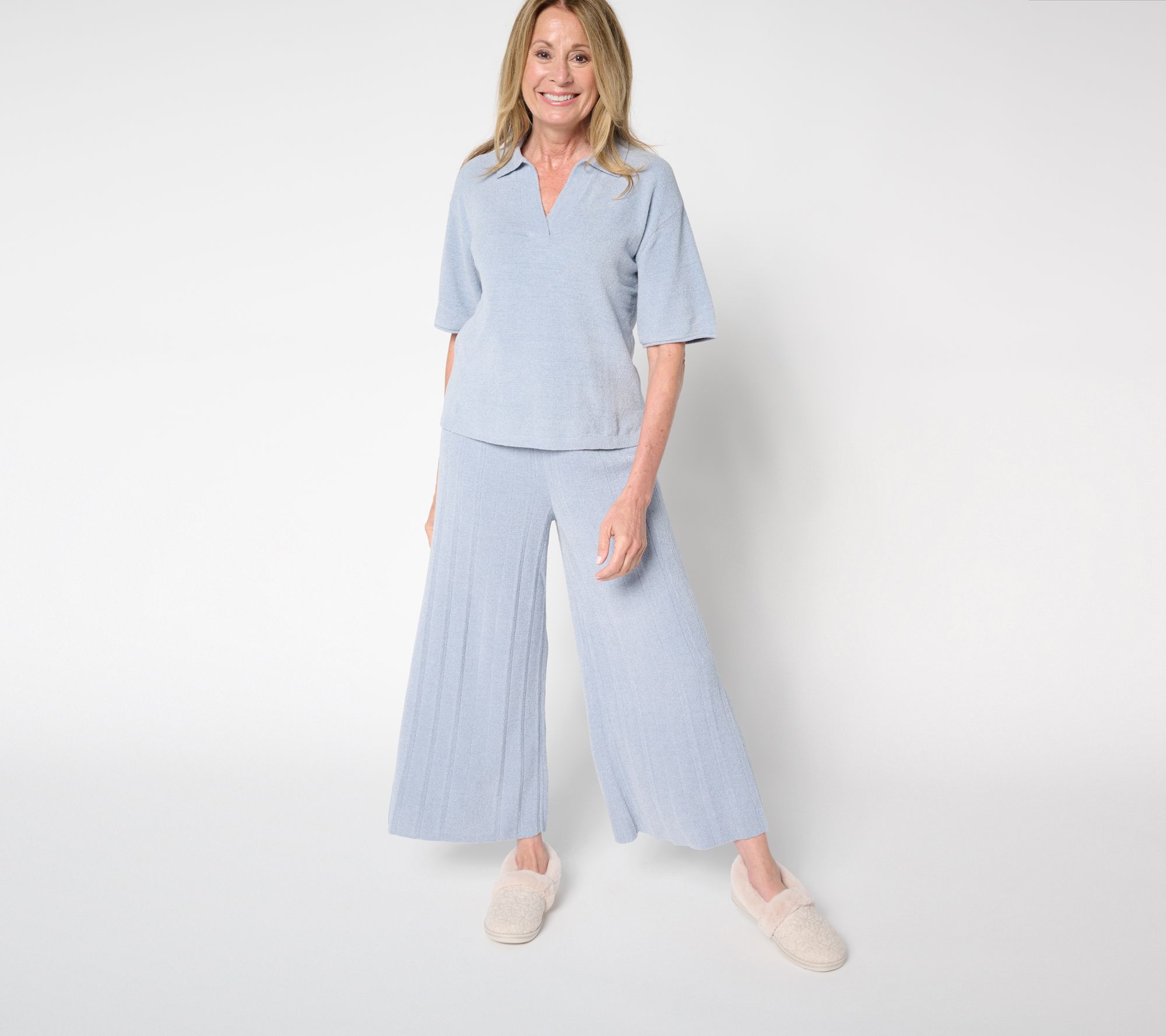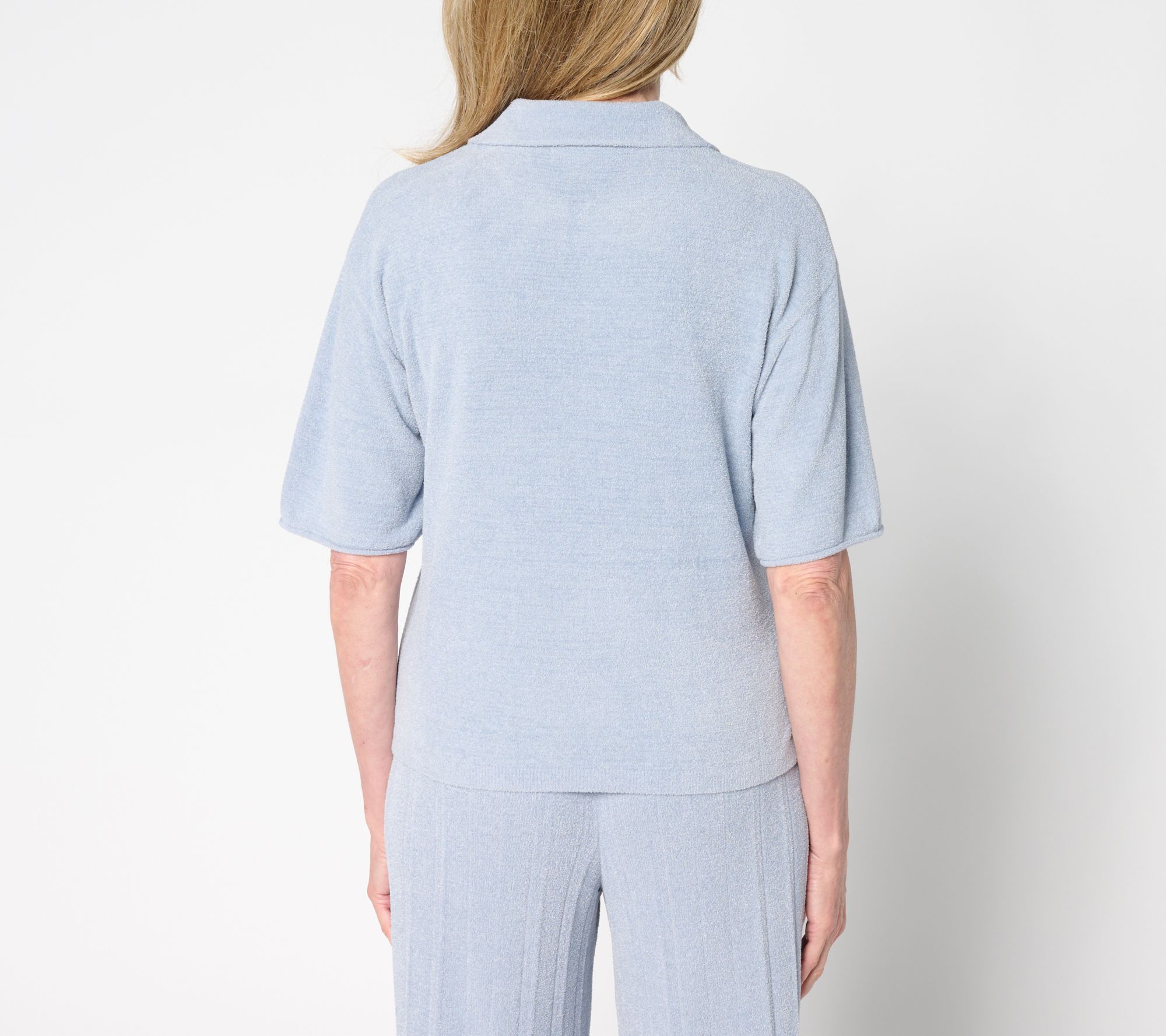 Weekend plans or casual Fridays call for a shirt that keeps up with your laid-back vibe. This pullover brings all the ease with its relaxed fit, mid-hip length, and side slits for extra comfort. The collared neckline with a fully ribbed placket offers a touch of polish, making it simple to pair with jeans, shorts, or even layered over a tank. From Barefoot Dreams.