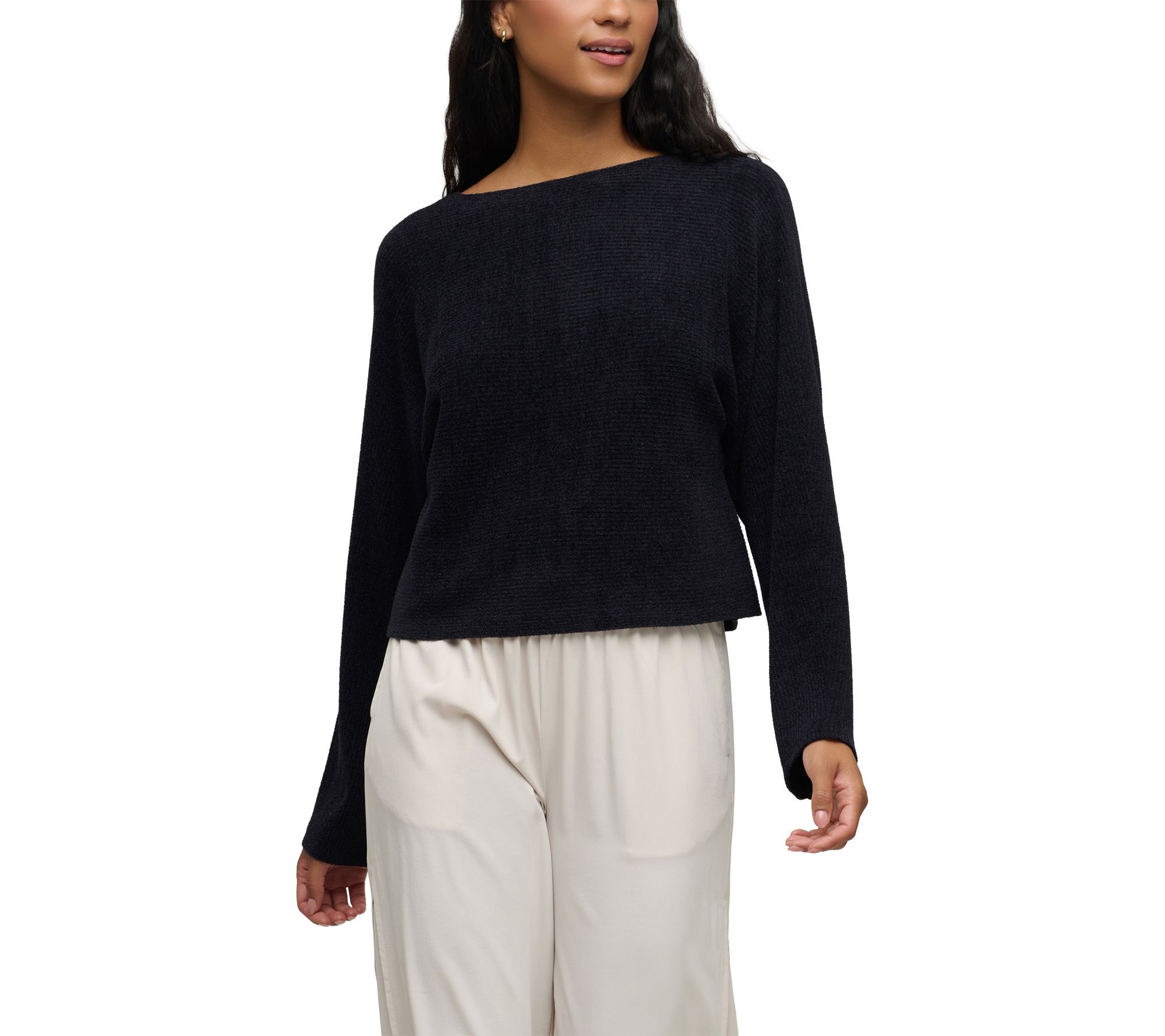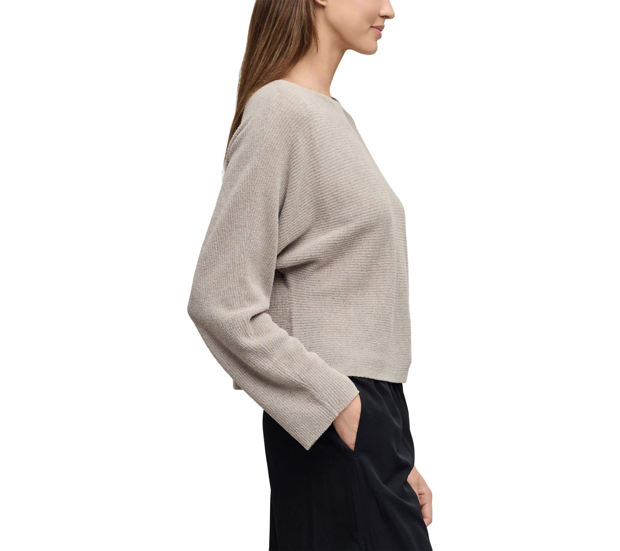 Whether you're lounging at home or heading out for coffee with friends, this dolman top brings effortless comfort and chic style to any moment. Crafted from ultra-soft CozyChic Ultra Lite fabric with a horizontal rib texture, it offers a relaxed silhouette that drapes beautifully and feels feather-light against the skin. From Barefoot Dreams.