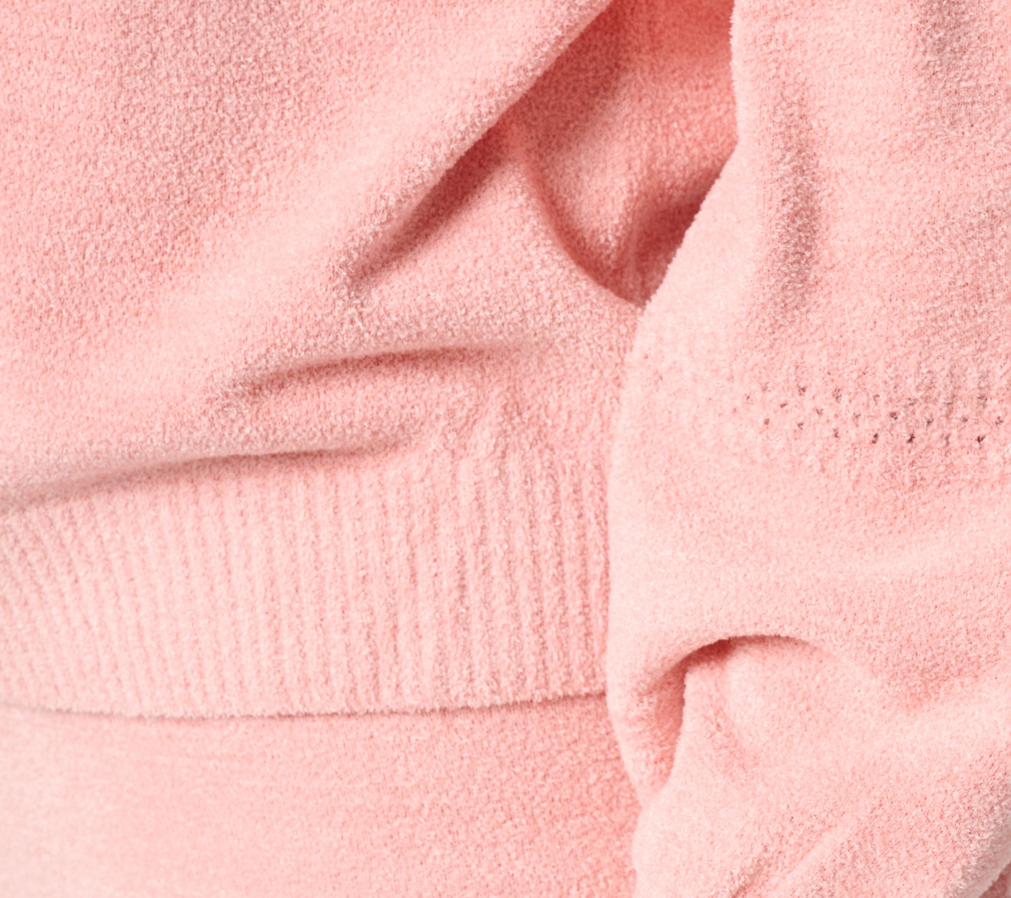 Features: long blouson sleeves with placed pointelle stitch, ribbed boat neckline, rib finish at sleeve cuffs and hem