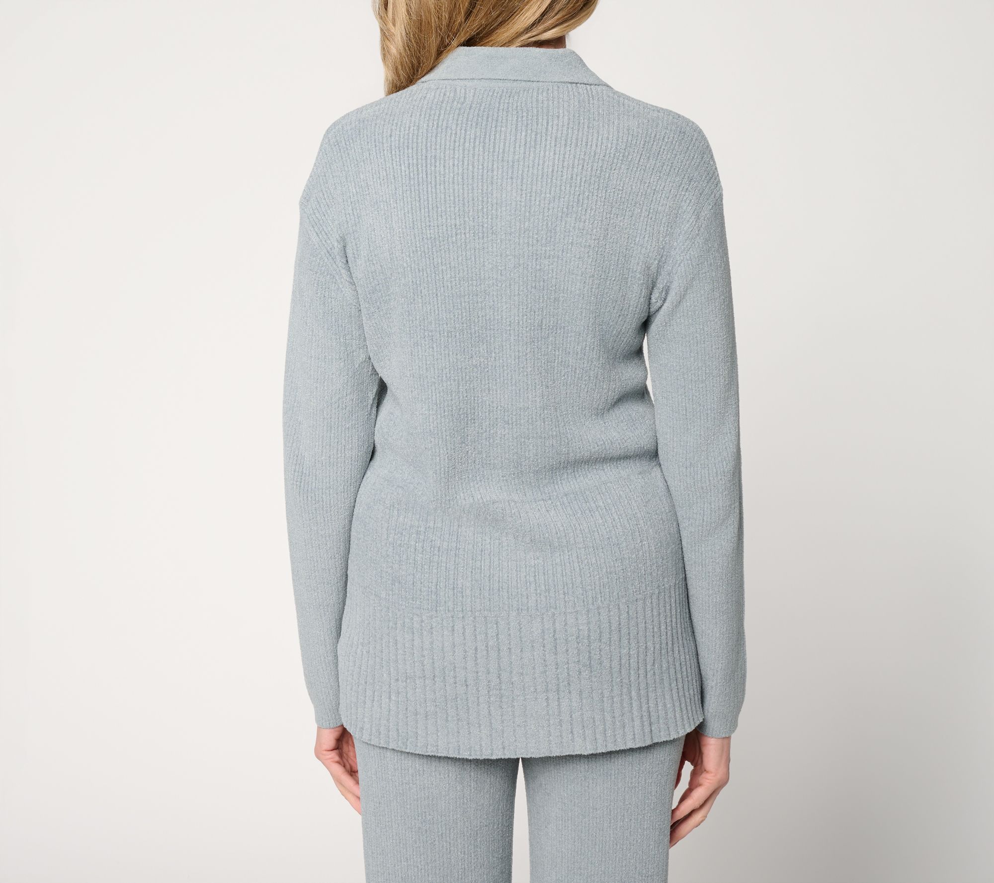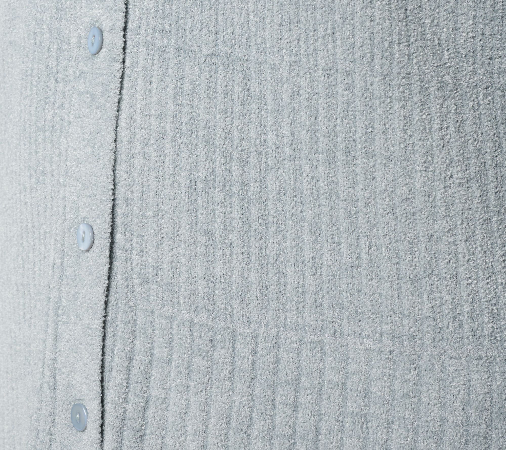 Features: collared neckline, button front, long sleeves, three different rib types