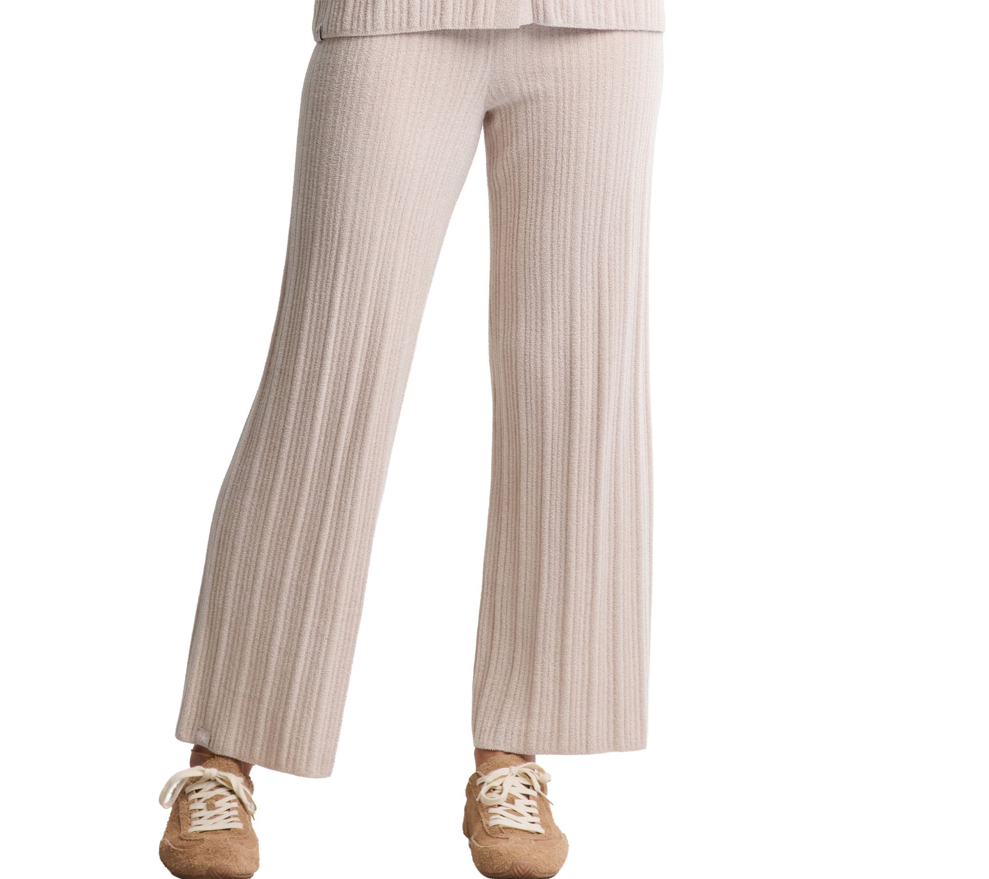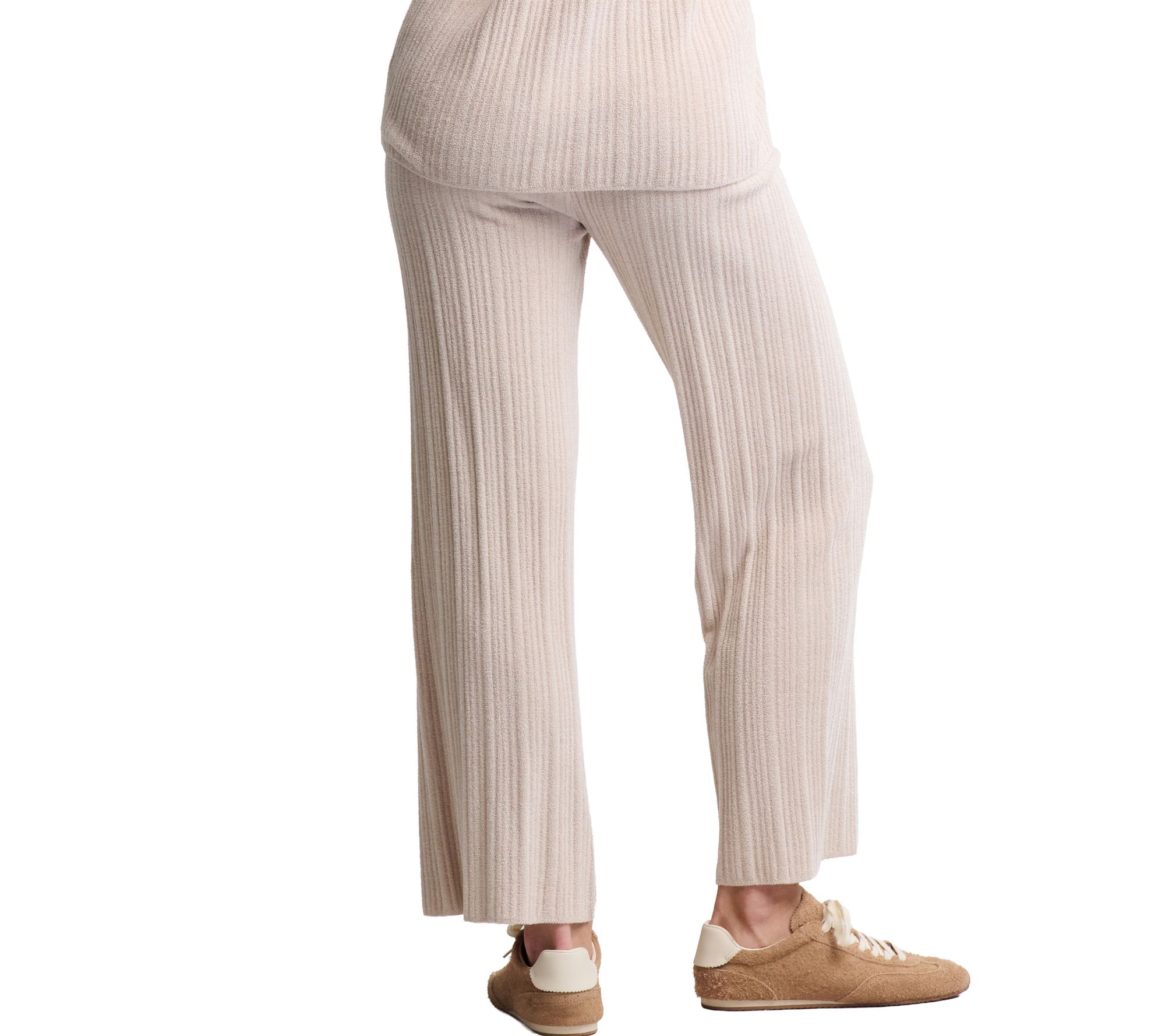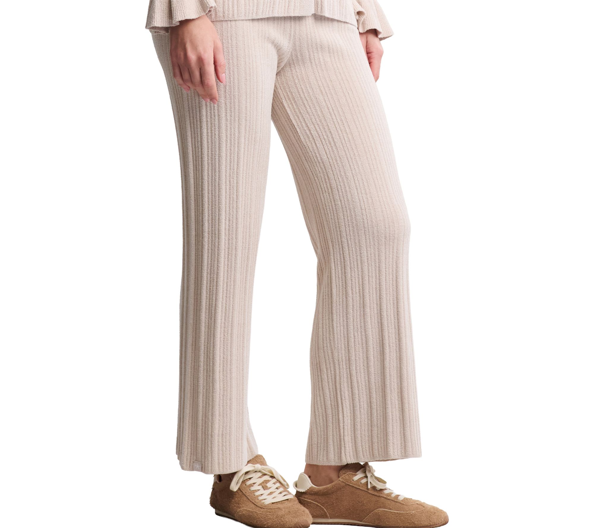 Whether you're unwinding at home or heading out for casual errands, these ribbed ankle pants deliver cozy comfort with a sleek, relaxed silhouette. The soft knit fabrication and gentle elastic waistband make them a go-to for effortless style and all-day wearability. From Barefoot Dreams.