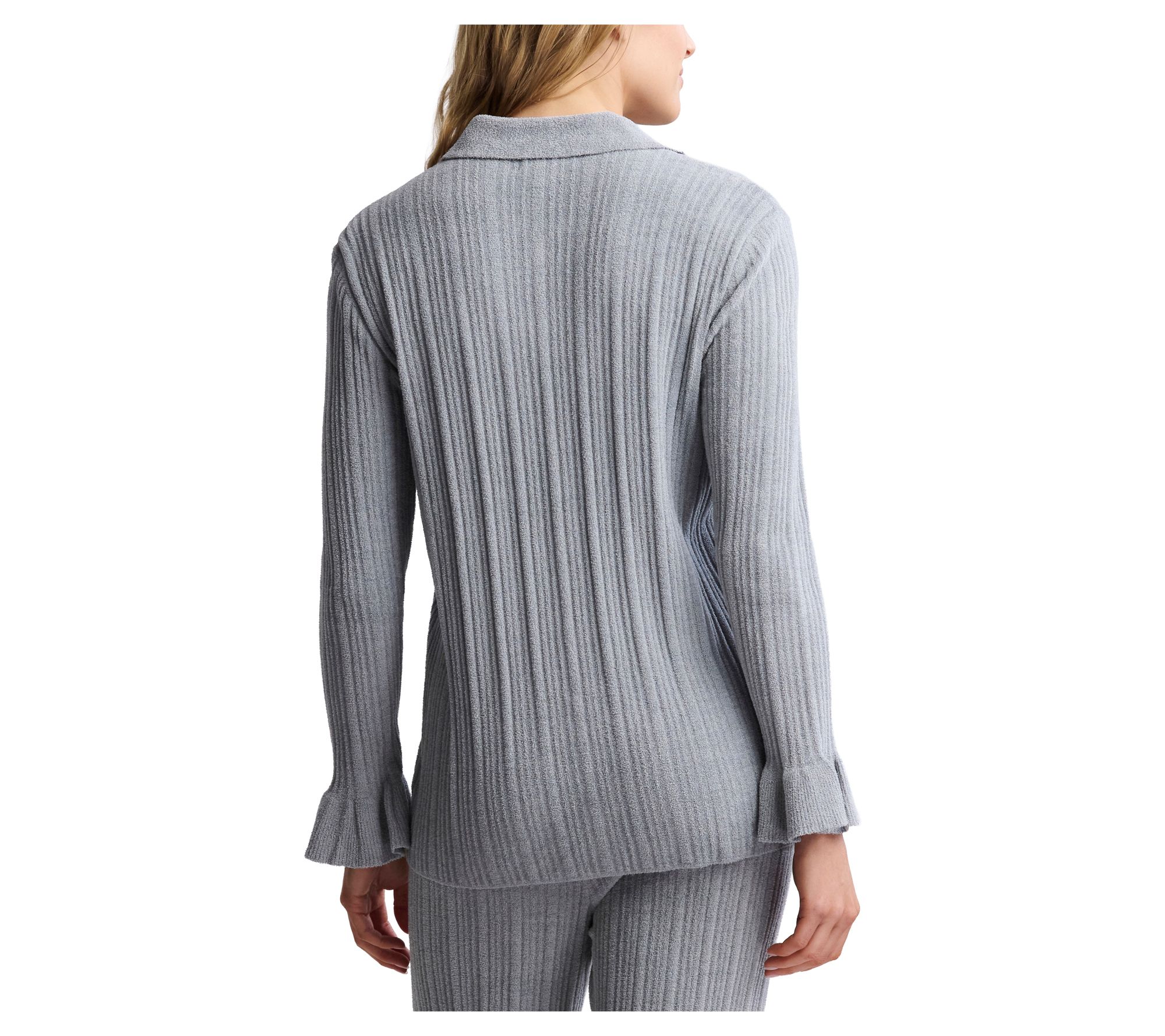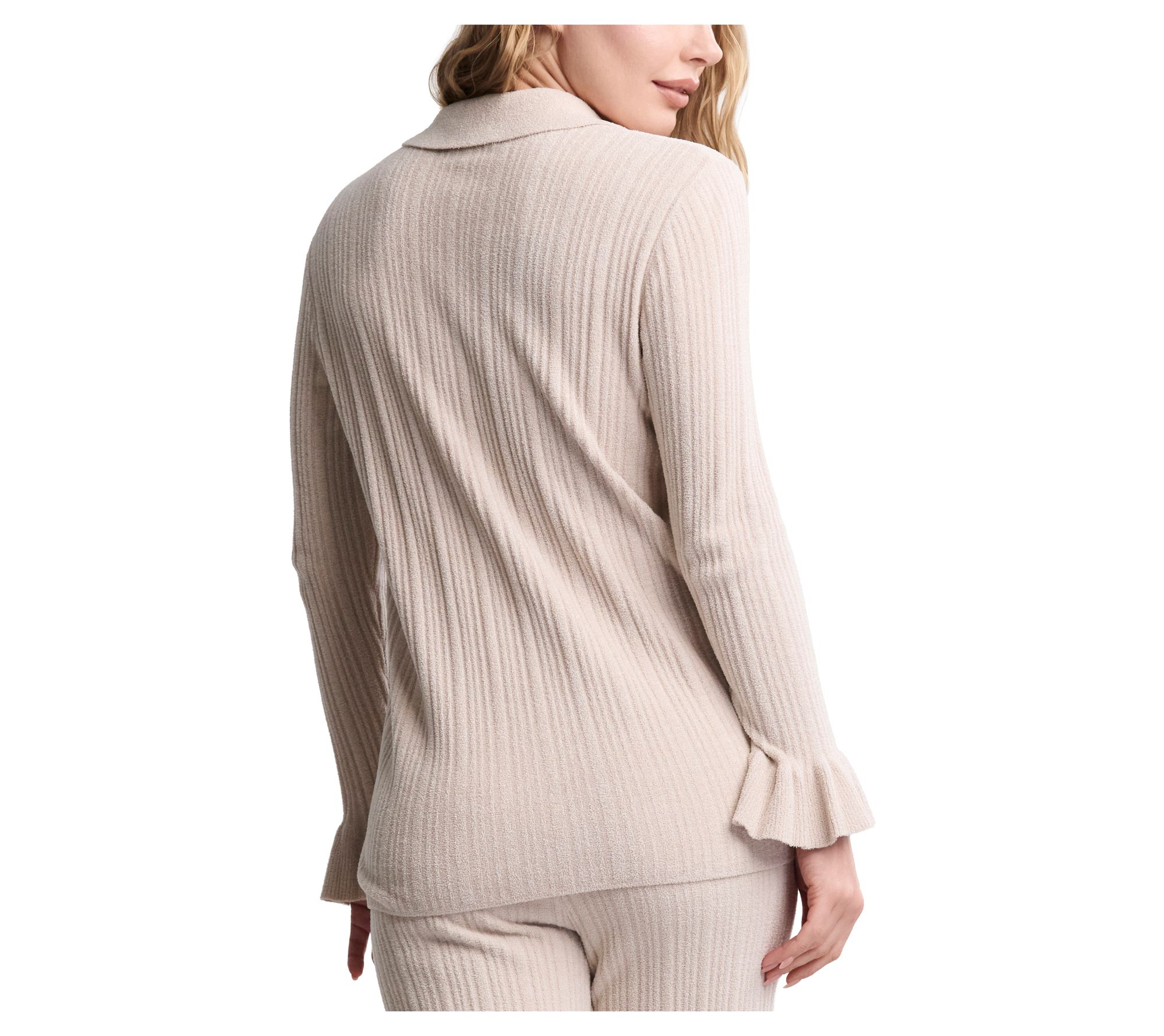 Make the most of casual mornings or relaxed evenings in this ribbed shirt, designed for layering over tanks or as a stand-alone statement. Soft fabric and ruffle cuffs bring feminine flair to your day, whether you're running errands or lounging at home. From Barefoot Dreams.