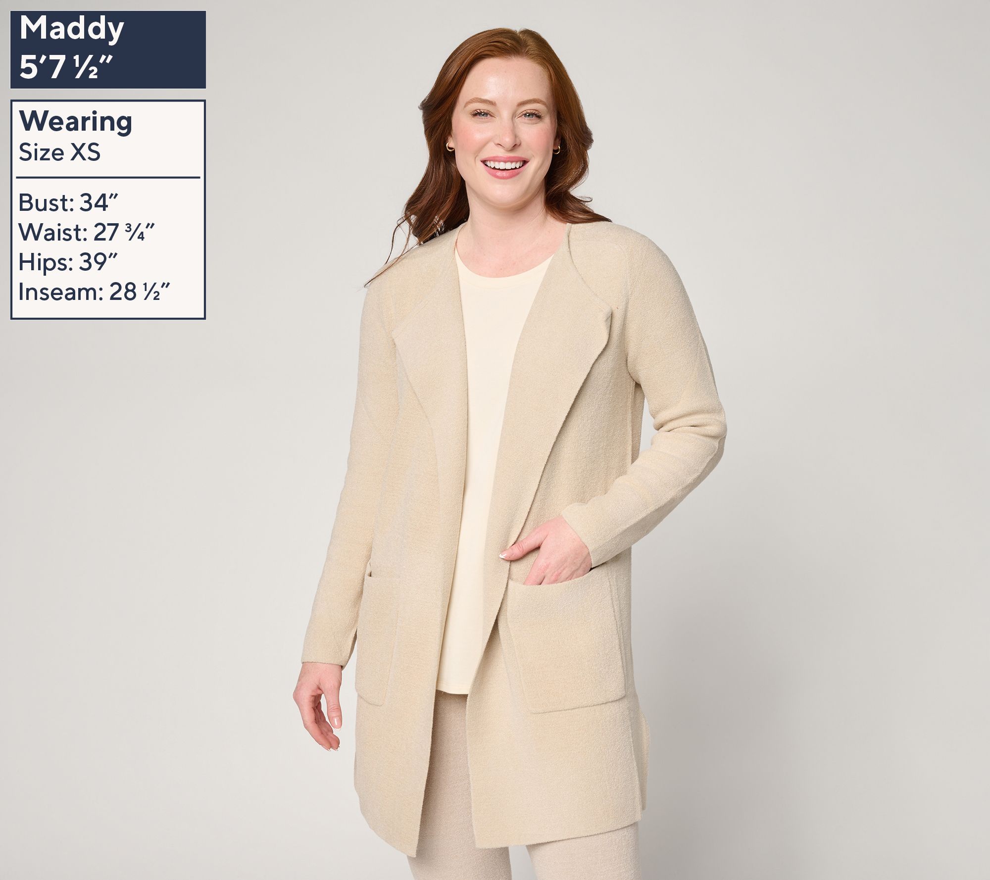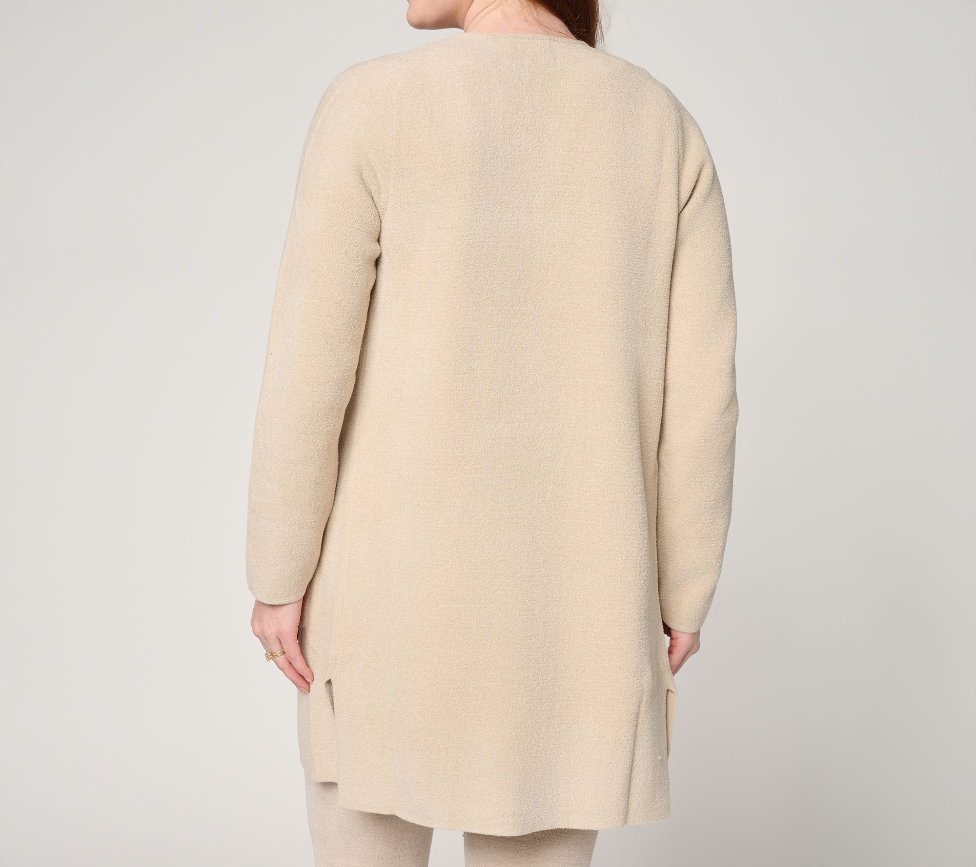 Lightweight comfort meets effortless style in this CozyChic Ultra Lite jacket, ideal for cozy mornings at home or layering over casual looks for a walk in the park. The cascading shawl collar and relaxed silhouette offer movement and ease, while patch pockets and side slits complete the laid-back vibe. From Barefoot Dreams.