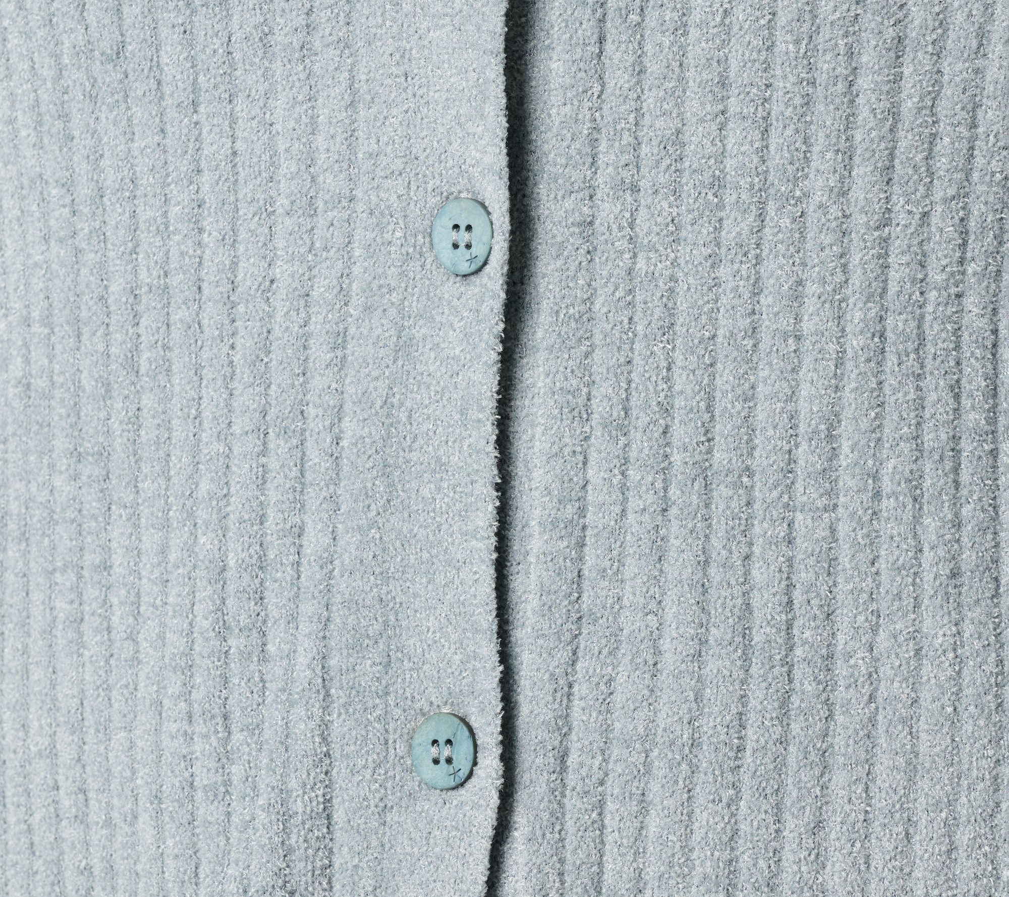 Features: sleeveless, V-neckline, button-down front, allover ribbing, side slits