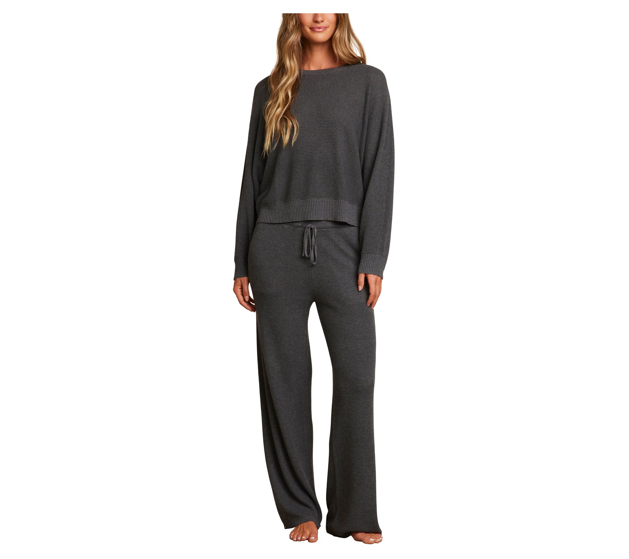 Is there anything better than a cozy pullover you can wear year-round? This Barefoot Dreams waffle knit pullover is a dream come true, with its relaxed fit and rib finish. Made from an ultra-soft cashmere blend, it feels luxurious against your skin, providing comfort whether youâre layering it up or wearing it alone. From Barefoot Dreams.