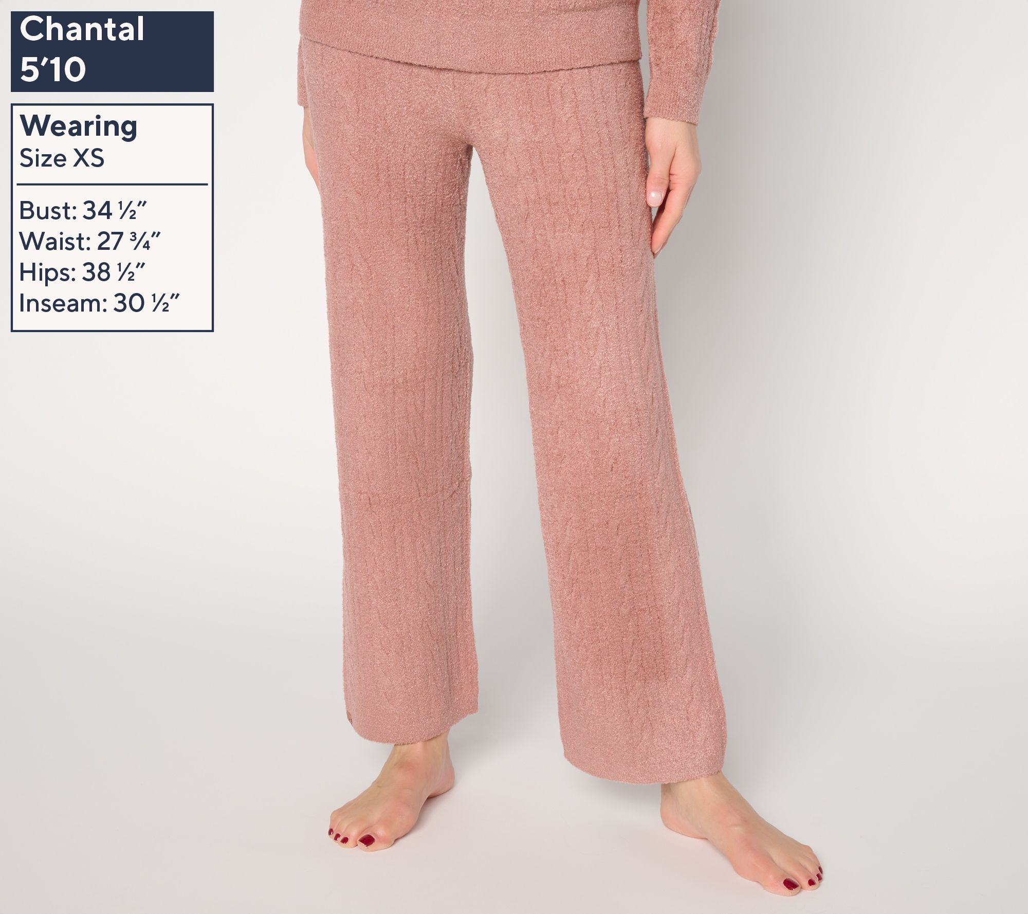 Soft knit CozyChic Lite comfort meets refined design with these straight-leg pants, a super-comfy choice for unwinding at home or heading out for a casual day. The ribbed cable detailing creates textural interest, while the elastic waistband creates a relaxed silhouette that's so easy to style. From Barefoot Dreams.