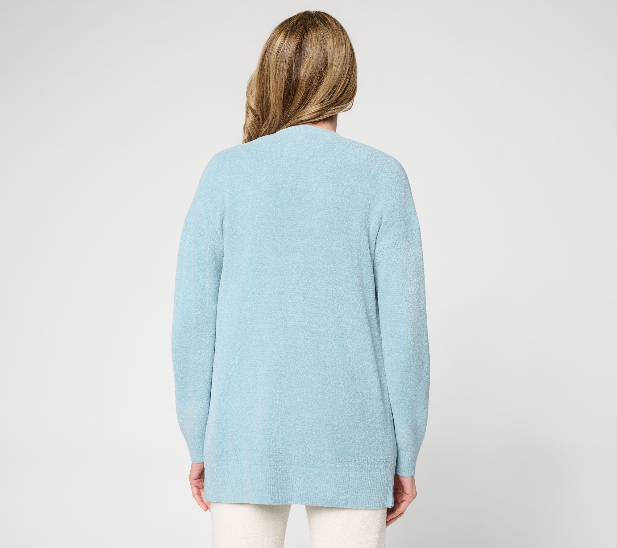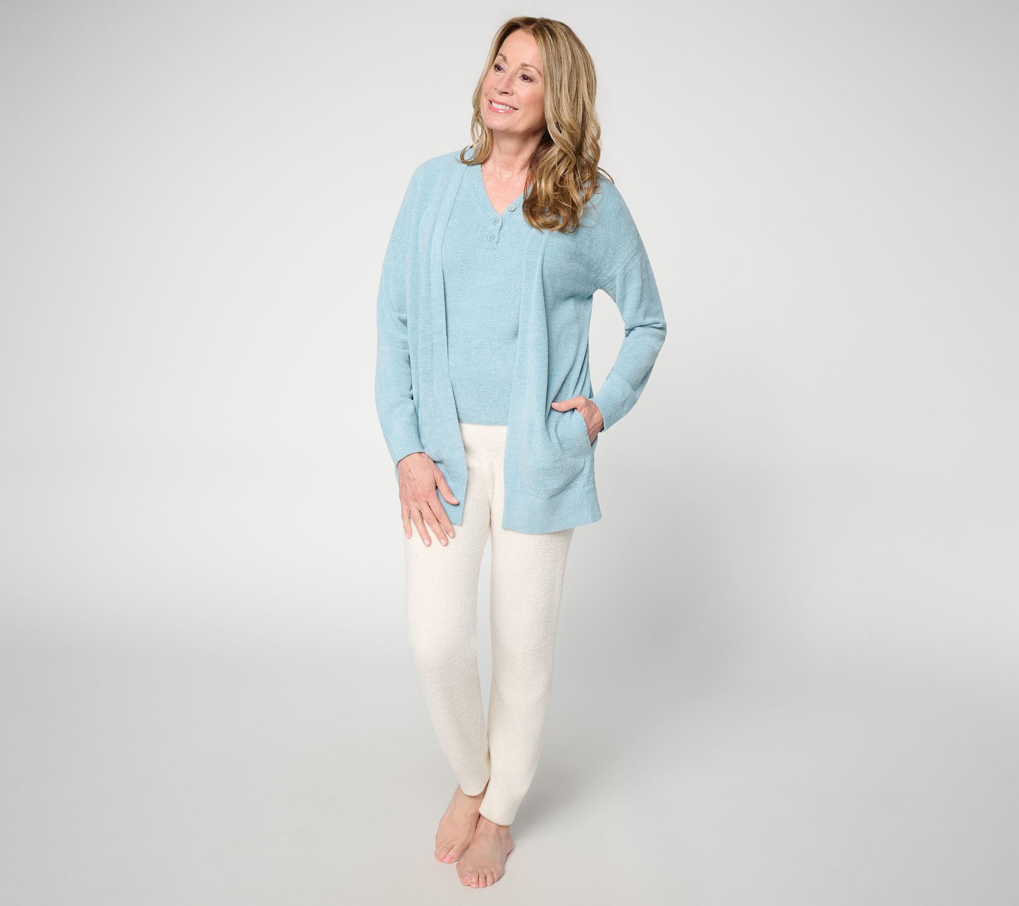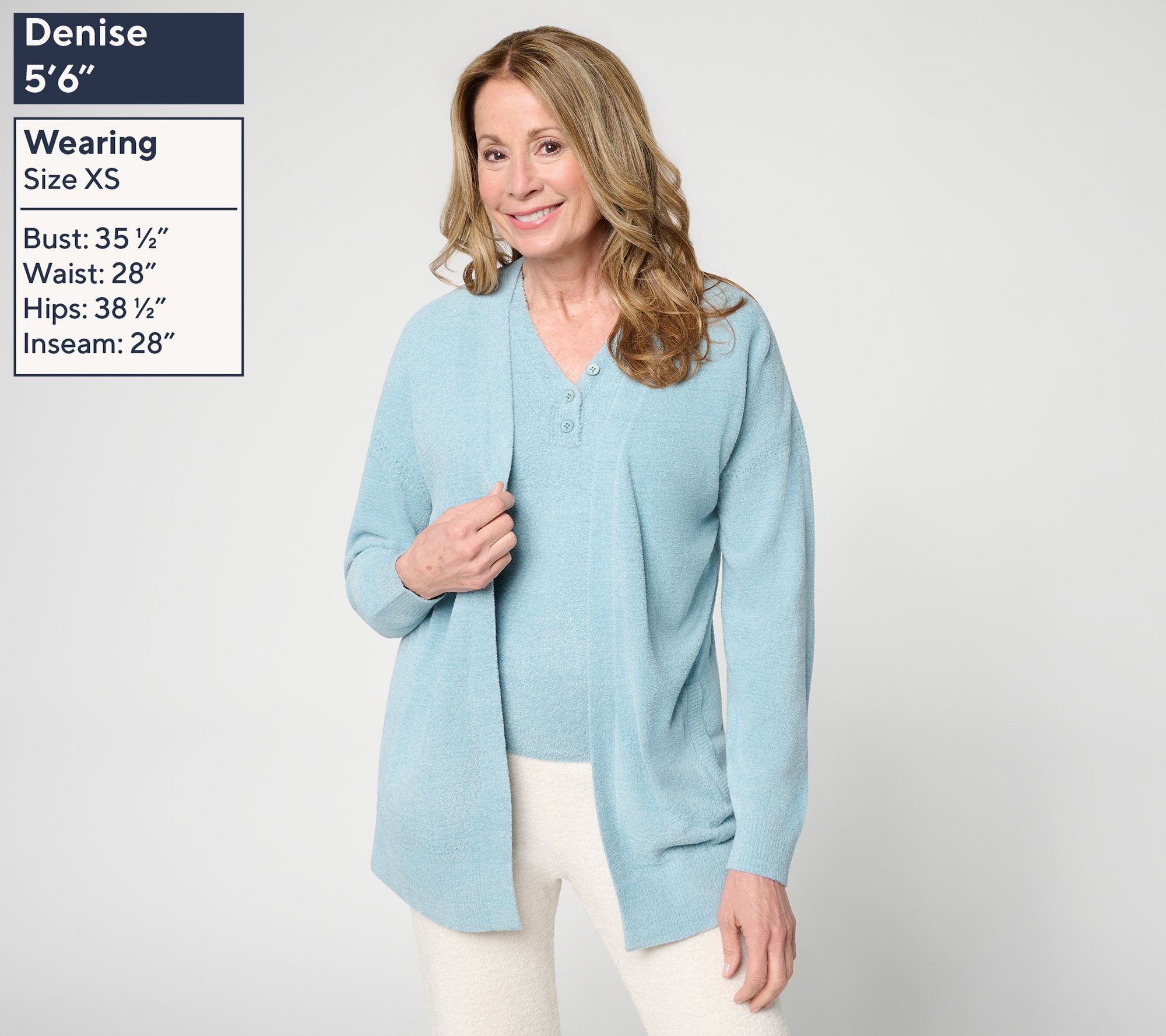 A positively perfect four-season cardigan with easy elegance and undeniable versatility? In your dreams -- Barefoot Dreams, to be exact. Crafted in CozyChic Ultra Lite fabrication, the open-front topper wraps you in lightweight luxury with a supremely soft feel. Pointelle stitch details, a drop shoulder, and a clean finished placket add the most subtle touches of sophistication.