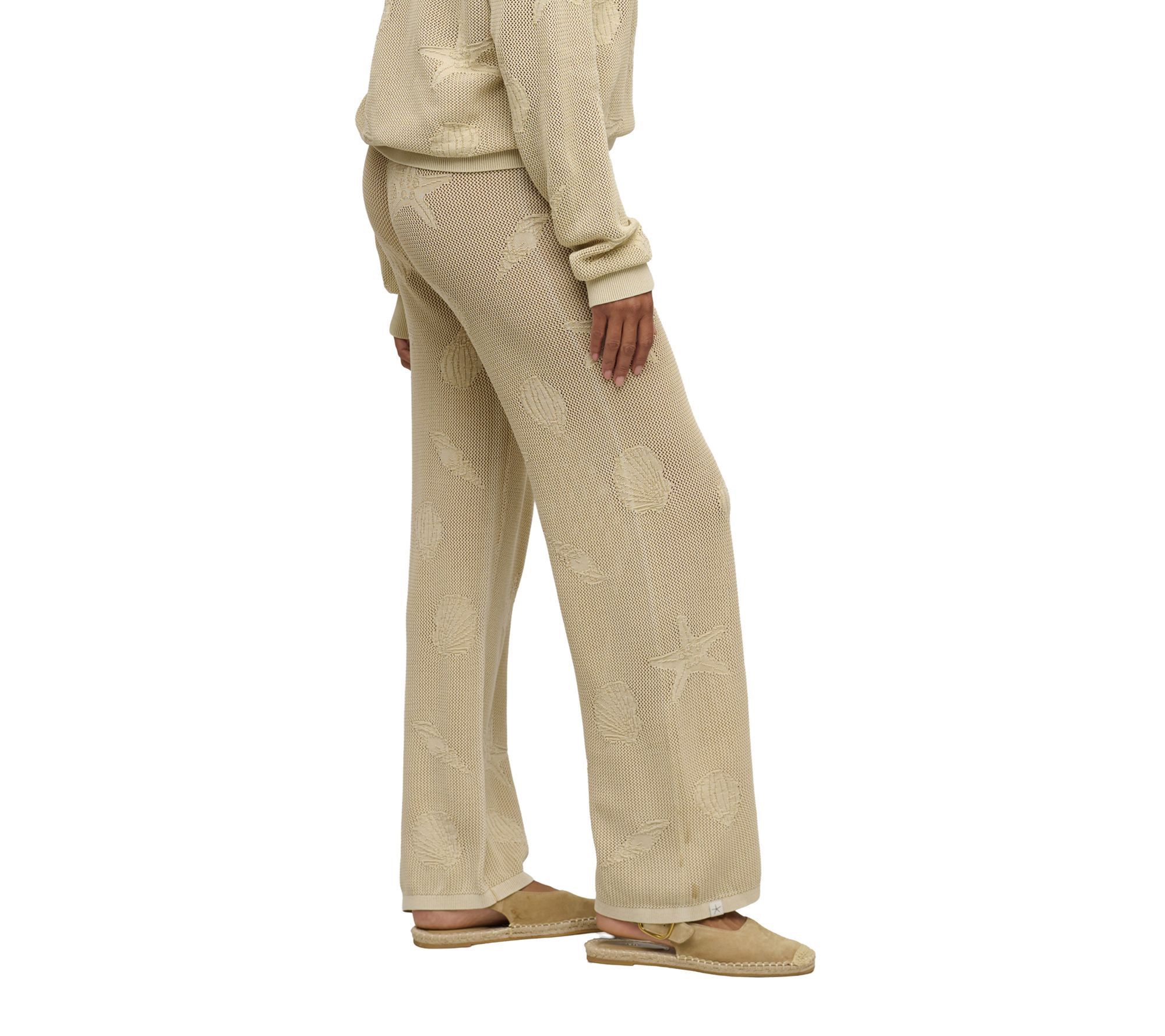 Sun-soaked afternoons and breezy shore strolls come easily in these relaxed pants, featuring a subtle sunbleached shell motif for just the right touch of coastal flair. From Barefoot Dreams.