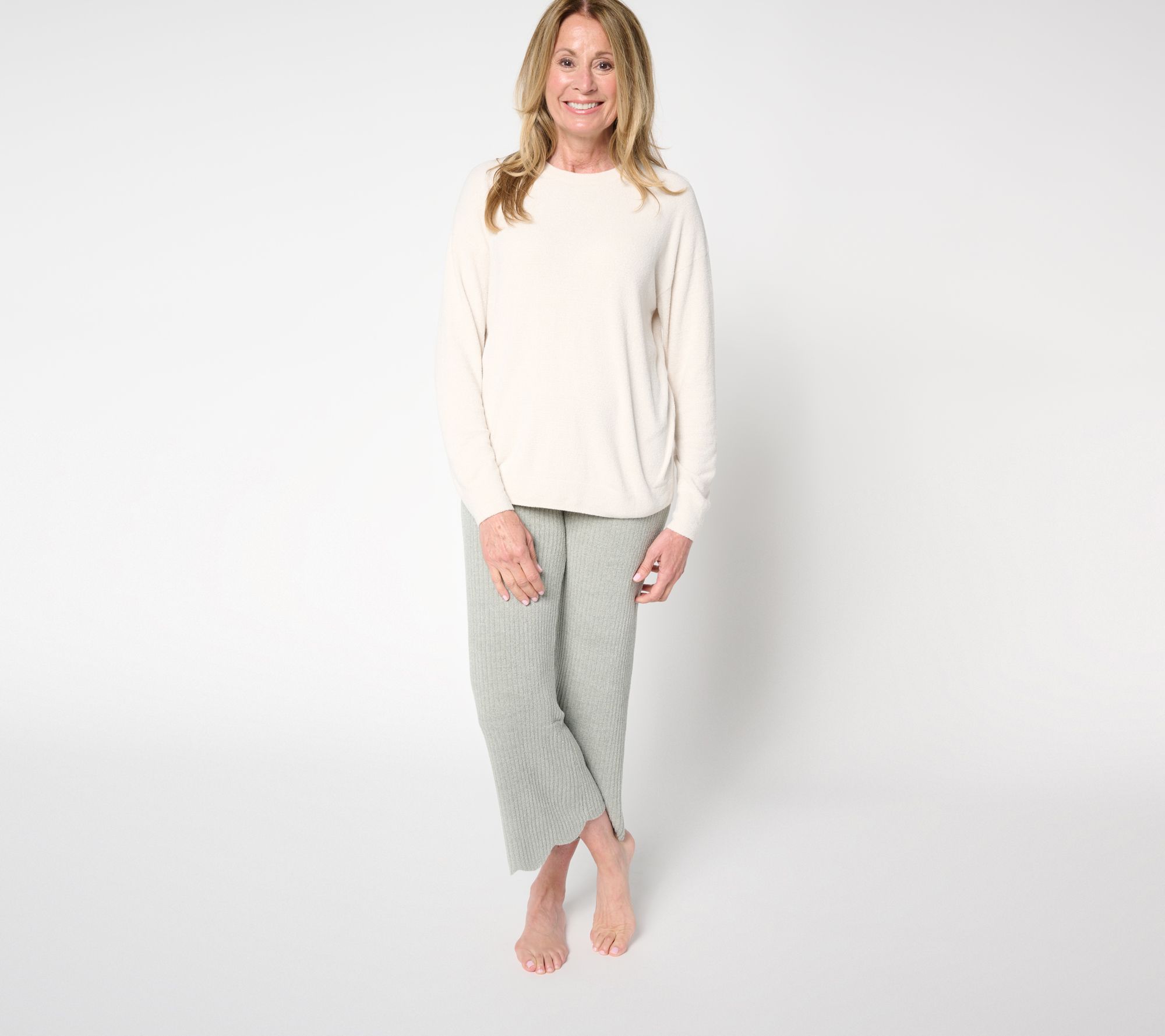 Ready for the next cozy chapter in your lounge narrative? These CozyChic Ultra Lite cropped pants, authored by Barefoot Dreams, bring a playful twist to downtime dressing, thanks to their scalloped edge and soft, lightweight knit. Unwind, brunch, or travel in relaxed comfort -- just add a casual tee or tunic for an easygoing yet polished vibe. From Barefoot Dreams.