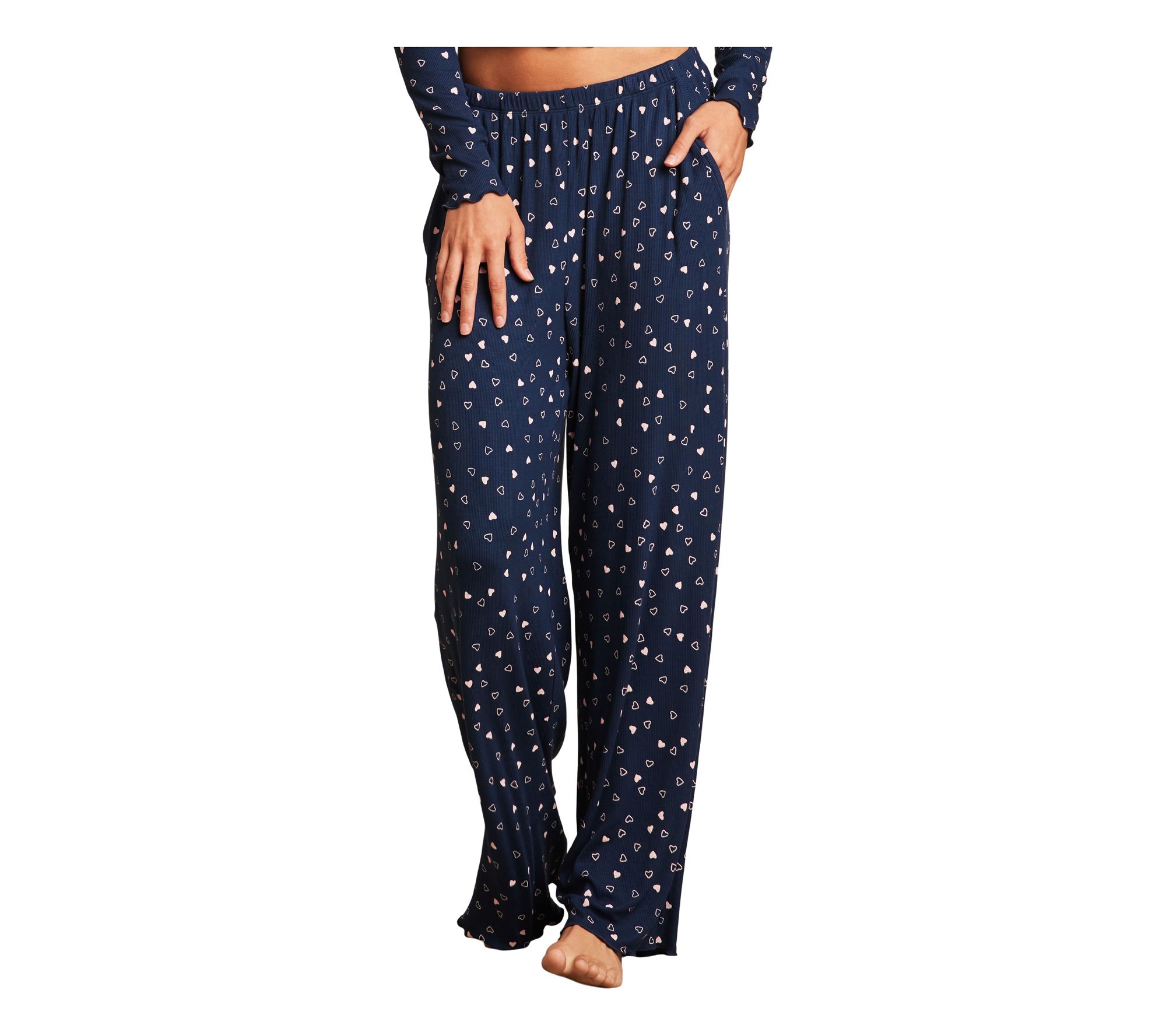 Whether you're lounging at home or meeting friends for brunch, these ultra-soft, ribbed wide-leg pants effortlessly elevate your everyday style. The whimsical mini hearts printed all over, paired with charming lettuce hem detailing, add just the right amount of playfulness. Enjoy the ultimate comfort with their relaxed fit and comfortable at-the-waist rise. From Barefoot Dreams.