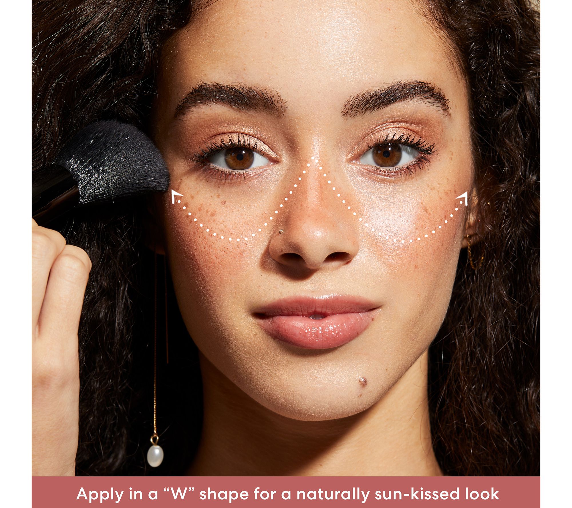 How do I use it: Using the Blooming Blush Brush, apply powder in a "W" shape to create a natural-looking, sun-kissed appearance on the high points of your face. Starting on the outer bridge of the nose, sweep the product in a "U" shape, downward to the apple of the cheek and up toward the temple. Repeat on the other side. Connect the "W" by sweeping continuously from one cheek, over the nose, to the other cheek.