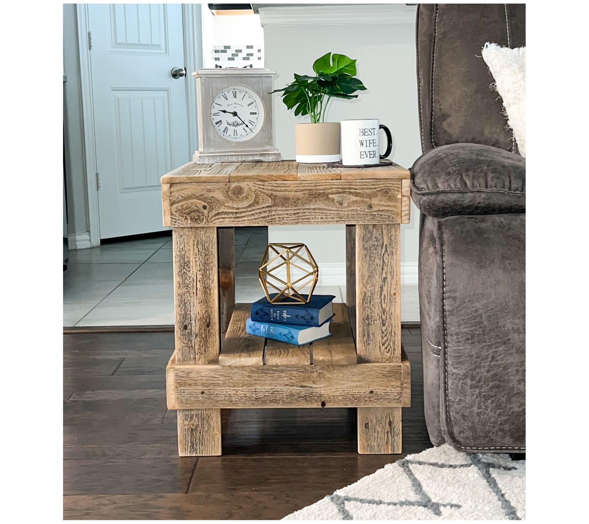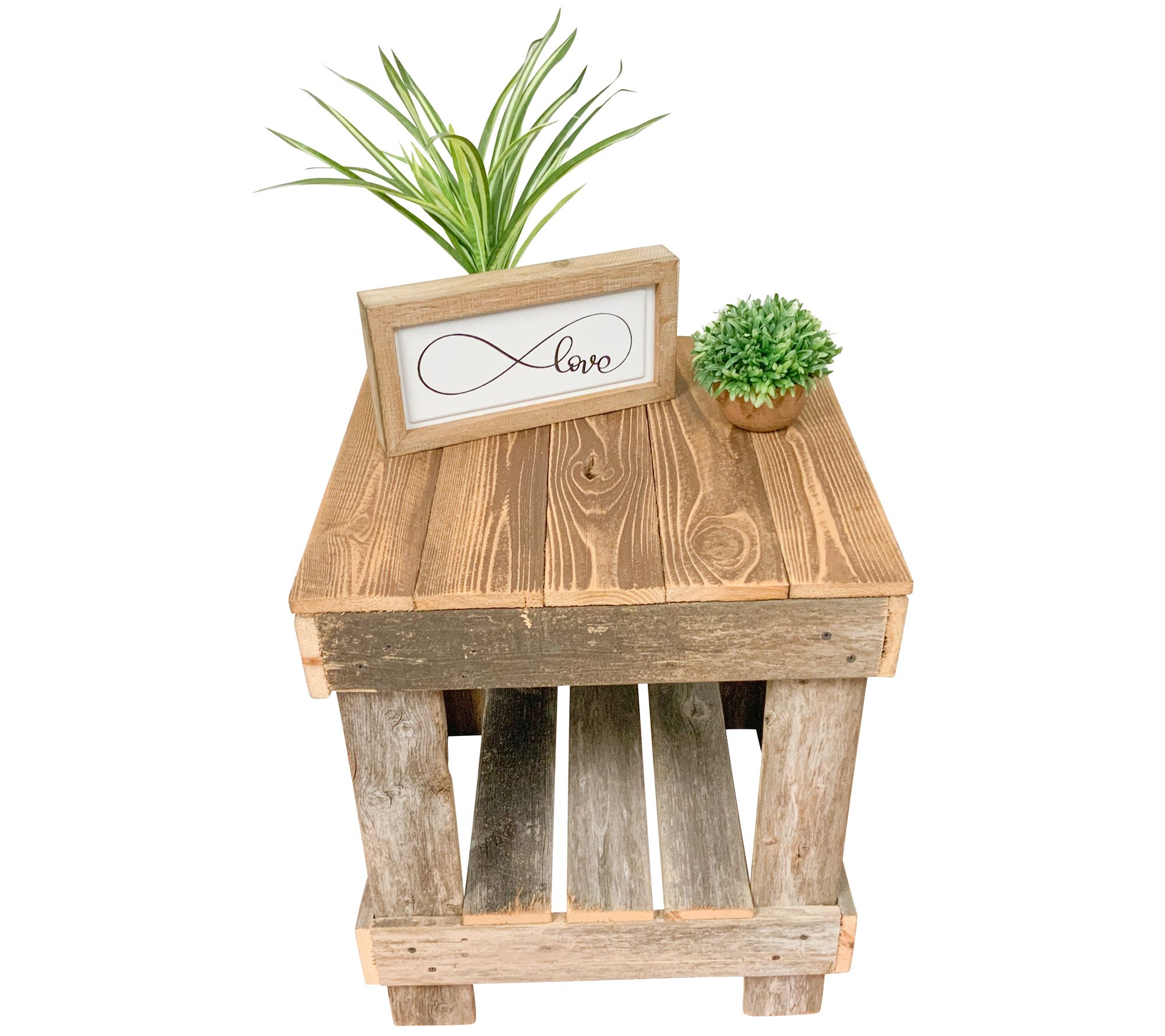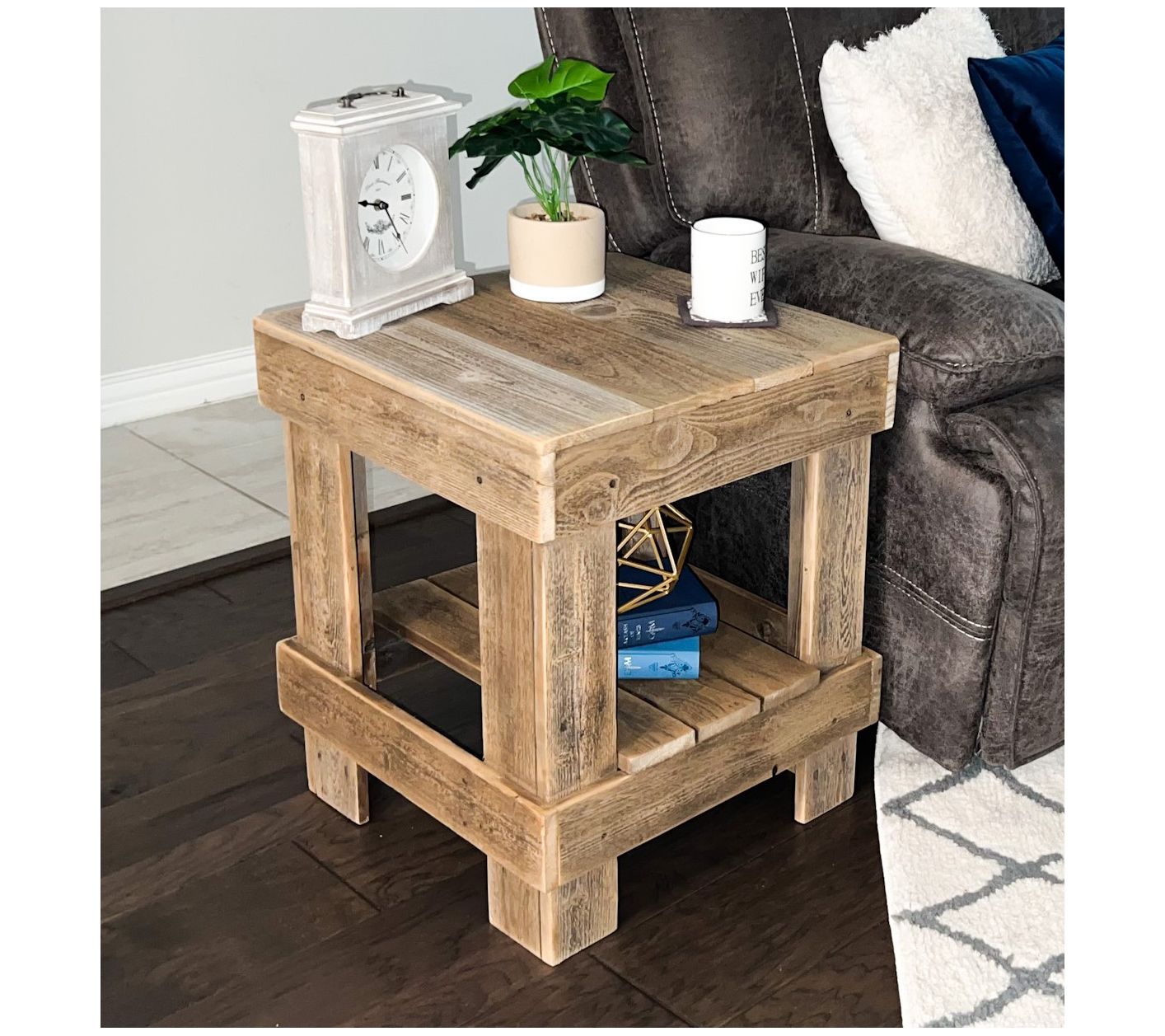 Your farmhouse-style redo would not be complete without this gorgeous barnwood end table! From Del Hutson Designs.