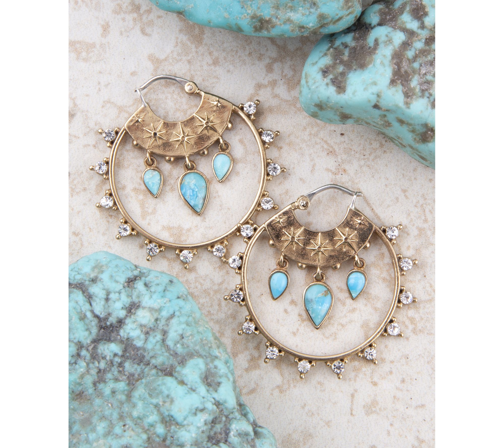 Barse Artisan Crafted Celestial Turquoise Golden Hoop Earrings