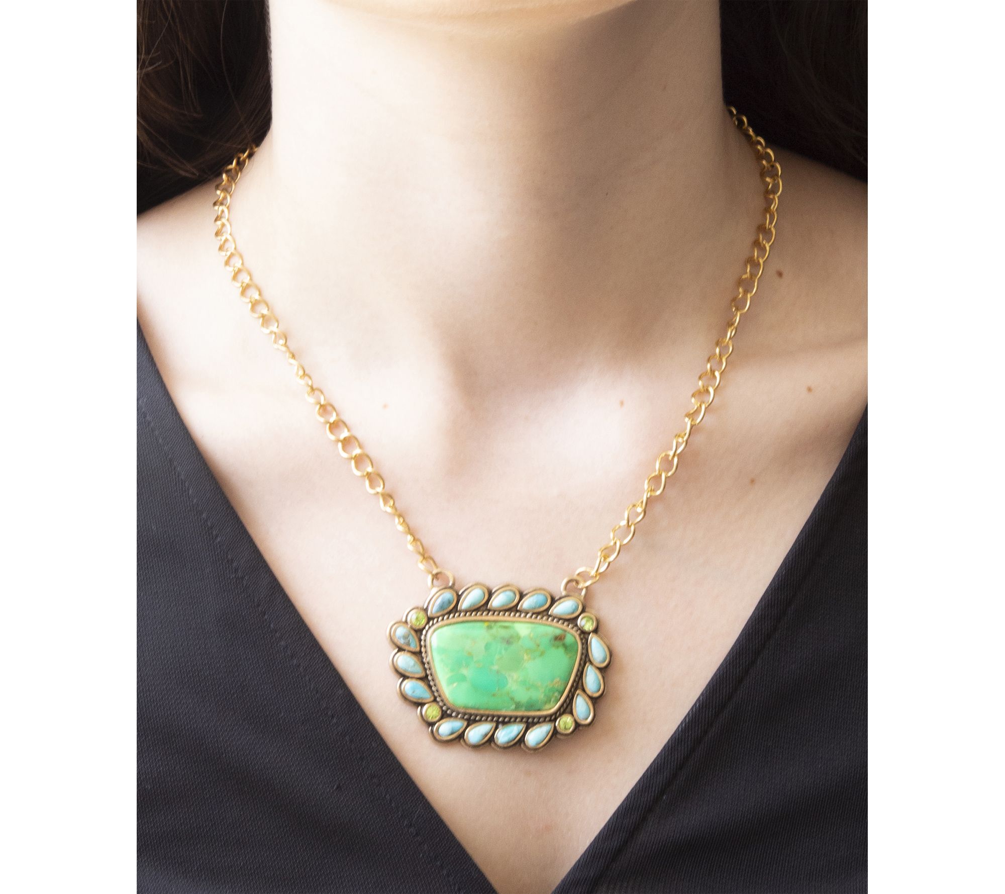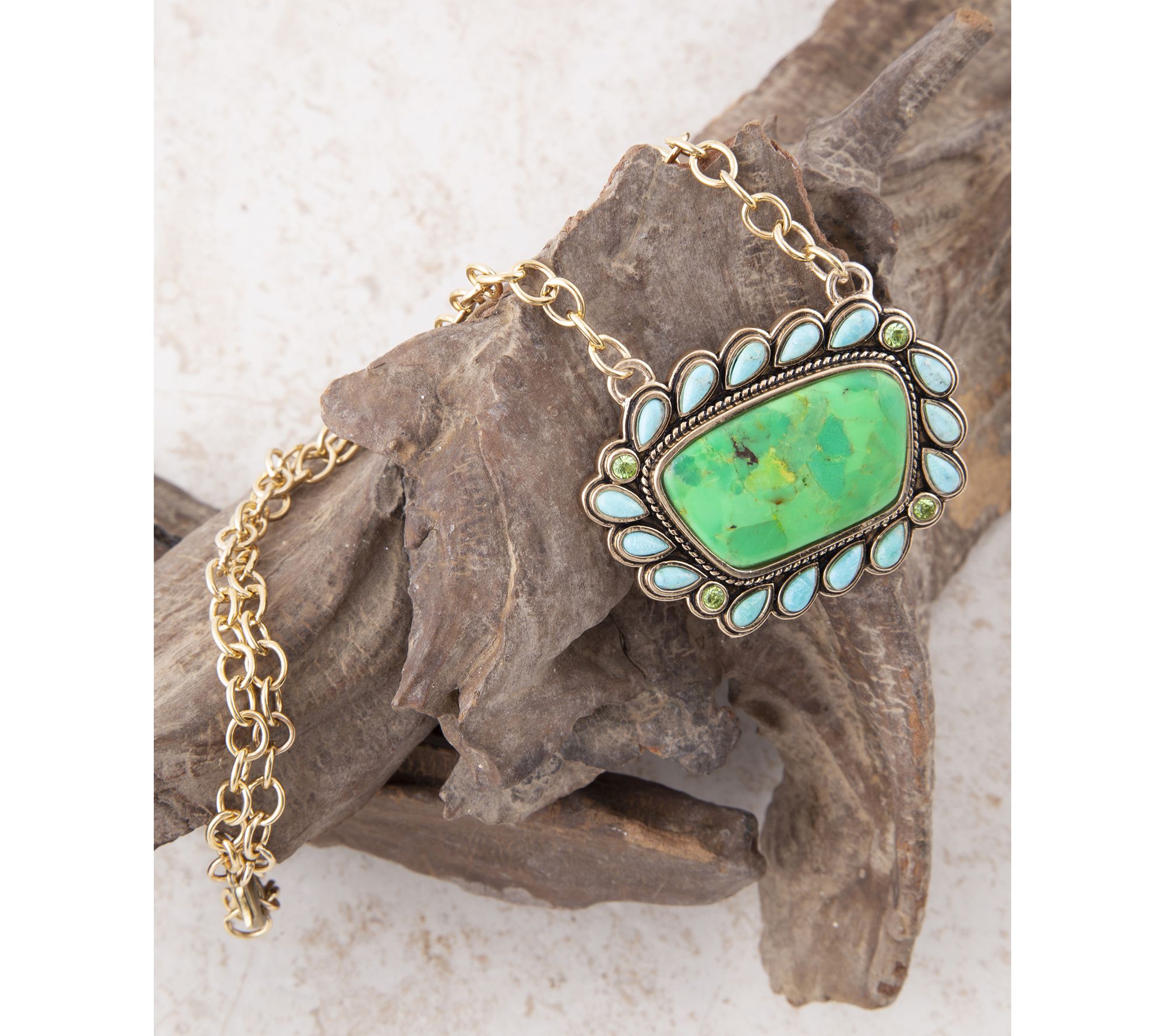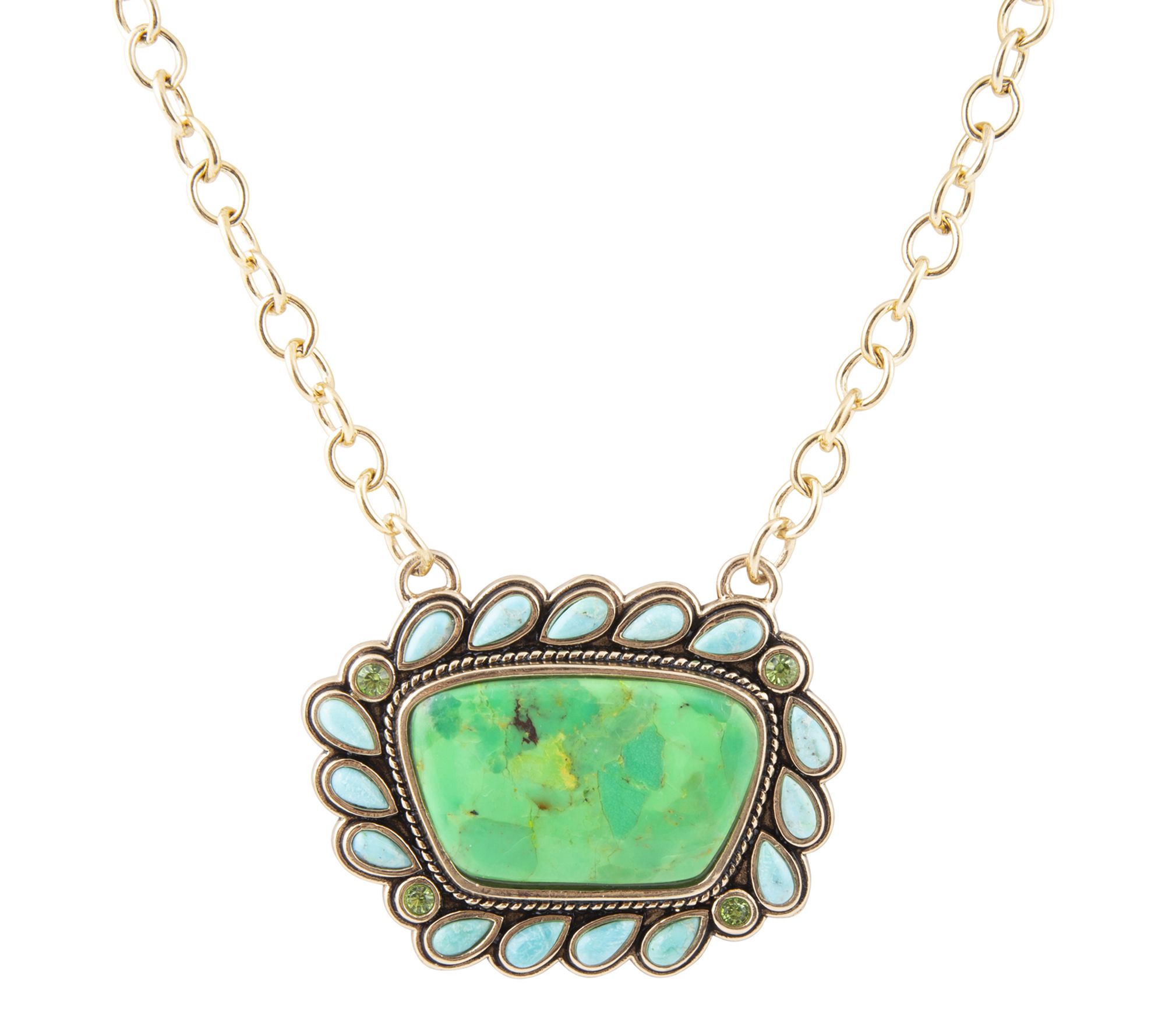 Make a statement at lunch with friends or elevate your evening look with this artisan-crafted necklace. Blue and green turquoise, accented by peridot gemstones, shimmer along a glowing chain -- giving any outfit just the right touch of elegance and color. From Barse.