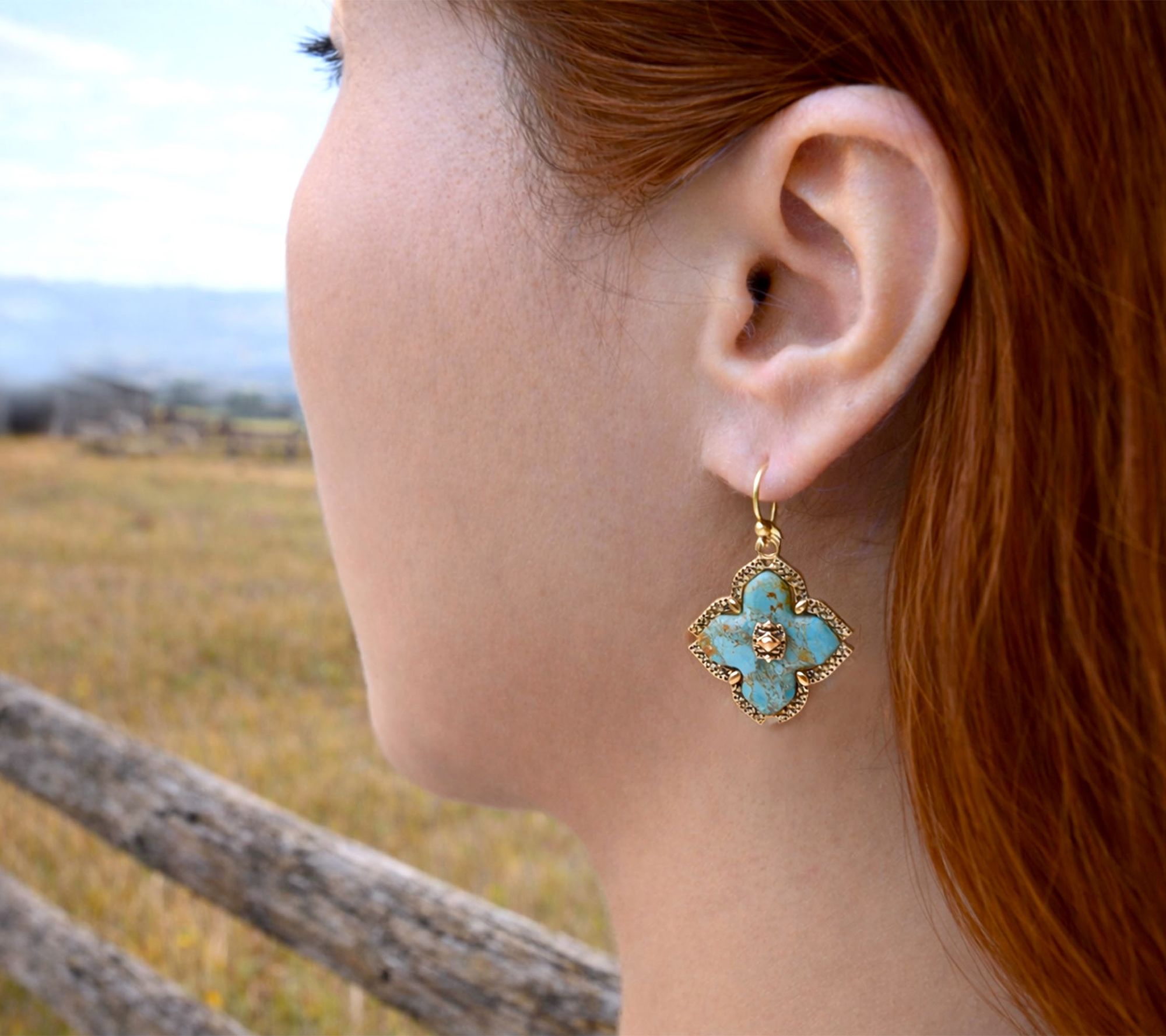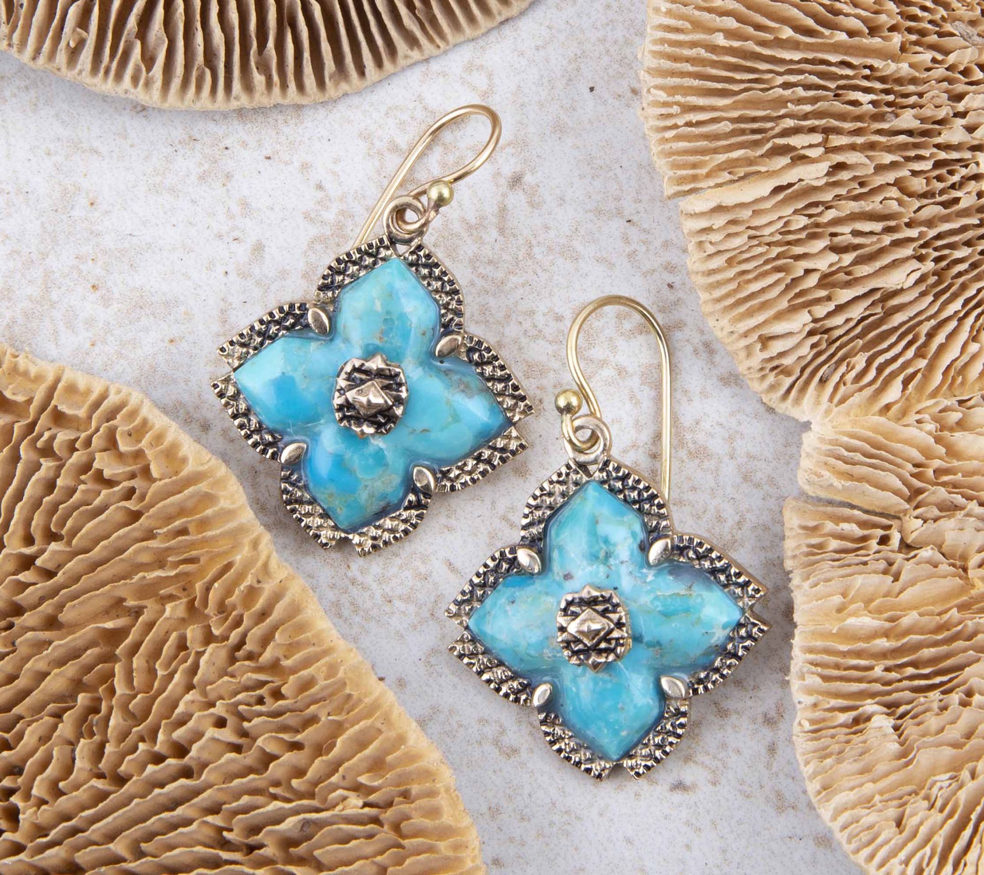 Freeform composite turquoise stones, bezel-set in Maltese cross design
