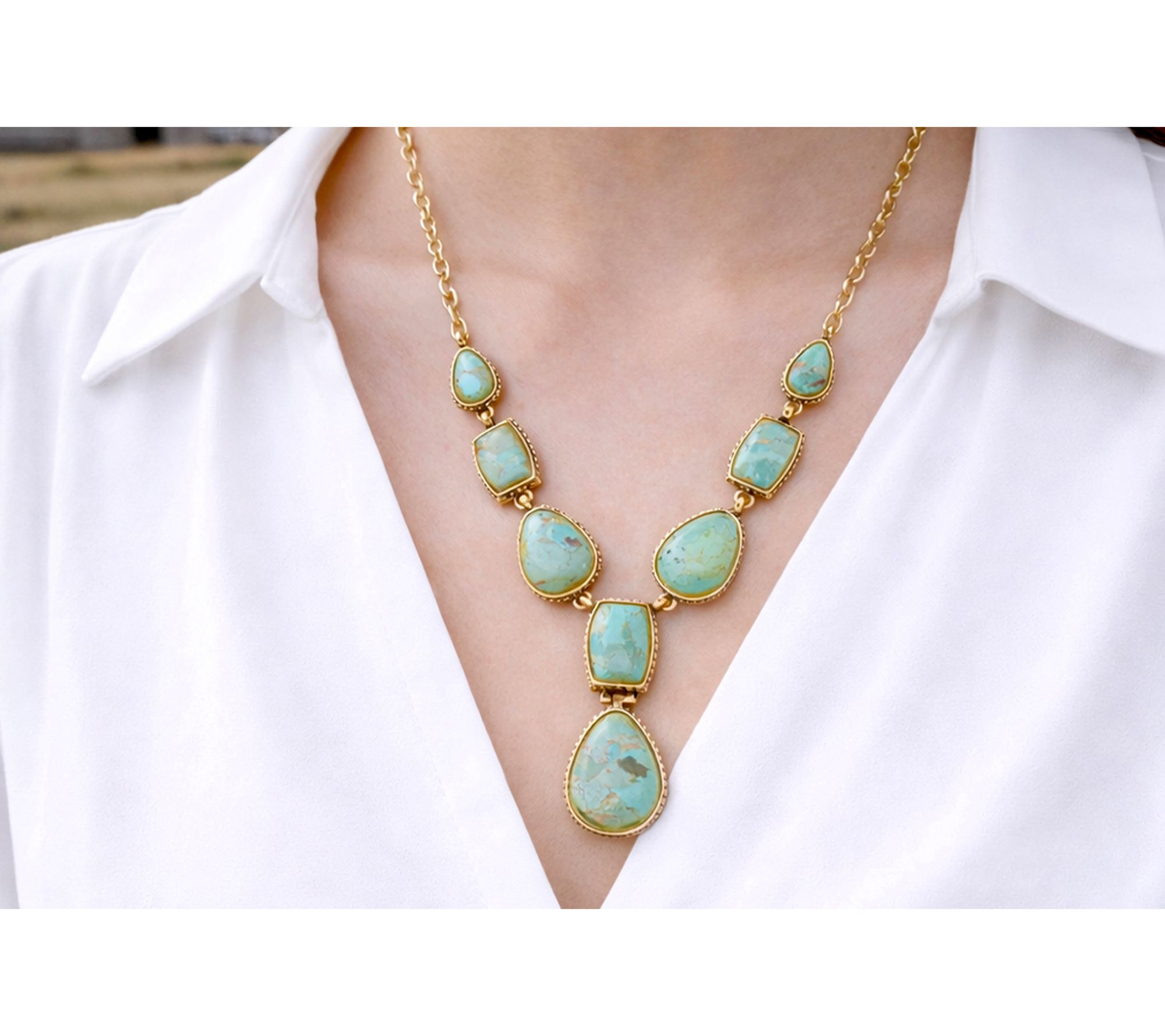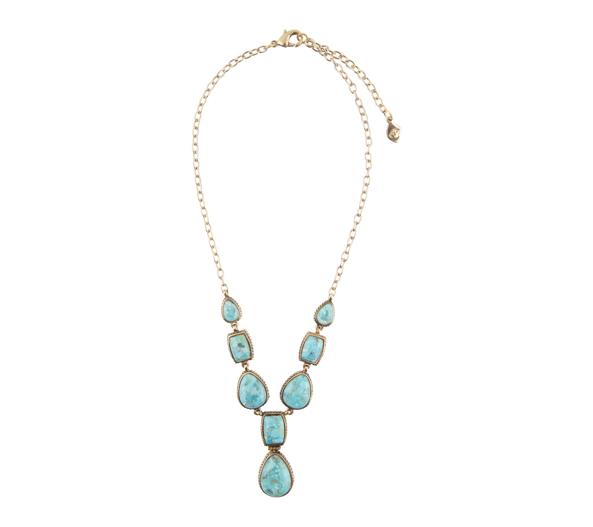 Elevate any outfit with this statement Y necklace, where composite turquoise shimmers in goldtone bronze bezels for captivating color and style. The adjustable 18" chain and 2" extender offer flexibility, making it ideal for layering or showcasing on its own during special occasions or everyday adventures. From Barse.