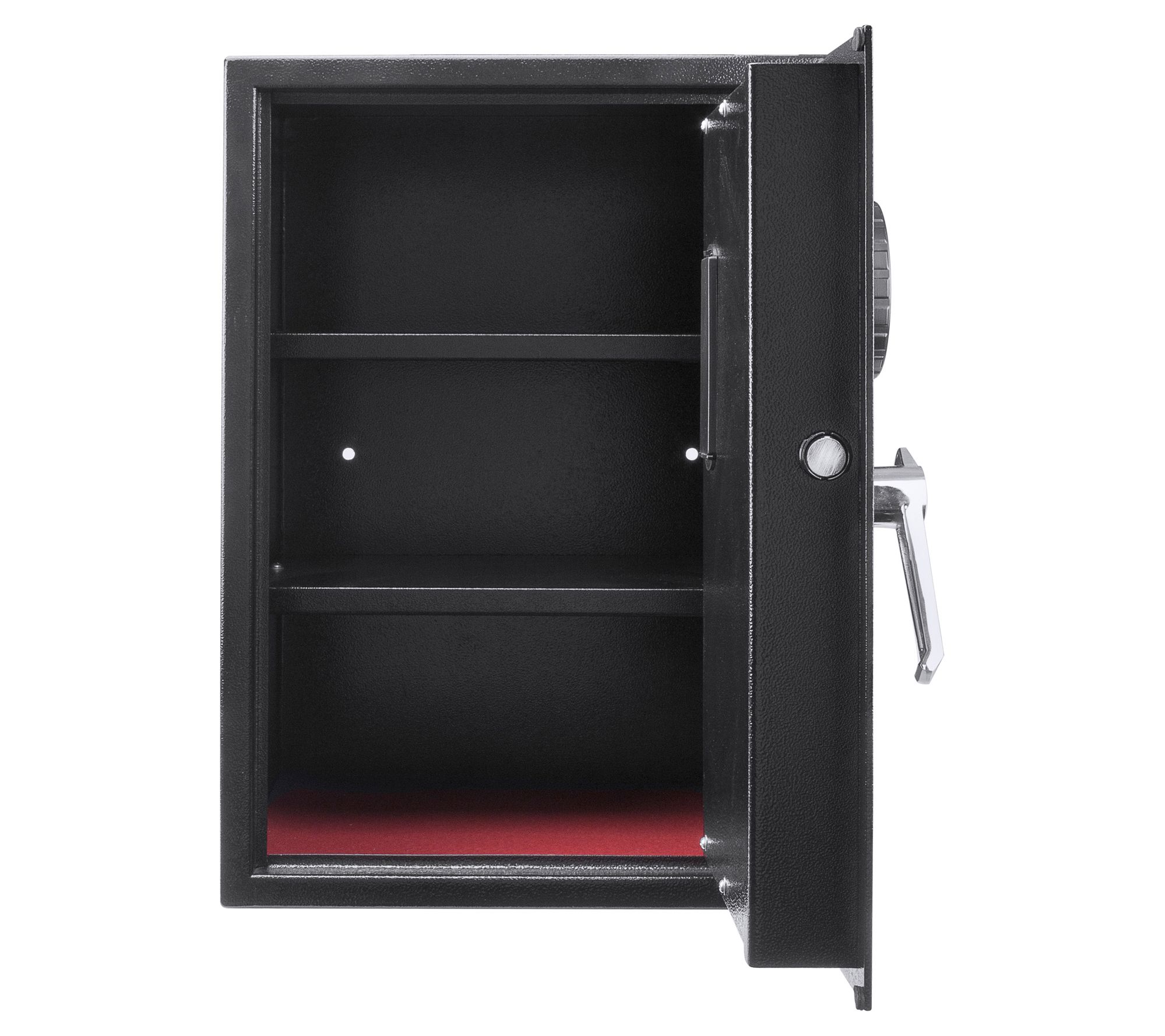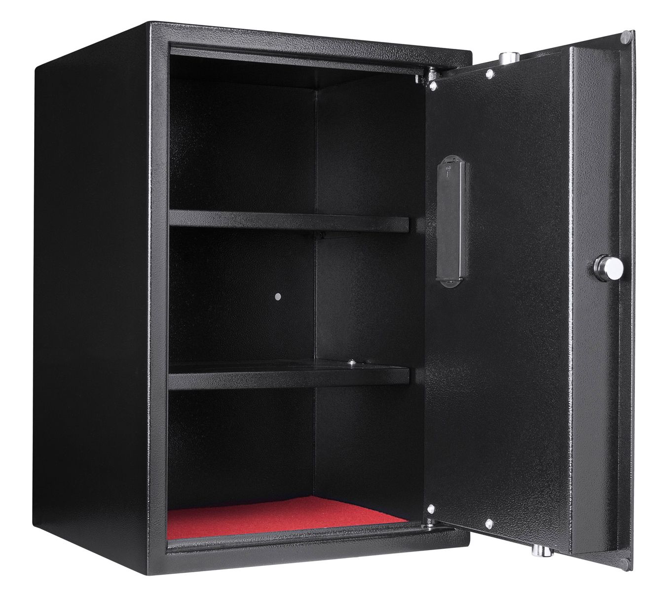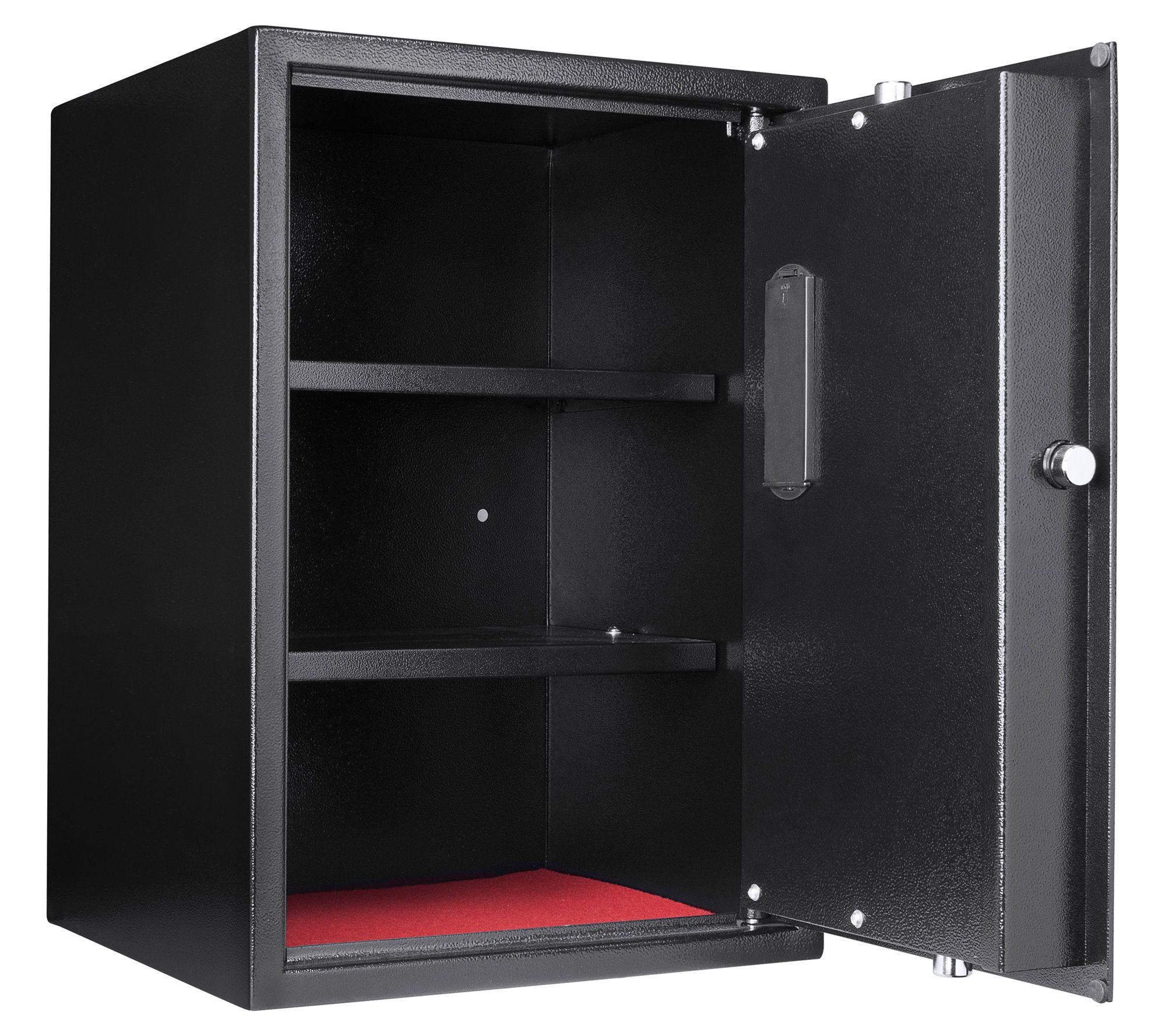 Picture your valuable items safely tucked away with peace of mind, thanks to this secure digital keypad safe. Ideal for storing important documents, precious jewelry, or emergency cash, the spacious design features two removable shelves for customizable storage. Its tamper-resistant construction with three steel deadbolts and a programmable PIN code system ensures maximum security for your belongings. Plus, with the included mounting hardware, you can easily install it in your home. From Barska.