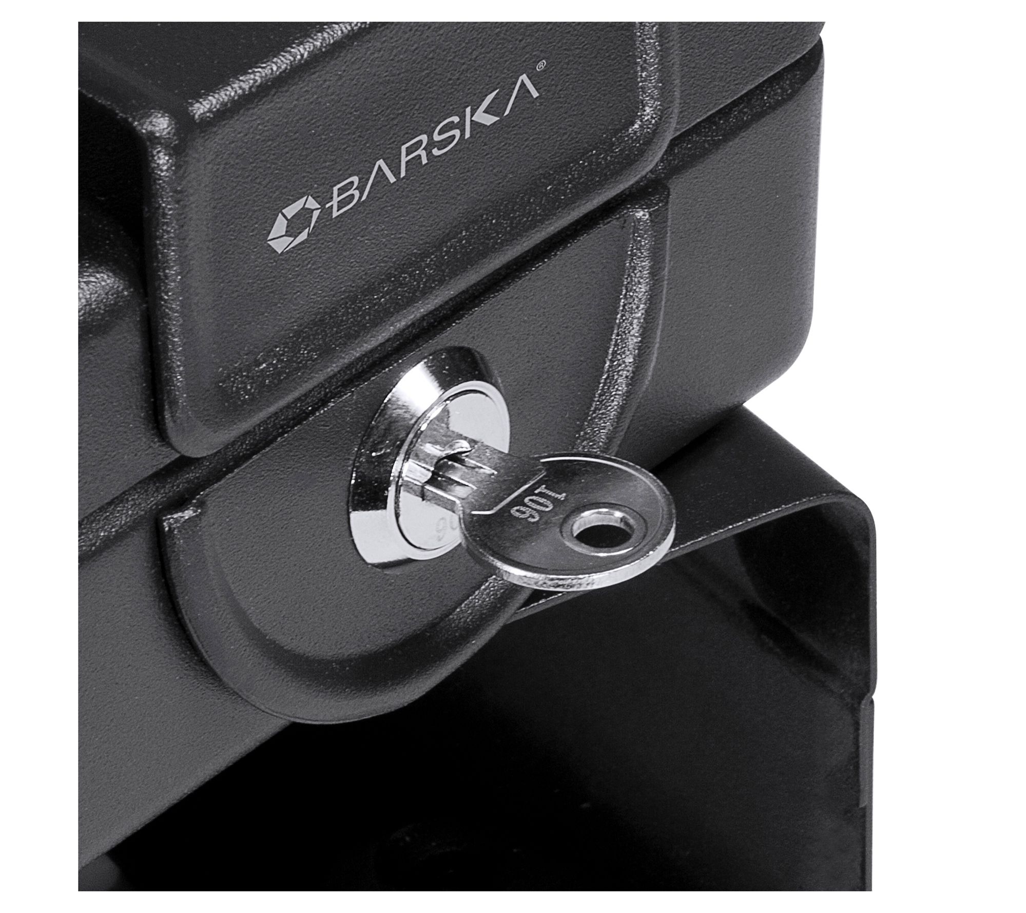 Whether you're at home, at the office, or on the go, keep your valuables secure with the Barska compact key lock safe. Designed for flexibility, this safe can be discreetly mounted or easily transported. The durable steel mounting sleeve with pre-drilled holes makes installation simple and ensures your belongings stay protected. From Barska.
