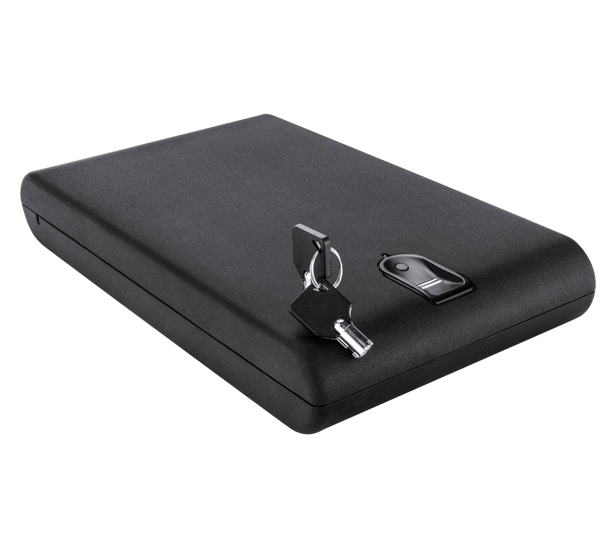 Protect your valuables effortlessly whether at home or on the go with this portable biometric compact lock box. Offering seamless security with an easy-to-use fingerprint scanner and backup manual keys, it ensures your items are safe and accessible only to you. With a compact design, it's perfect for travel or tight spaces, providing peace of mind wherever you are. From Barska.