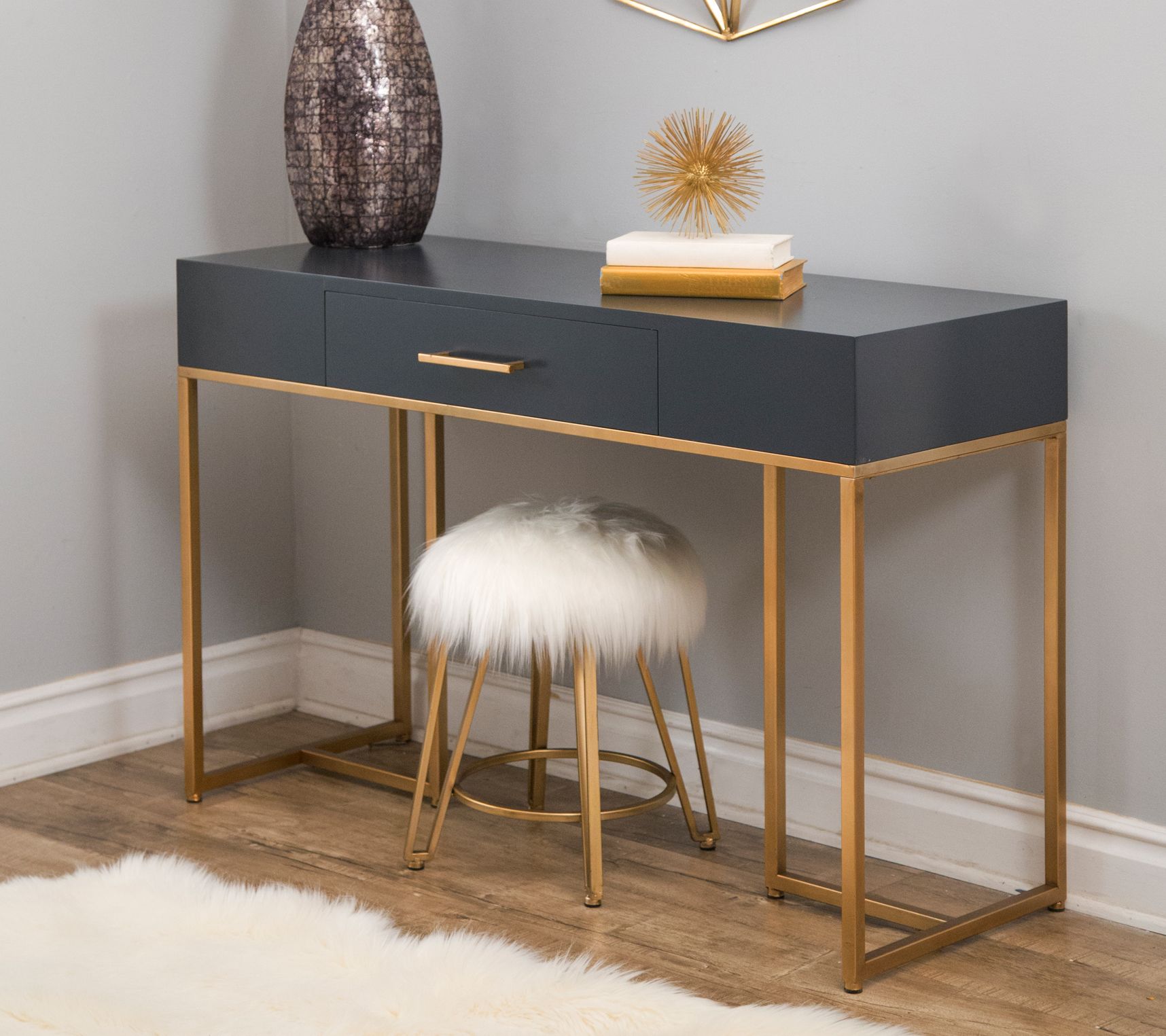 Add contemporary style to your home or office with this sophisticated charcoal grey Barlow writing desk featuring stunning goldtone finish highlights and a sleek modern profile. From Abbyson Living.