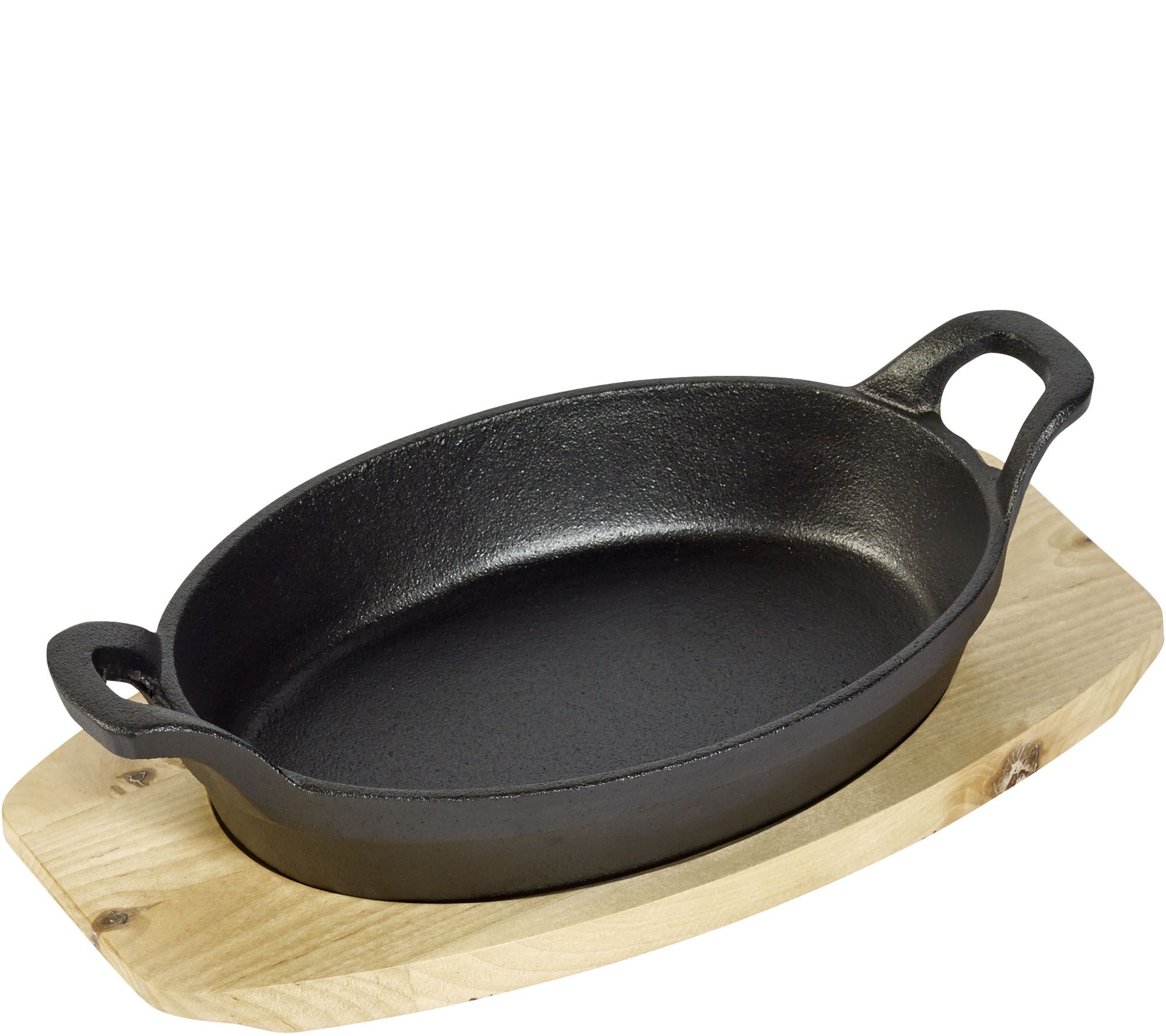 Basic Essentials Cast Iron Sizzle Set with Wooden Trivet