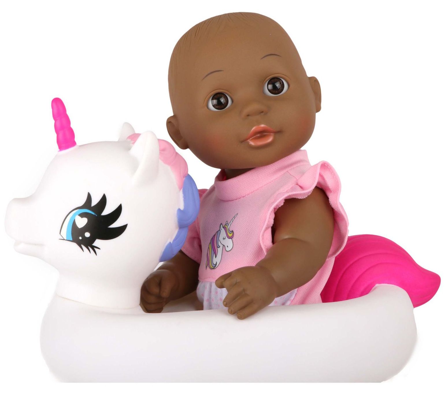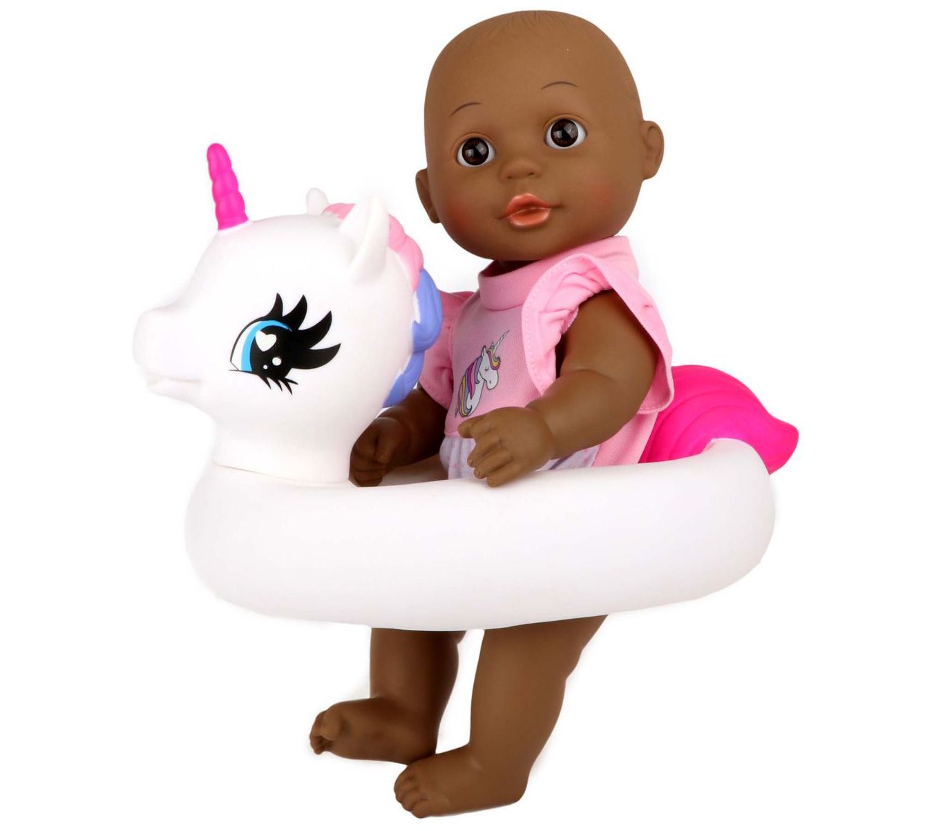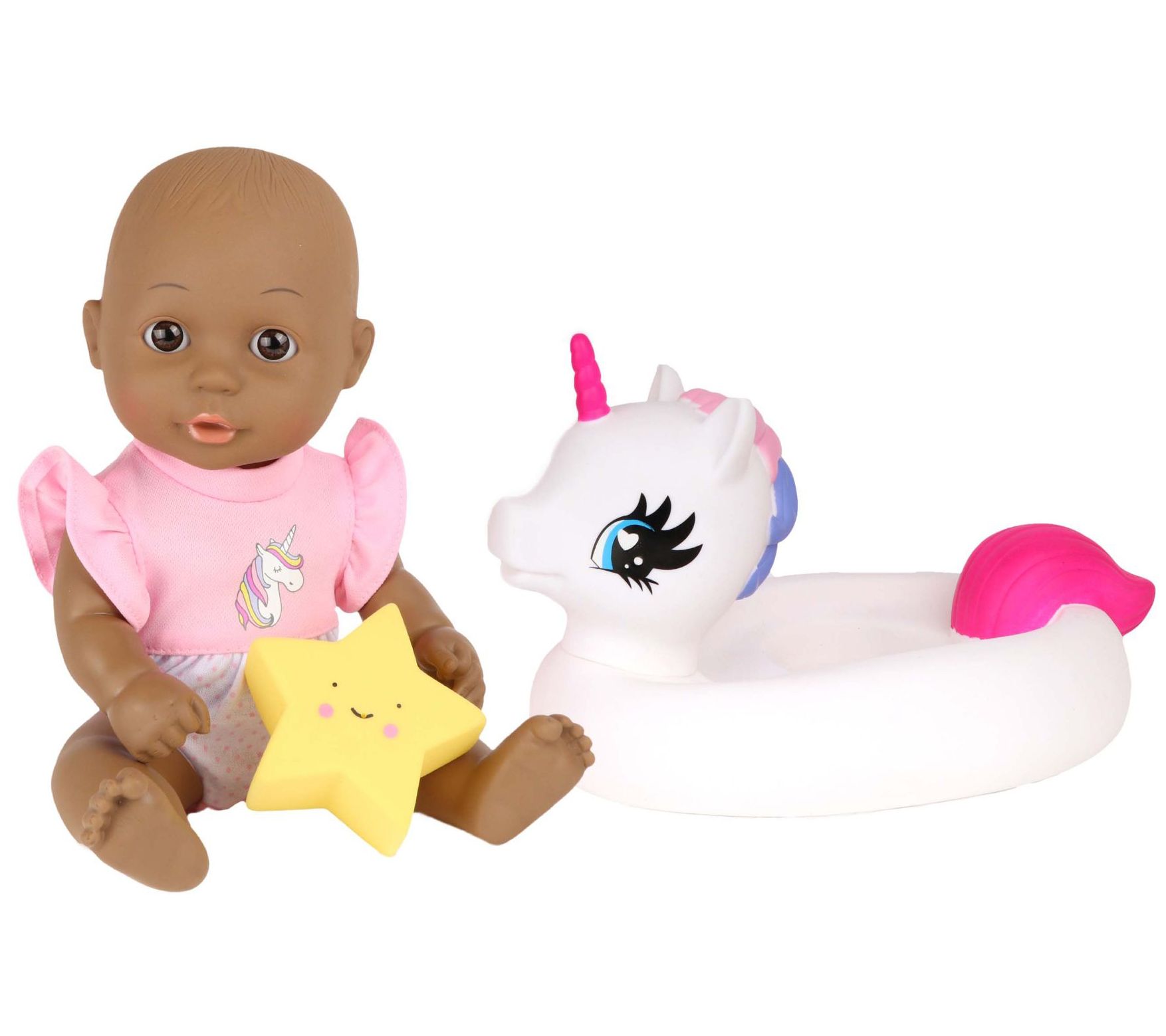 Bath Time 12" Baby Doll with Unicorn Floatie -African America