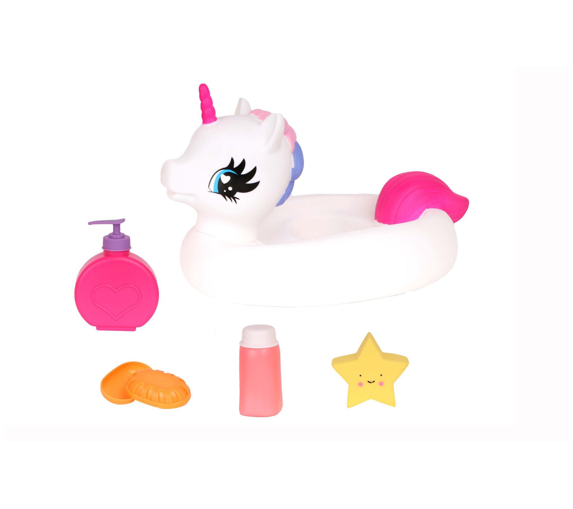 • Includes 12" baby doll, one float and four bath-time accessories