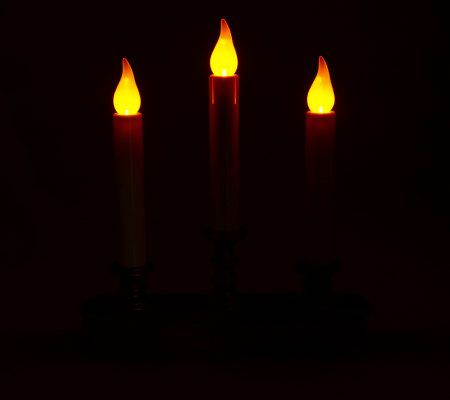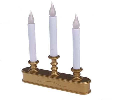 Give your home an elegant look for the holidays or throughout the year with this three-tier window candle. The device fits neatly on a windowsill, and there's no unsightly cord to get in your way since it's battery operated. A built-in sensor automatically turns the candle on at dusk and off at dawn. If lit for an average of 12 hours a day, you can expect one set of batteries to last about 45 days. What's more, the LED light source eliminates the need for bulb replacement. Features a three-position slide switch with on, off, and flicker settings. Includes mounting clip. Requires 3 D batteries, not included.
