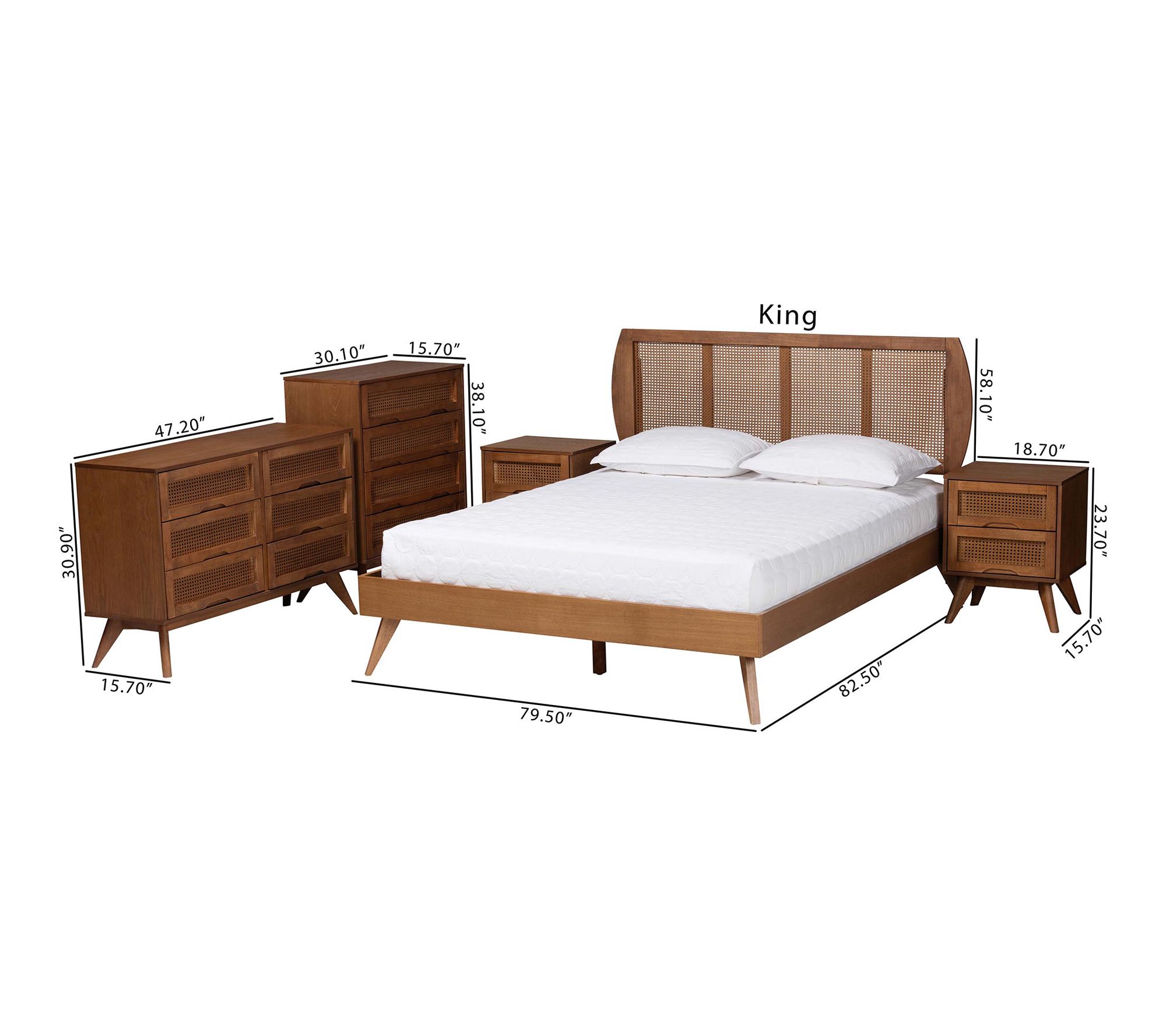 Baxton Studio Asami Wood and Rattan King 5-Piece Bedroom Set