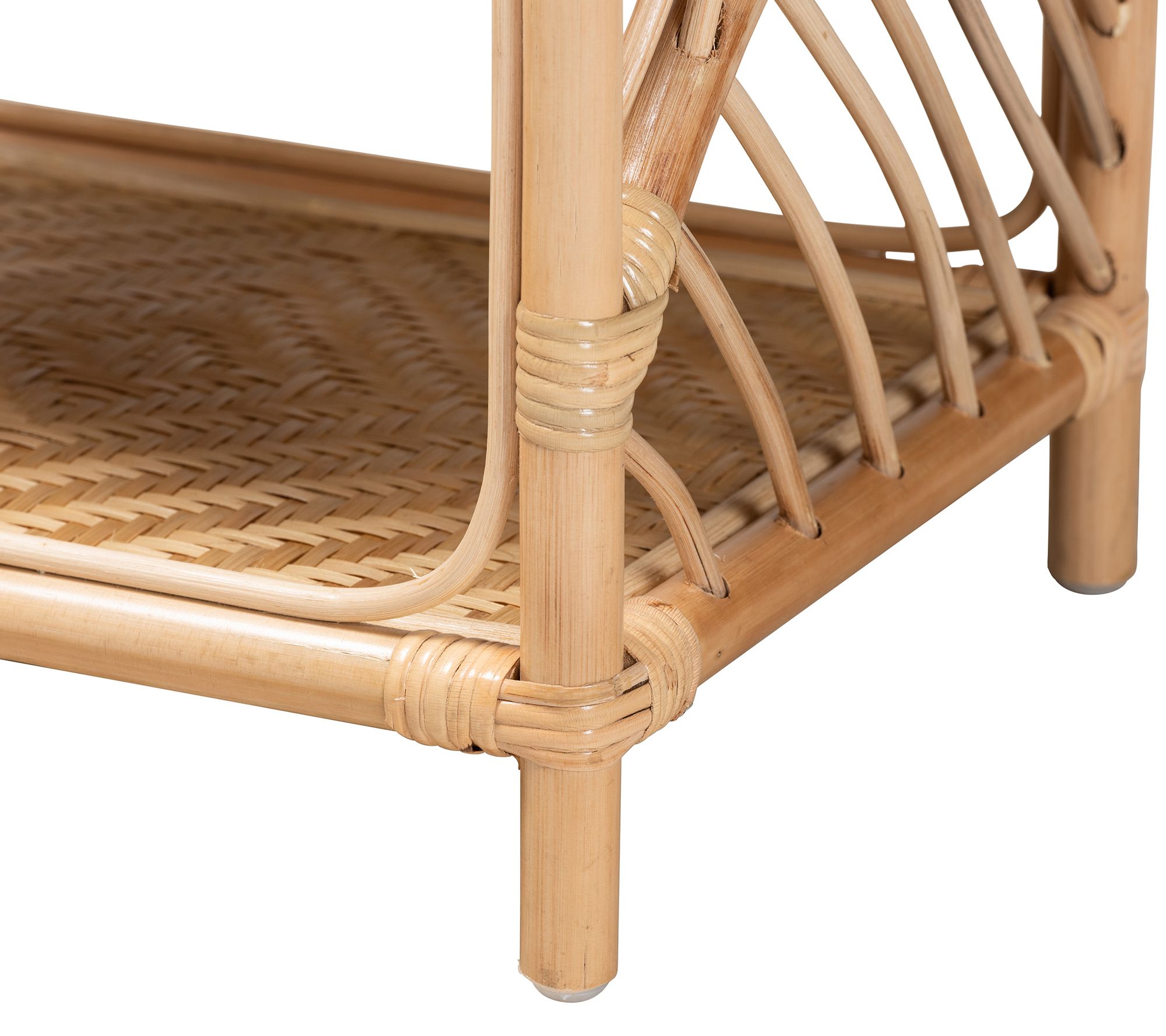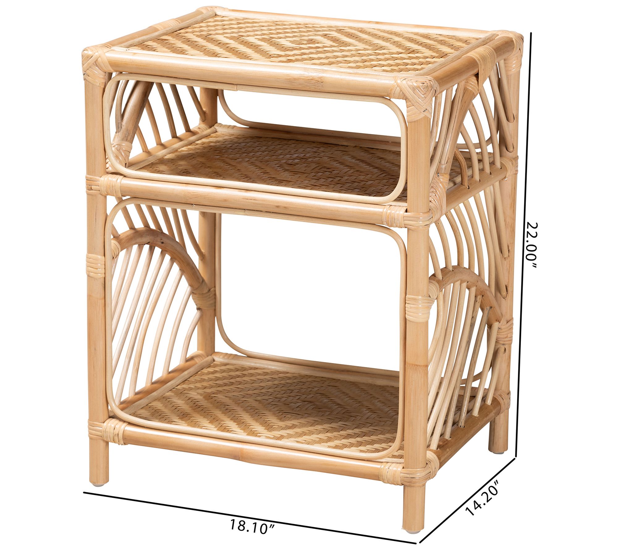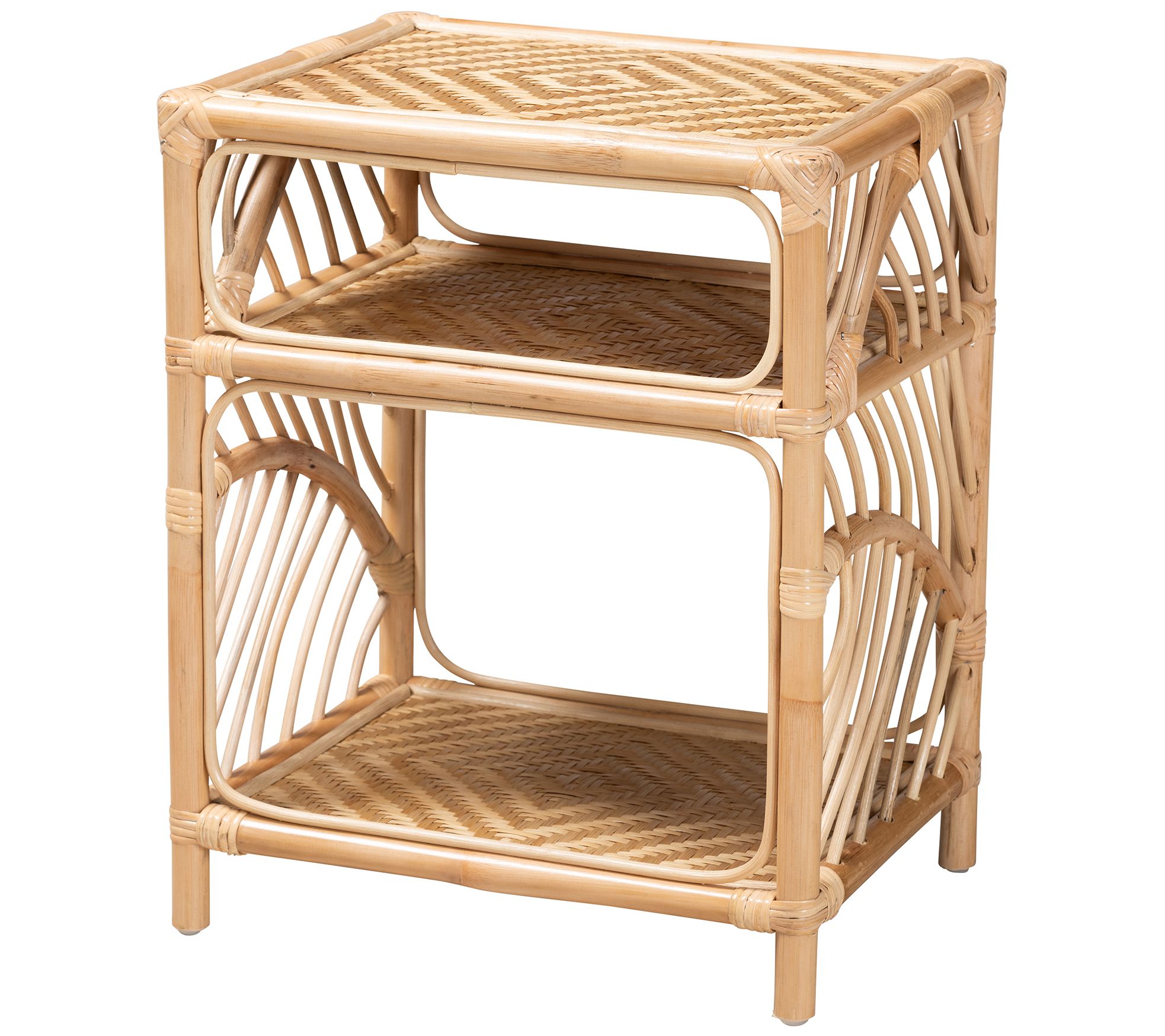 Update your bedroom with the bright bohemian style of this openwork nightstand outfitted with two spacious shelves to organize essentials. From Baxton Studio.