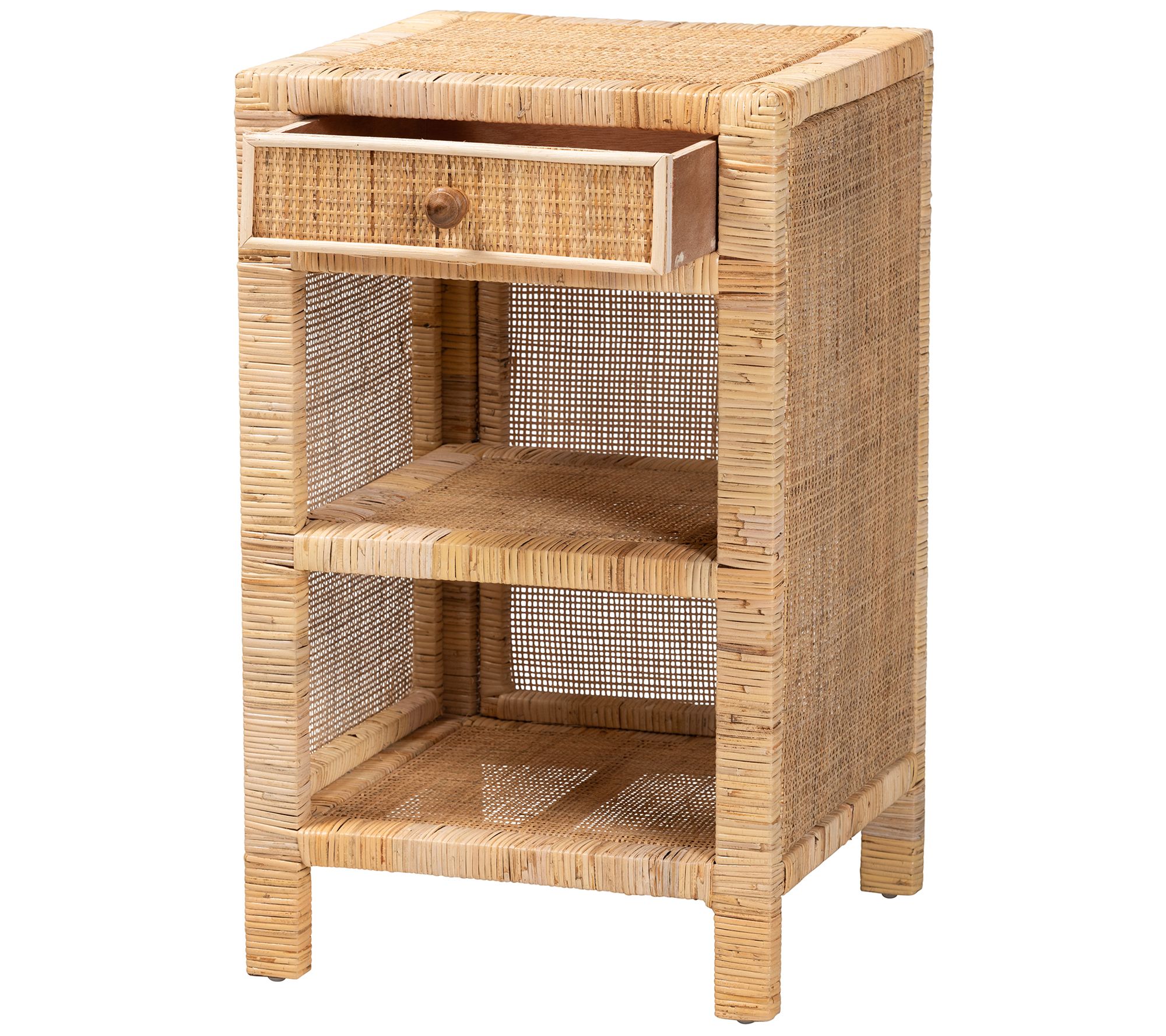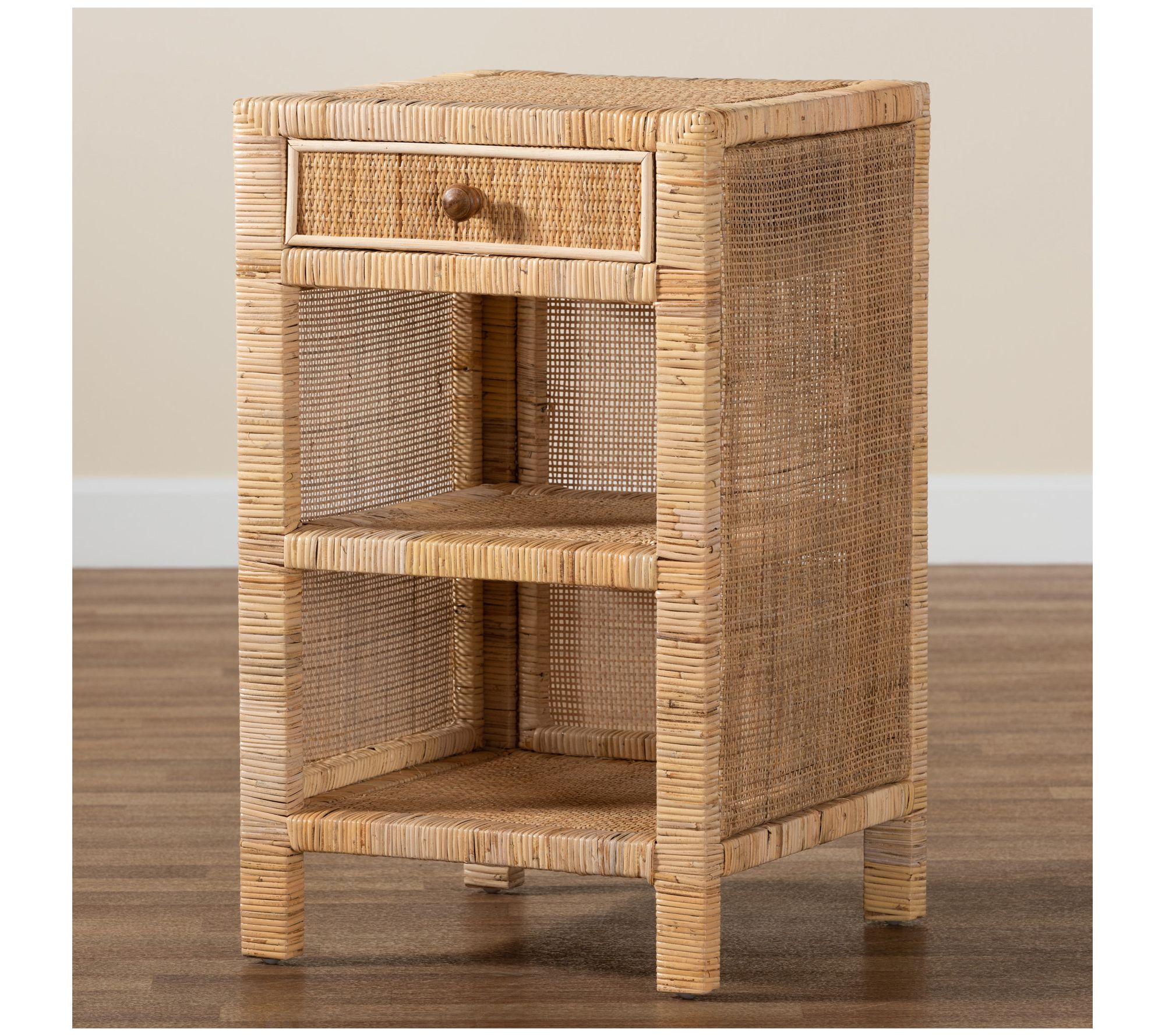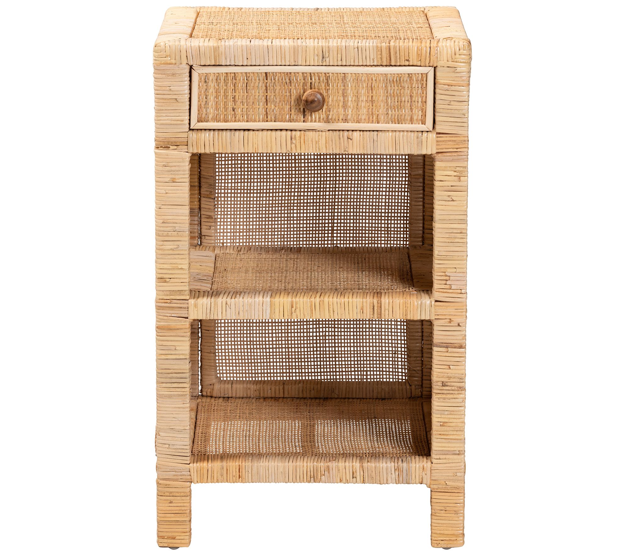 Baxton Studio Bella Brown Wood and Natural Rattan Nightstand