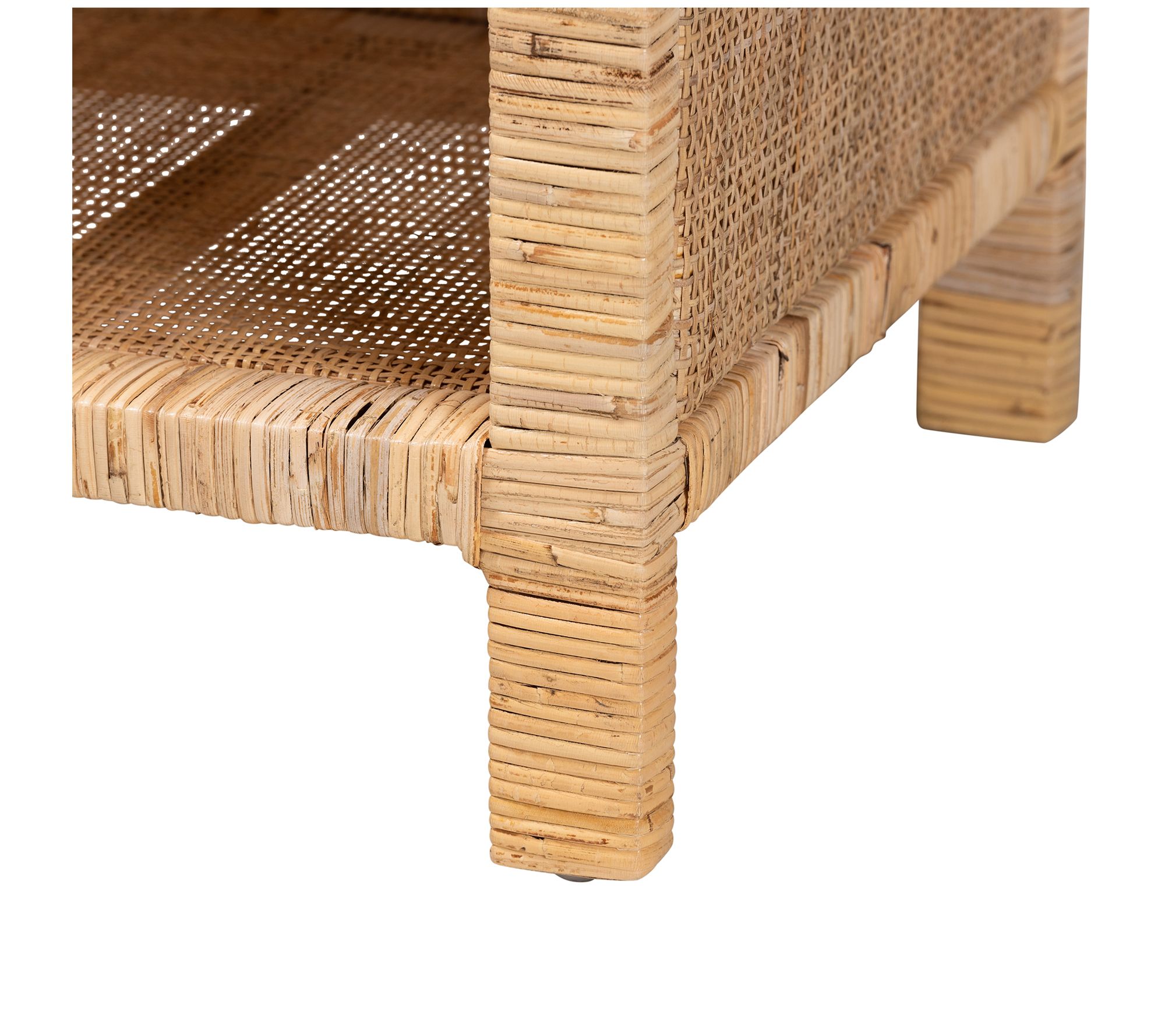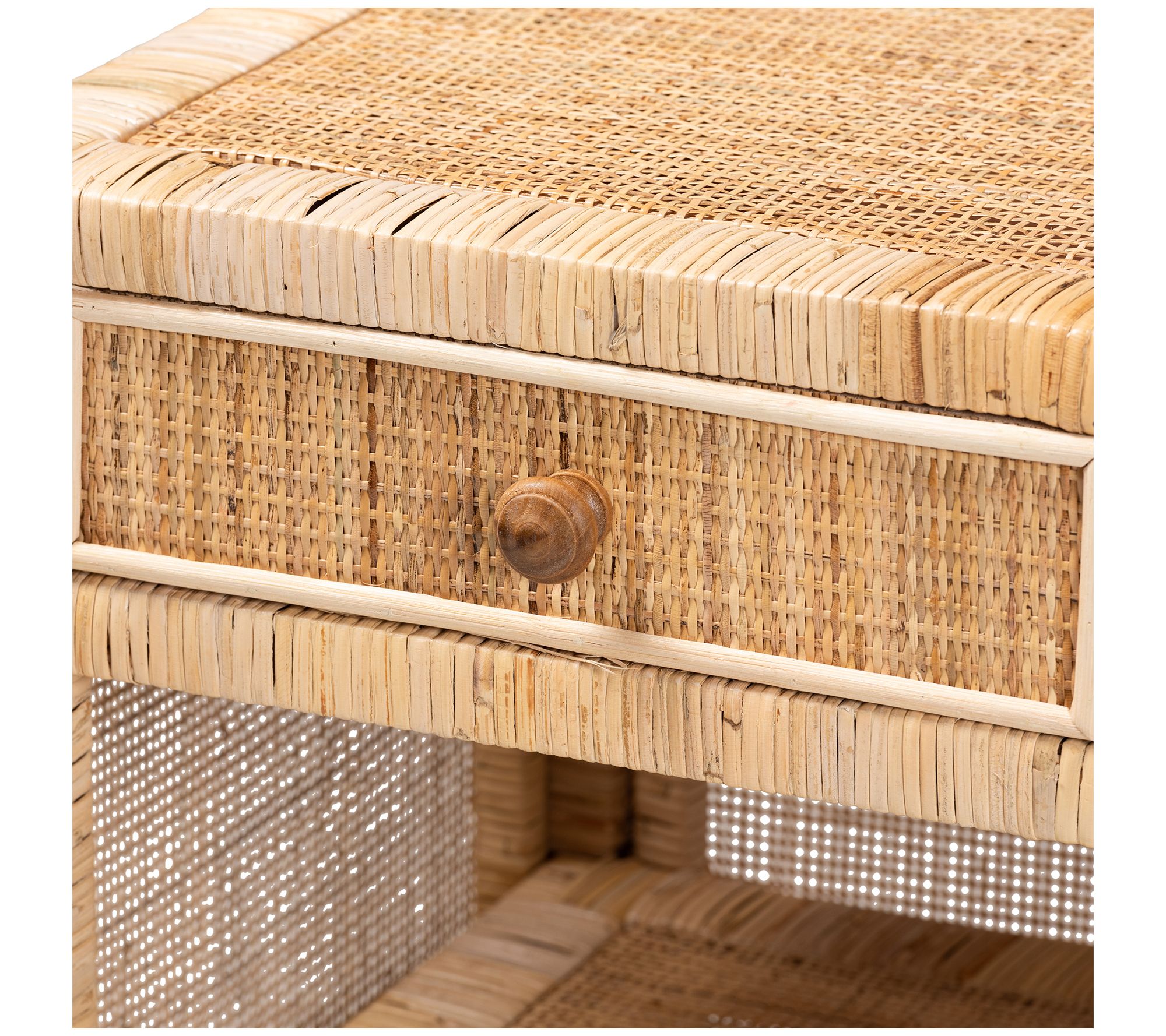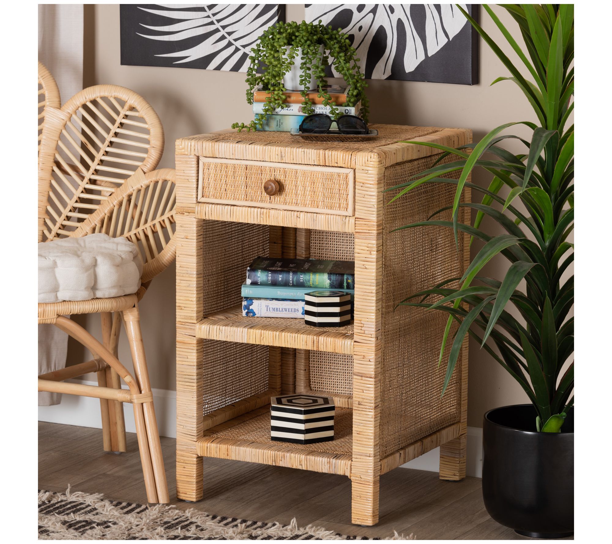 Baxton Studio Bella Brown Wood and Natural Rattan Nightstand