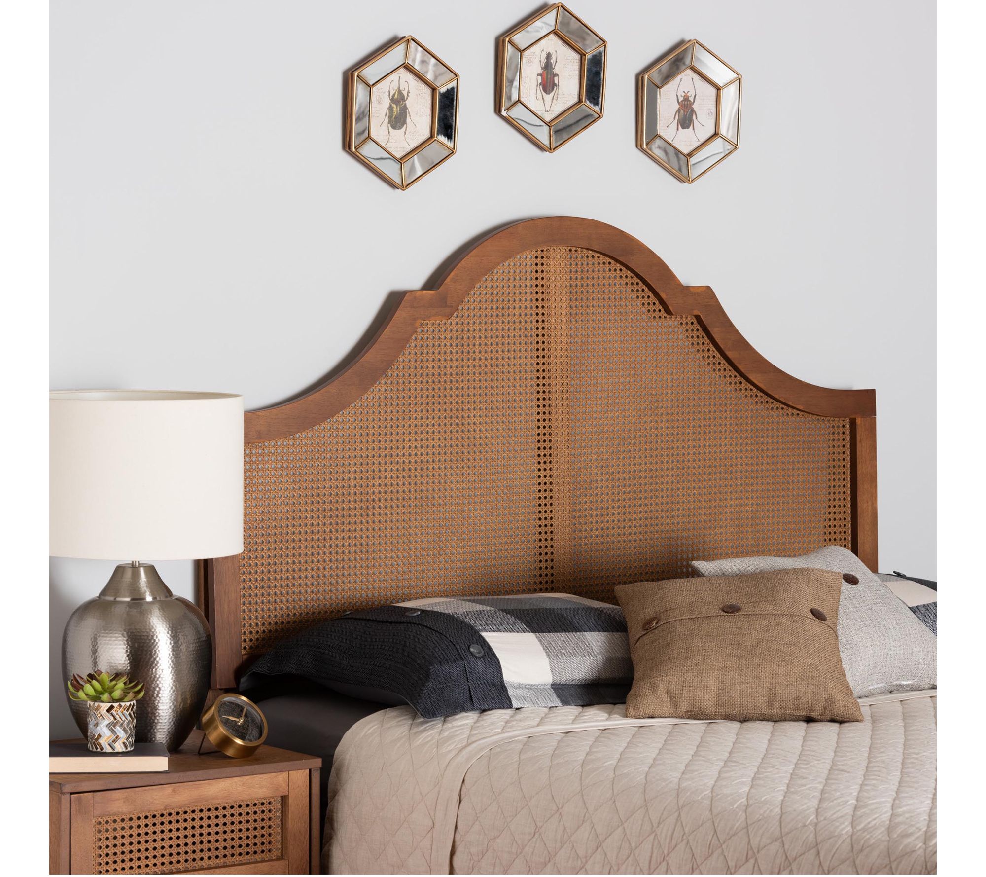 Baxton Studio Camila Ash Walnut Rattan Queen Wood Headboard