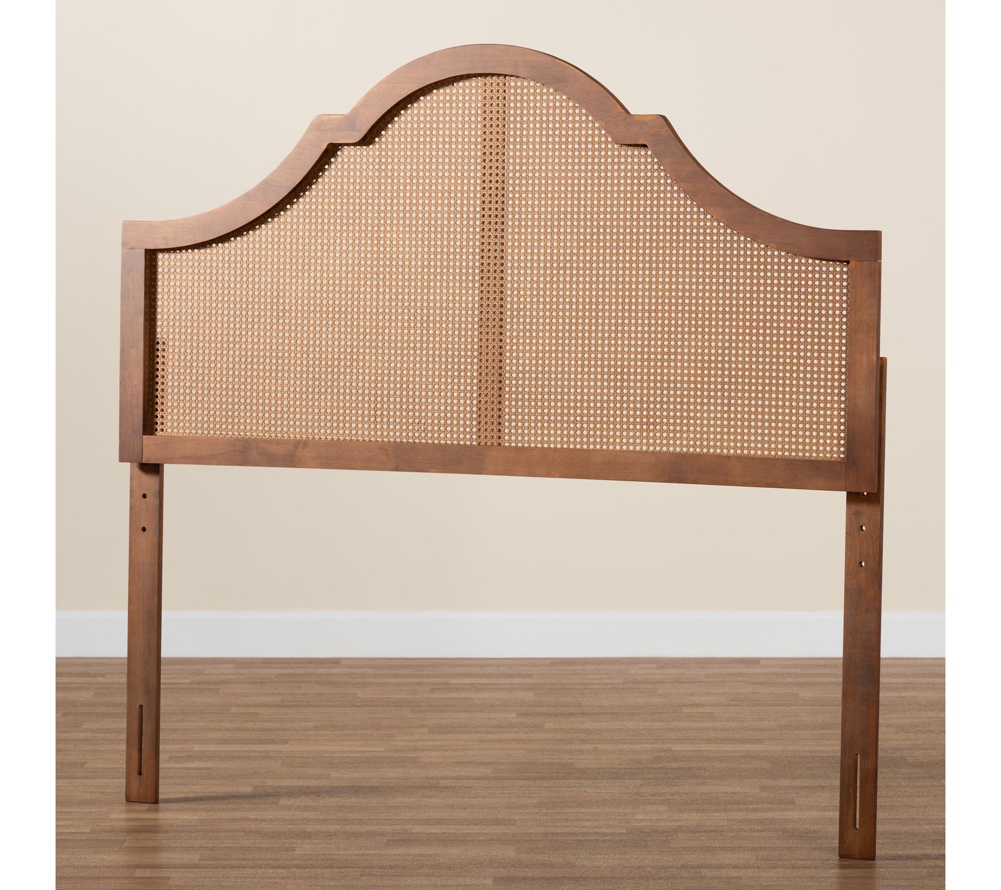 Favoring the charm of timeless design, the Camila headboard brings a gentle yet impressive nature to your space. This striking piece features a sturdy rubber wood frame beautifully complemented by intricately woven synthetic rattan. The arch silhouette creates a harmonious blend of smooth curves and crisp angles, resulting in a stunning bedroom centerpiece filled with rich, geometric flair. From Baxton Studio.