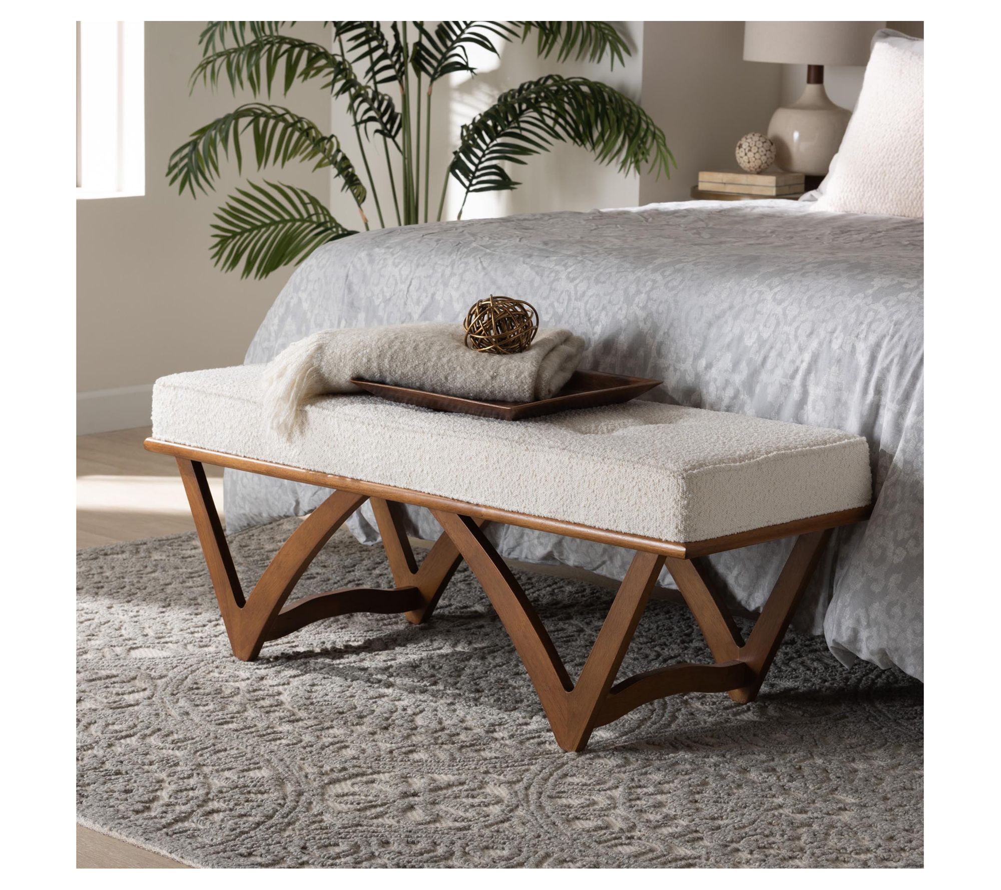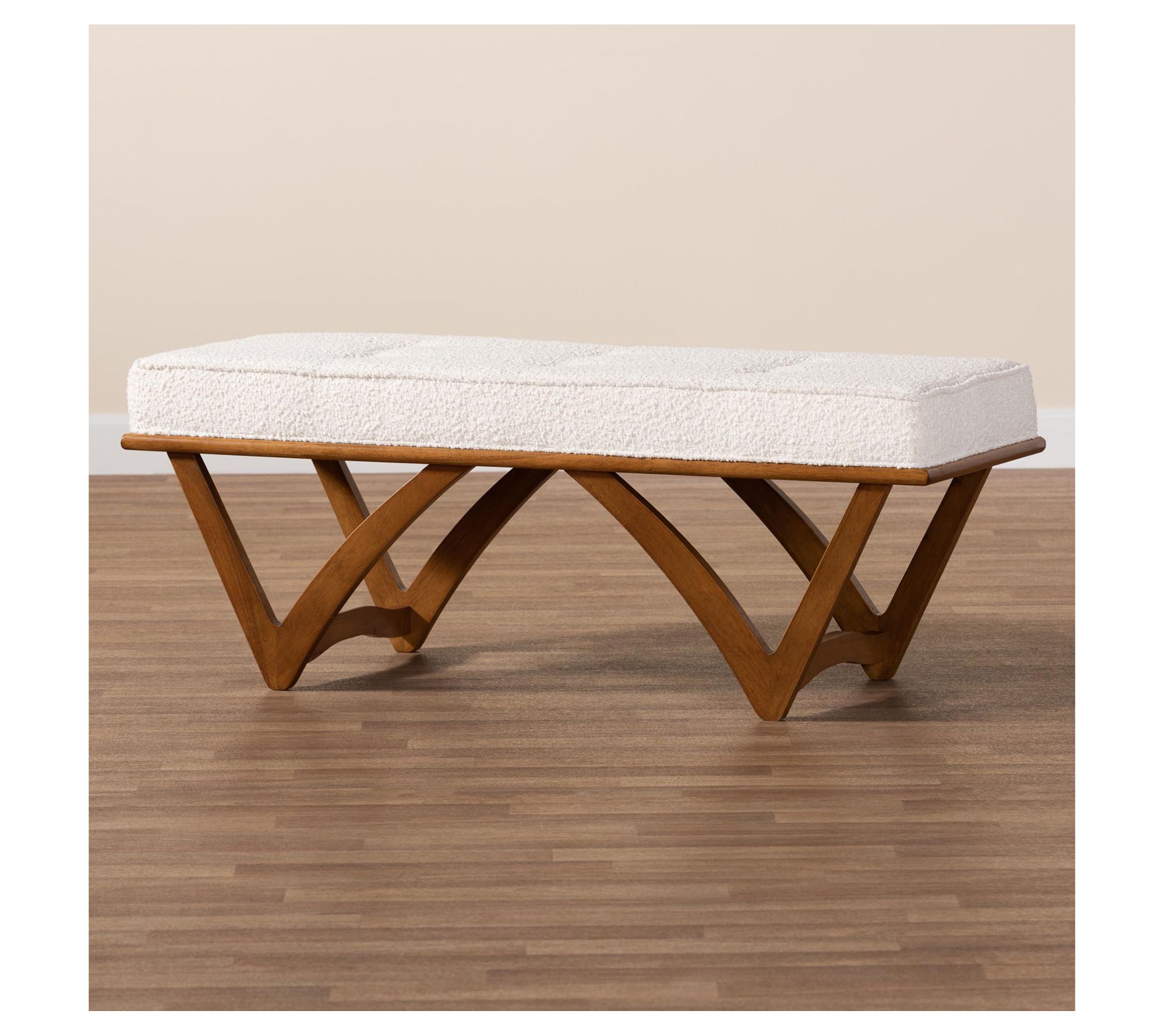 Baxton Studio Chenoa Boucle Fabric and Wood Bench
