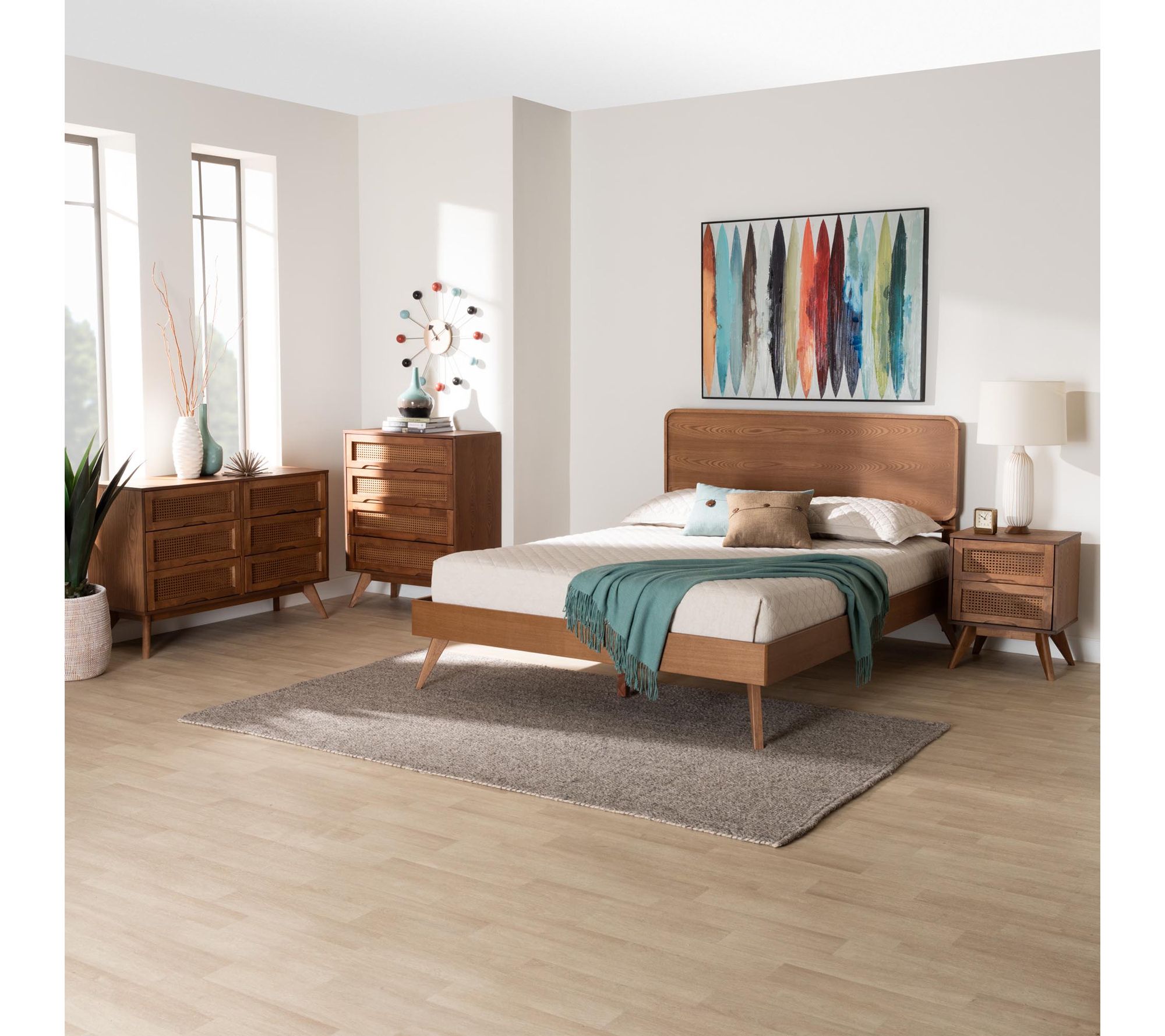 Create a retreat that blends mid-century design and modern versatility with this striking full-size bed and bedroom set. The woven rattan headboard, paired with coordinated storage pieces, invites serenity and organization to your bedroom. Thoughtful details and a medium wood finish help you enjoy both style and function every day. From Baxton Studio.